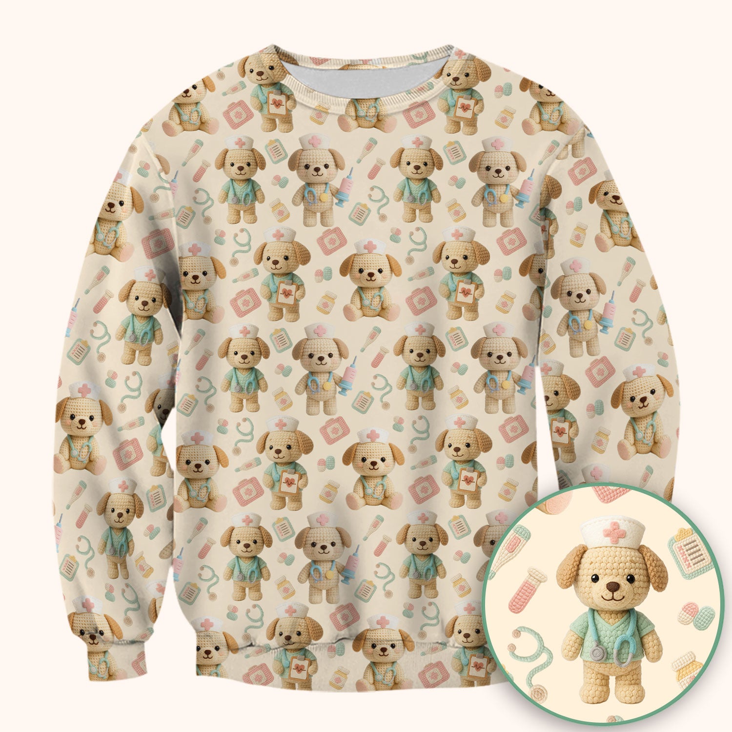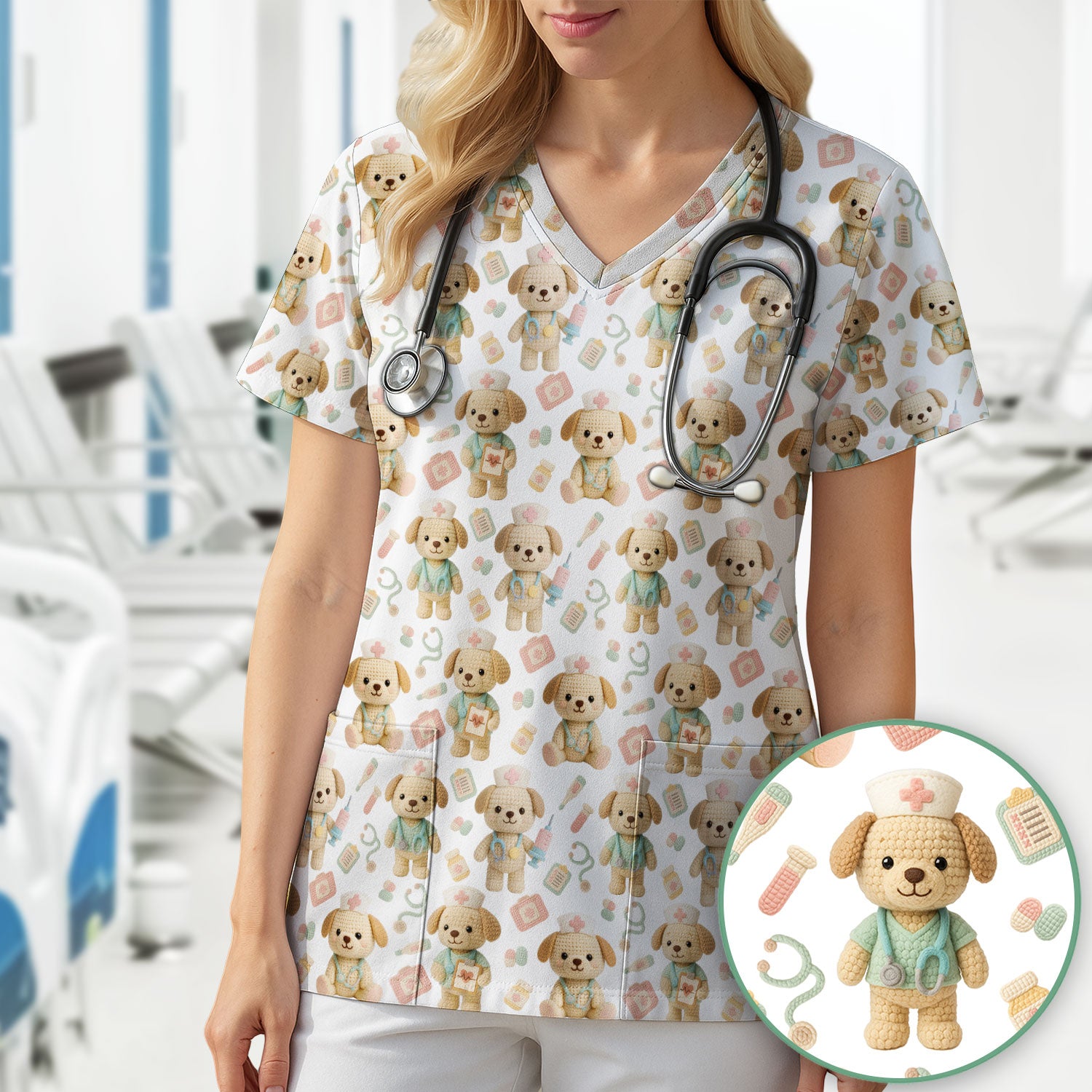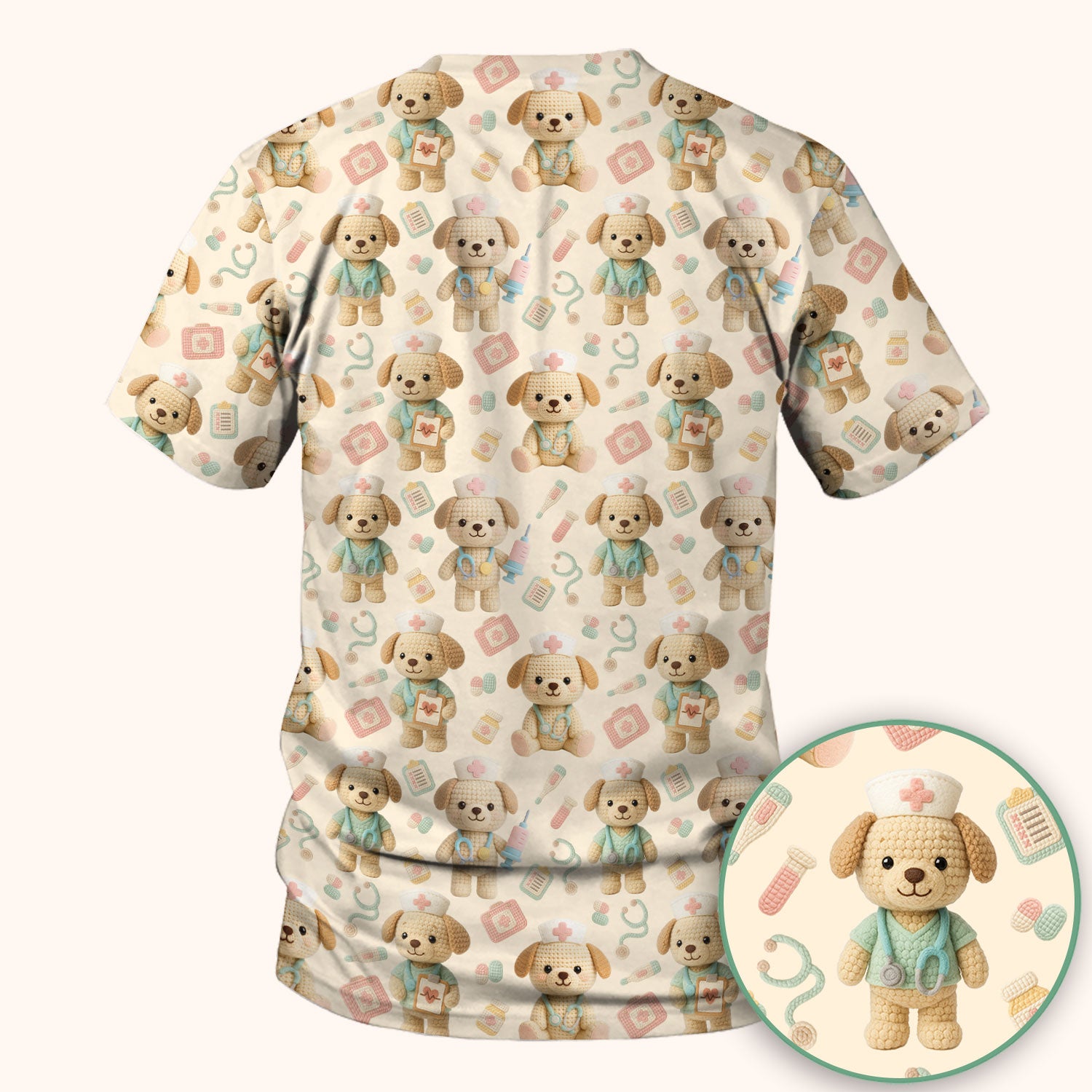 Cute Labrador Scrub Top for Nurse - Pastel Crochet Dog Medical Scrubs - Adorable Puppy Med Uniform Gift for Women