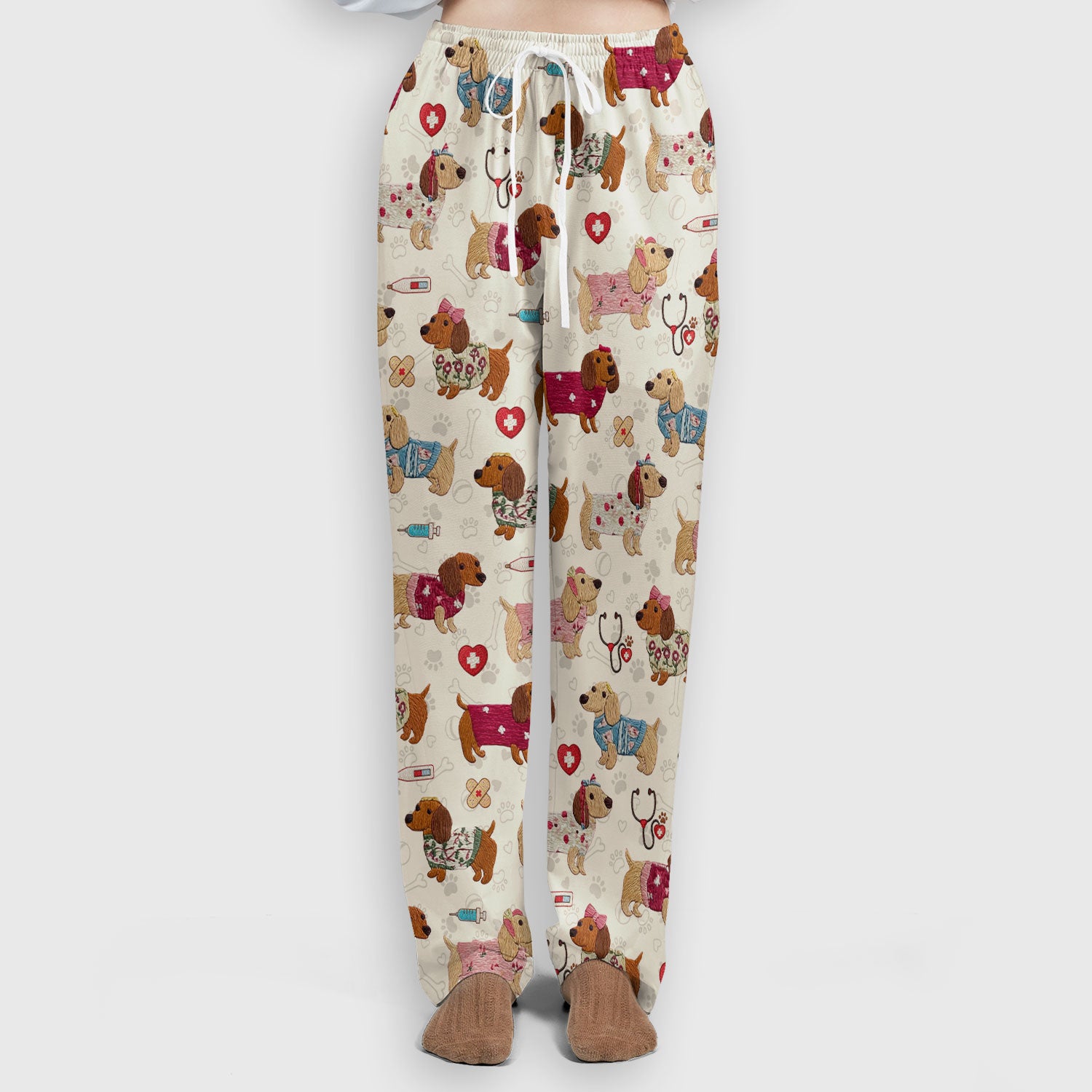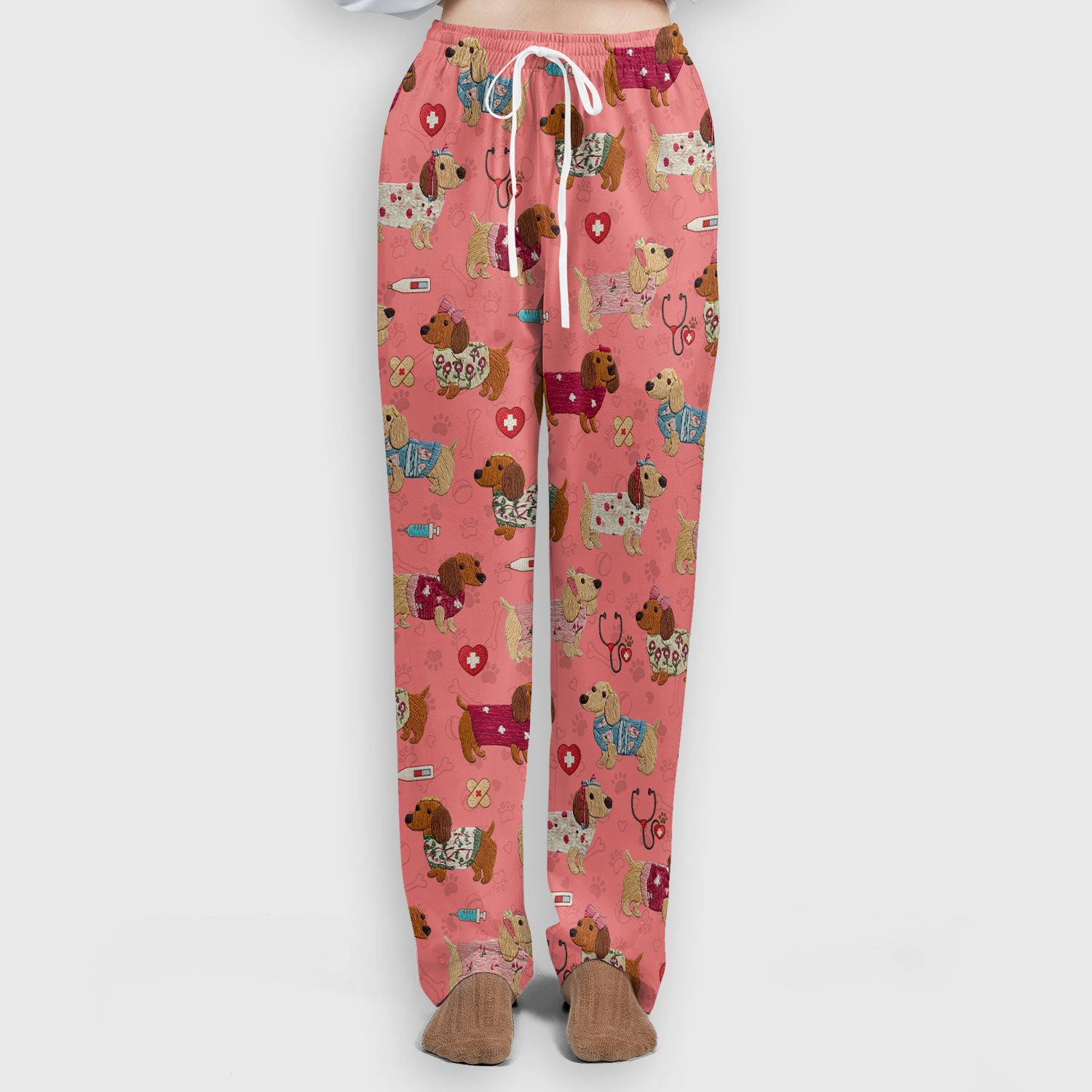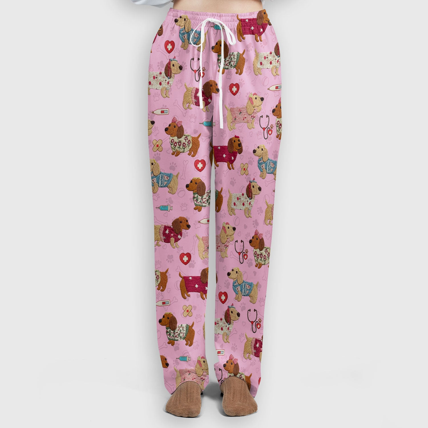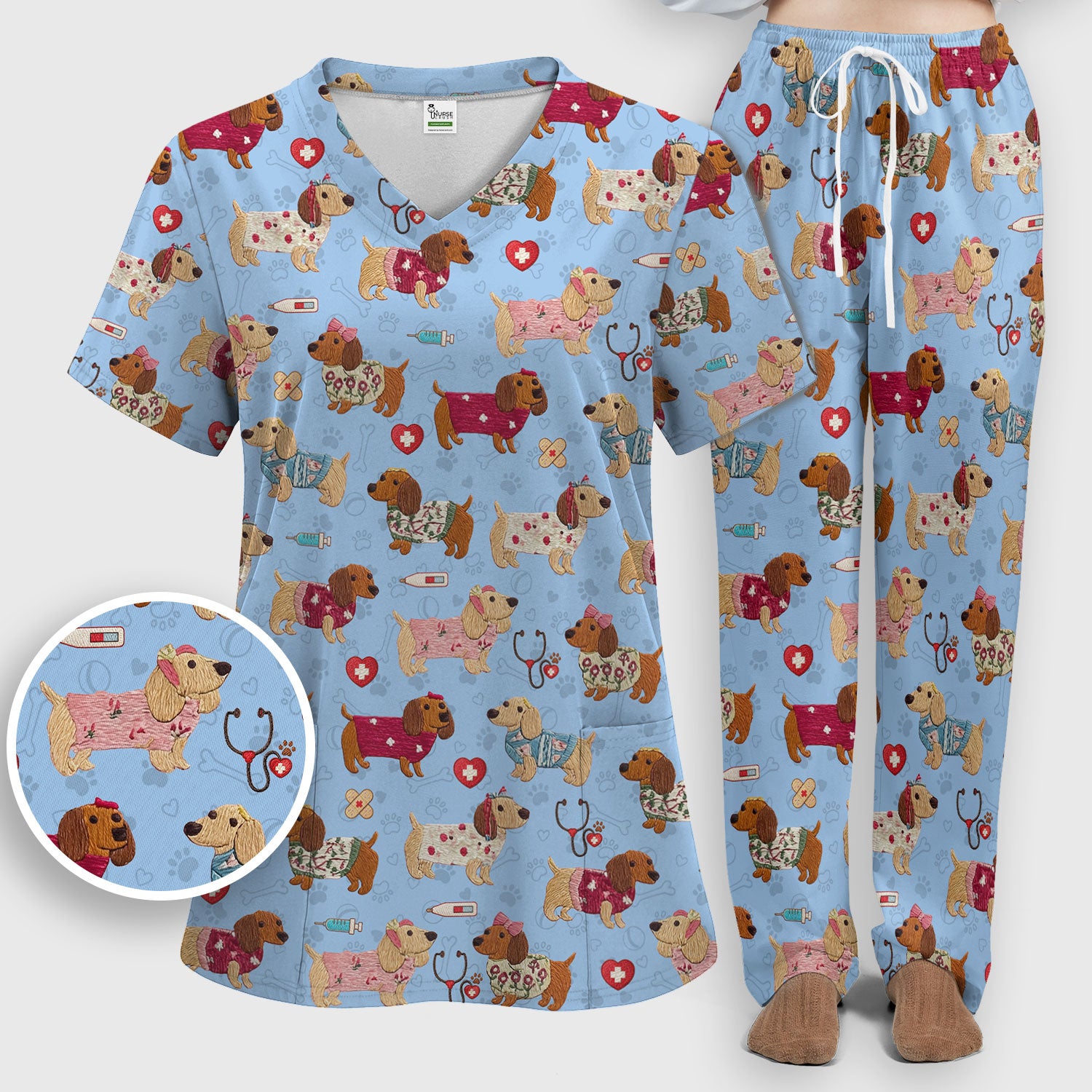 Cute Medical Wiener Dog Pattern Nurse Shirt, Dachshund Nursing Scrub Set, Breathable Fabrics Nursing Uniform