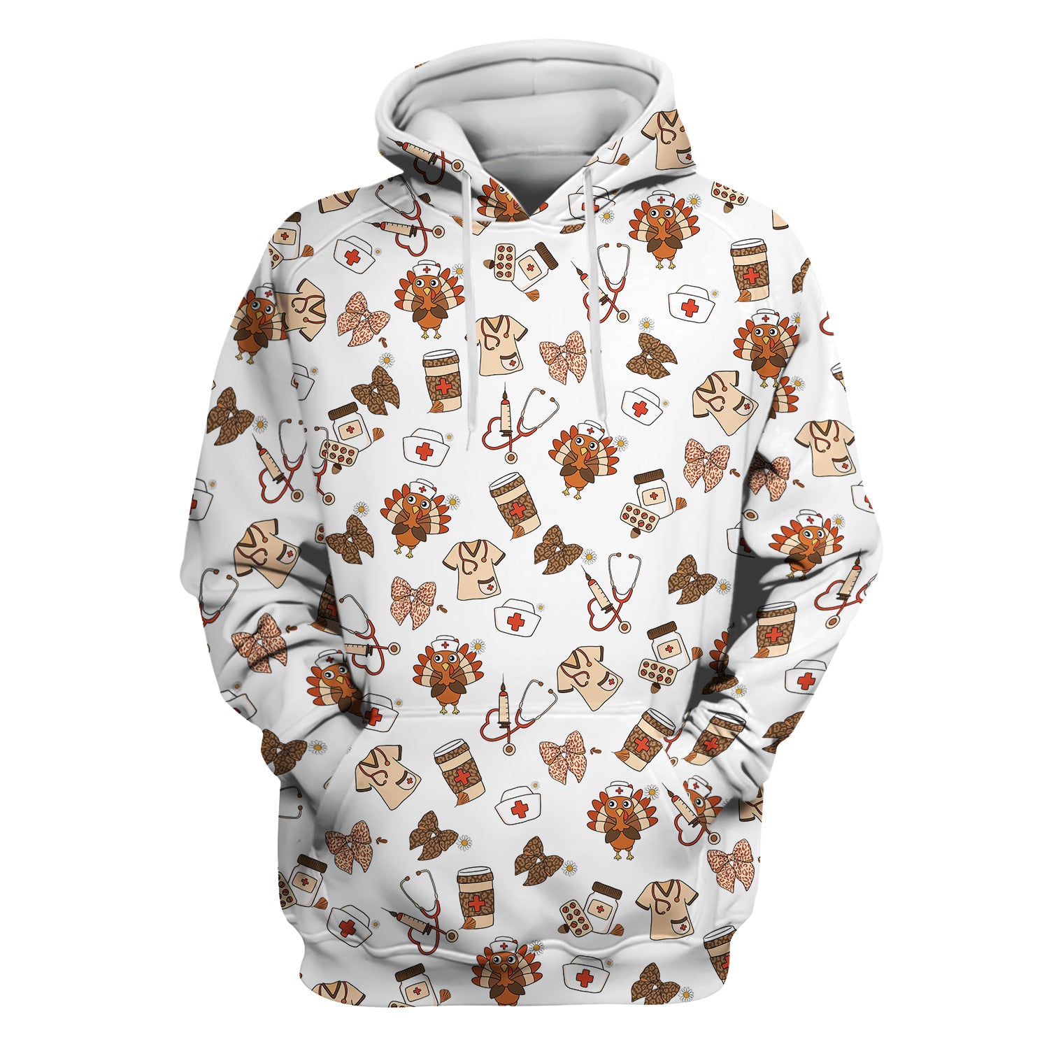 Cute Nurse Fall Season Scrub Top - Thanksgiving Turkey & Stethoscope Medical Design - Gift for RN LPN CNA