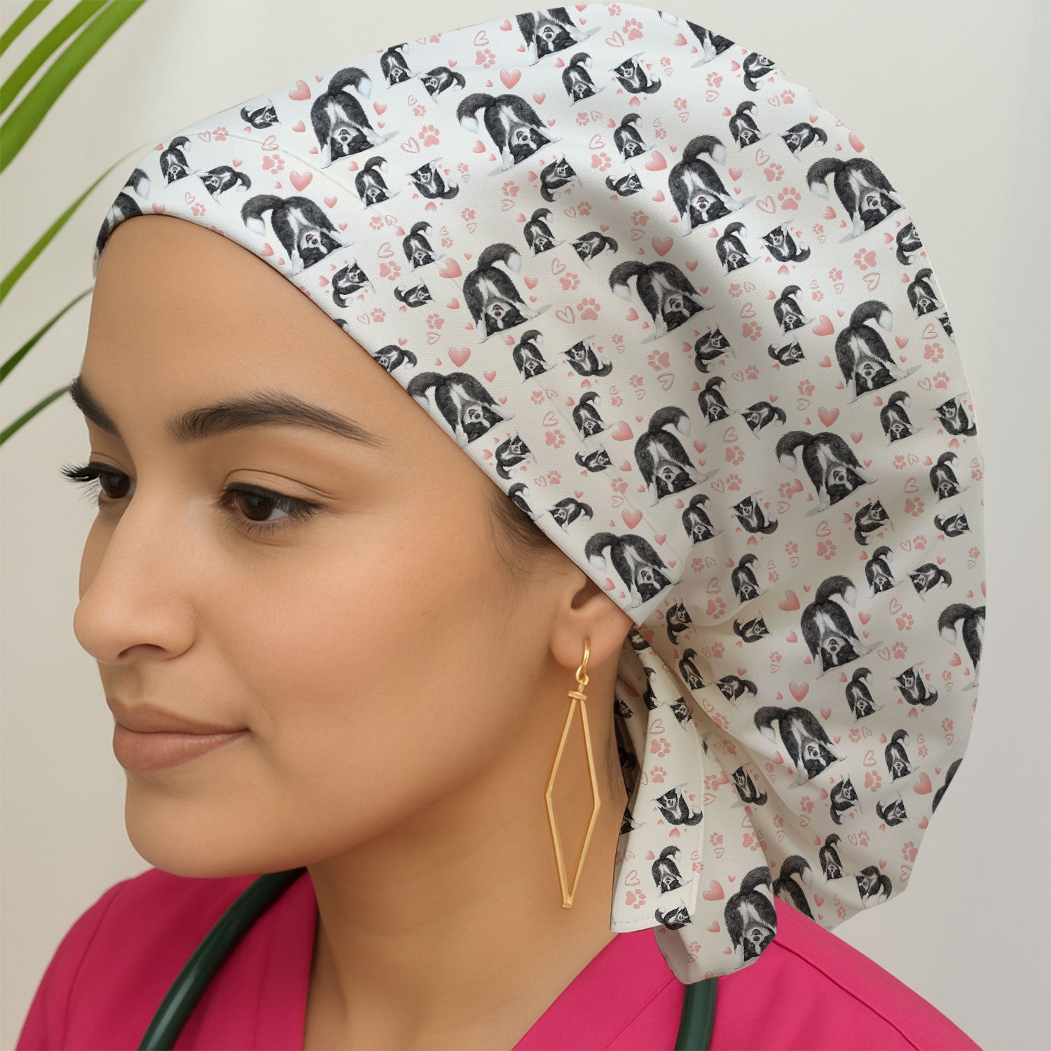 Cute Puppy Heart Medical Pattern Cap, Bouffant Scrub Caps for Women