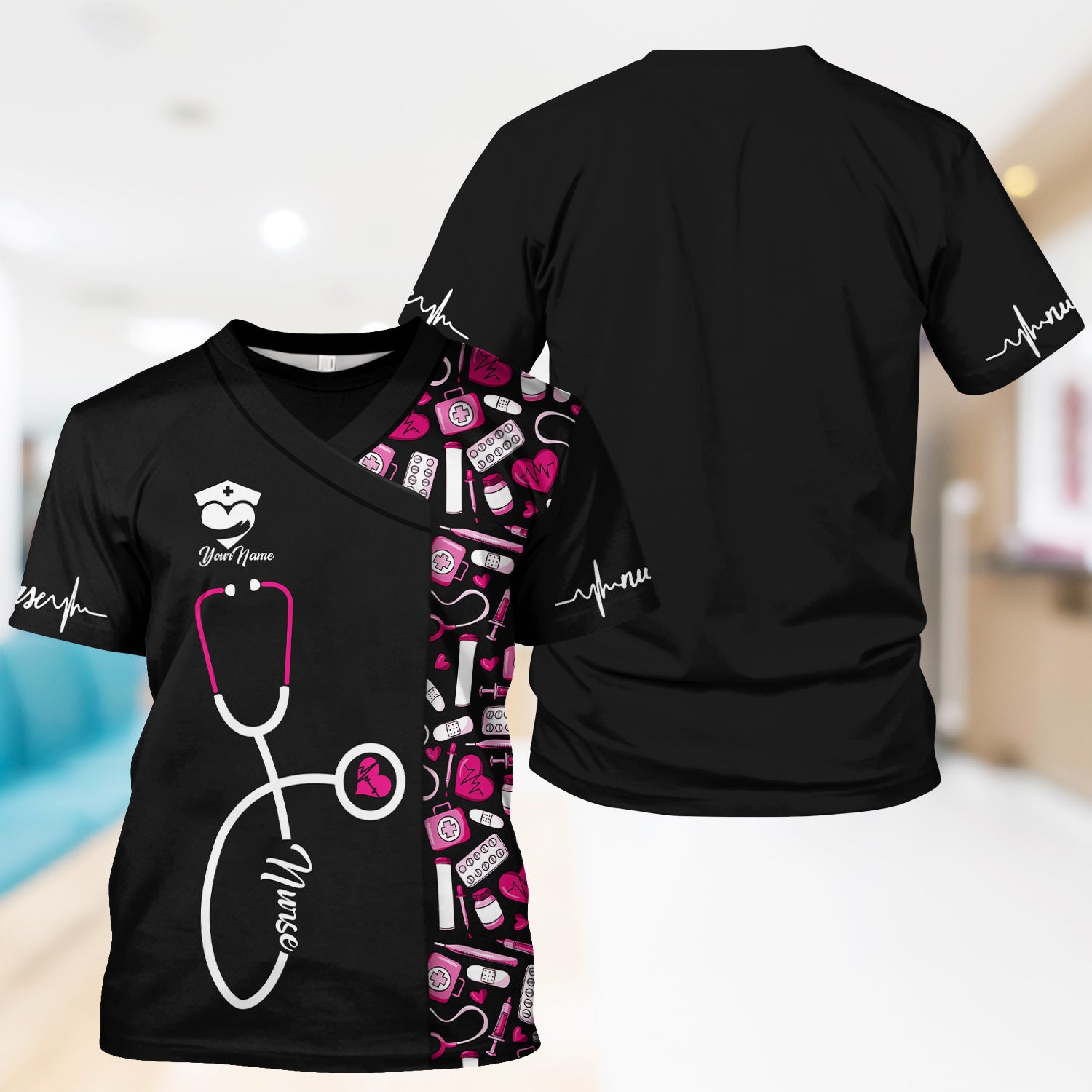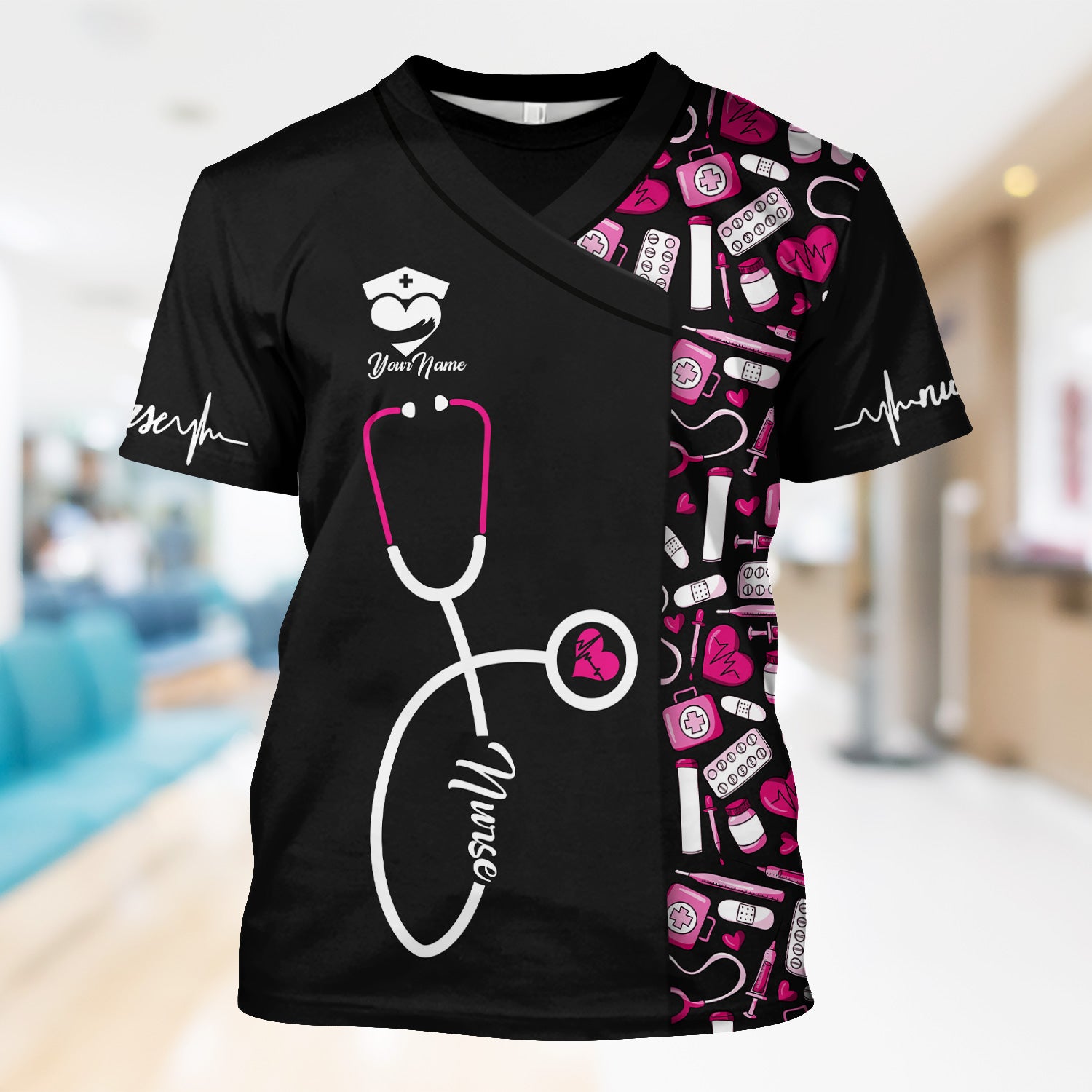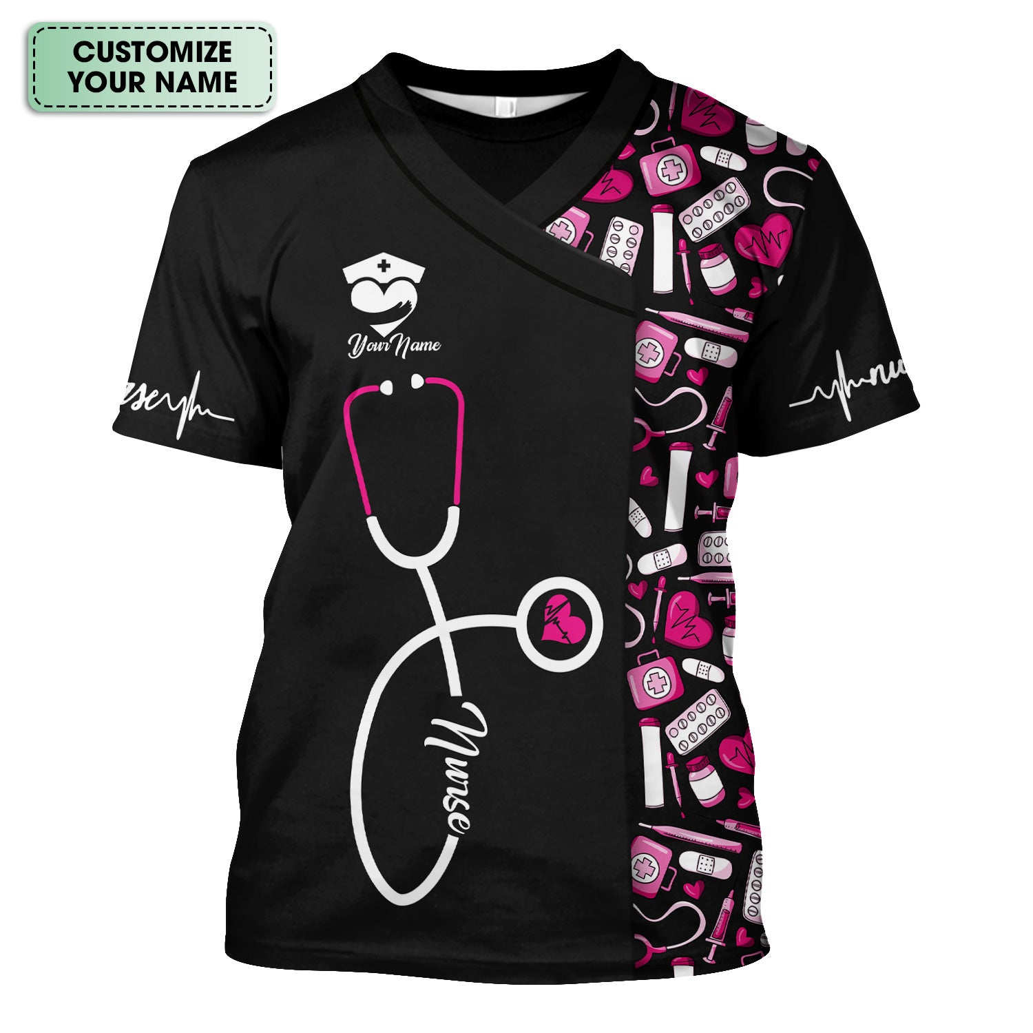 Cute Stethoscope Heart Nurse Scrub - Personalized Nursing Pink Medical Design - Gift for RN LPN CNA Healthcare Workers