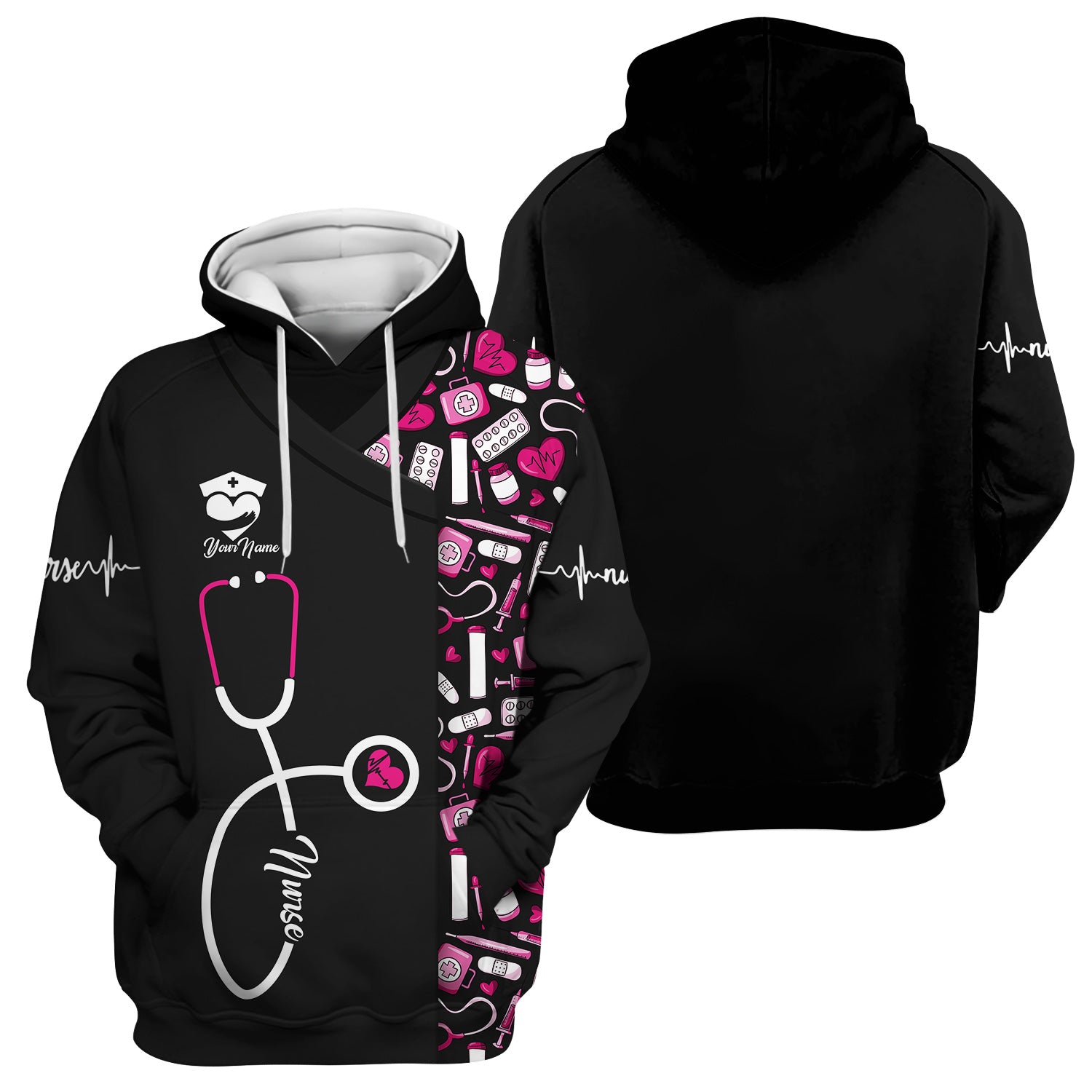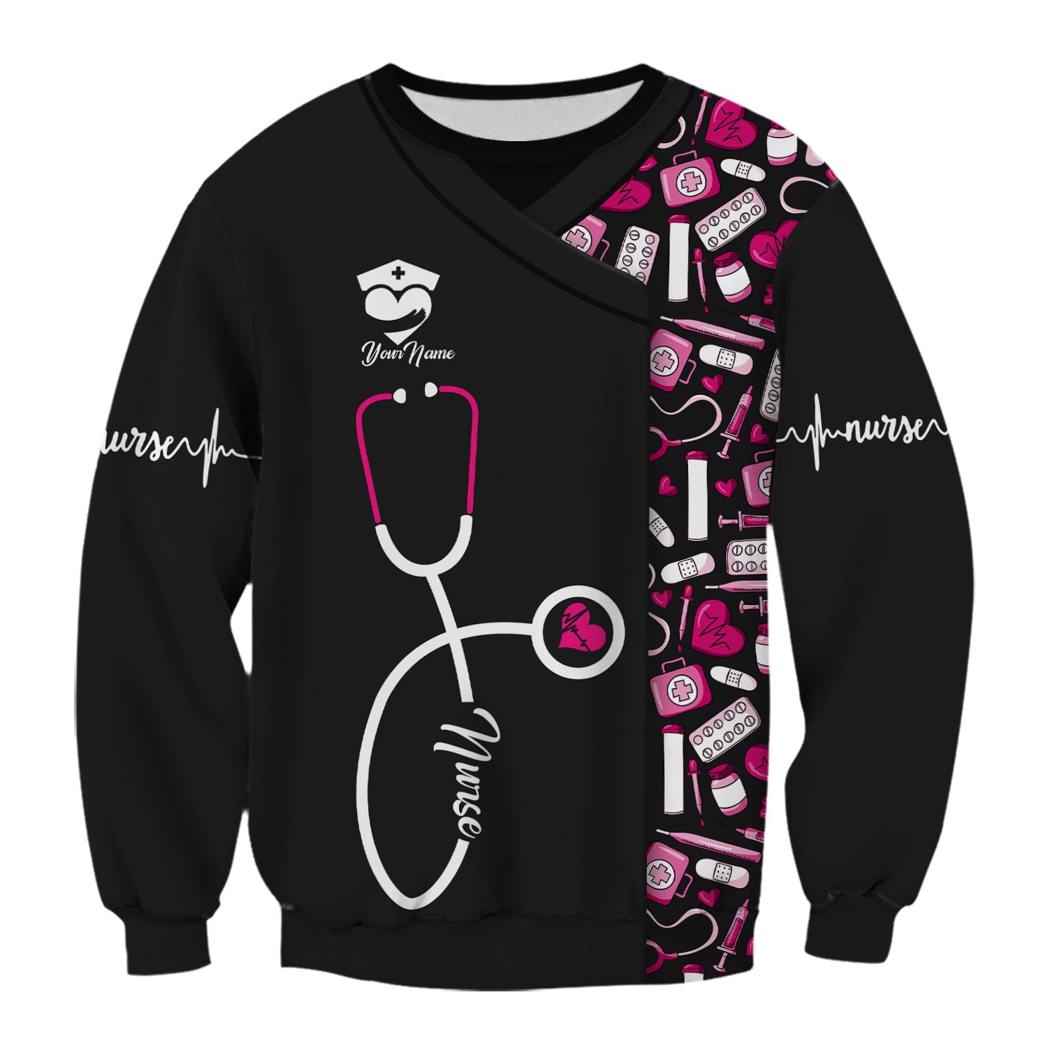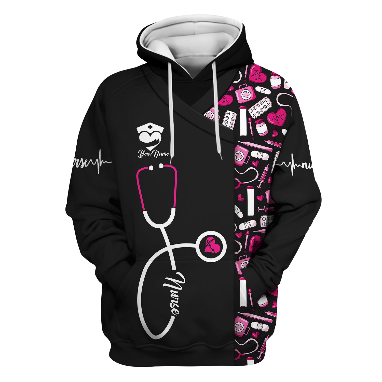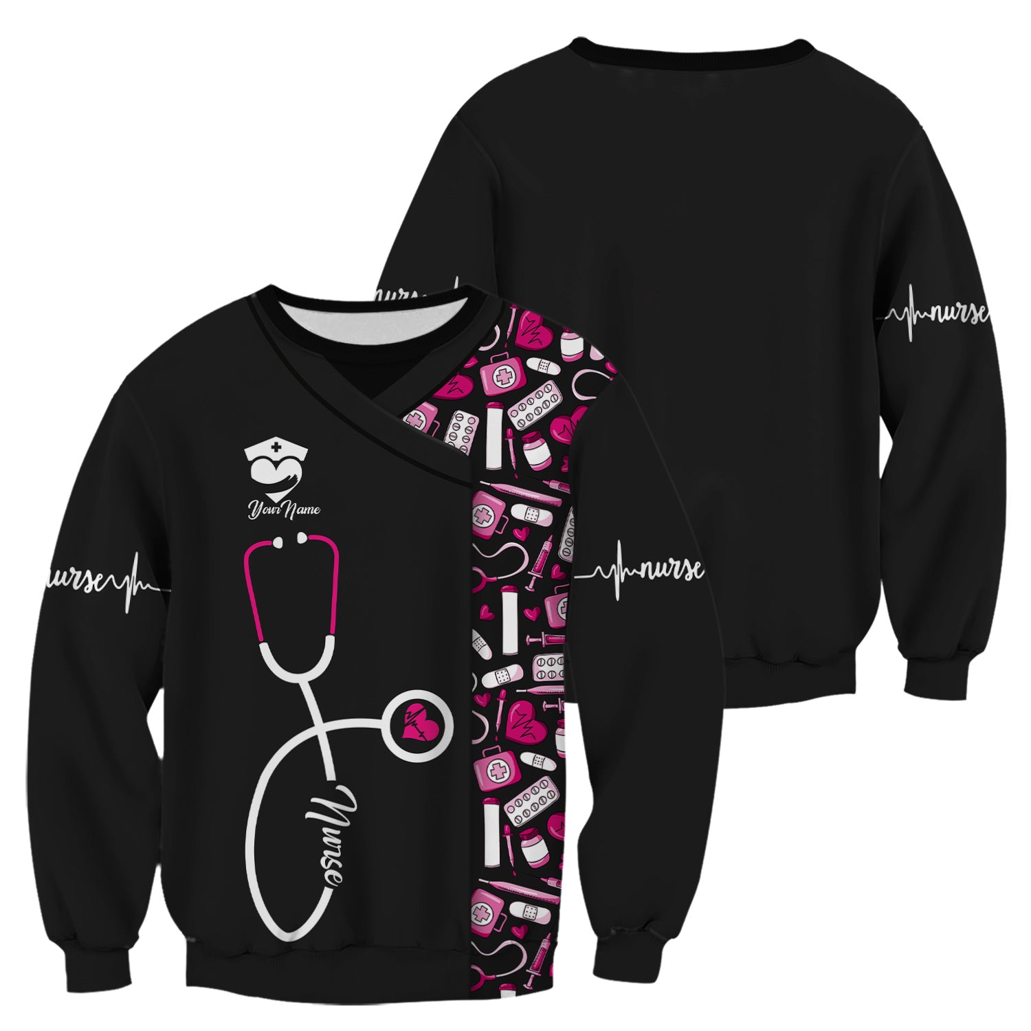 Cute Stethoscope Heart Nurse Scrub - Personalized Nursing Pink Medical Design - Gift for RN LPN CNA Healthcare Workers