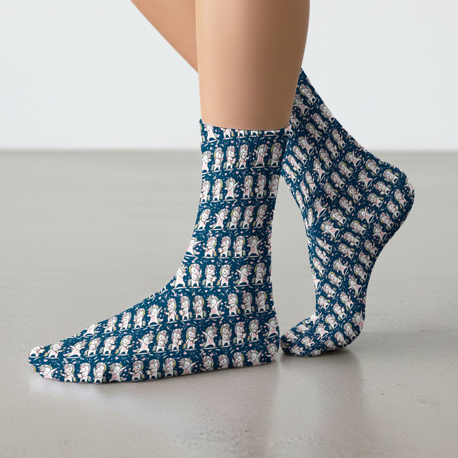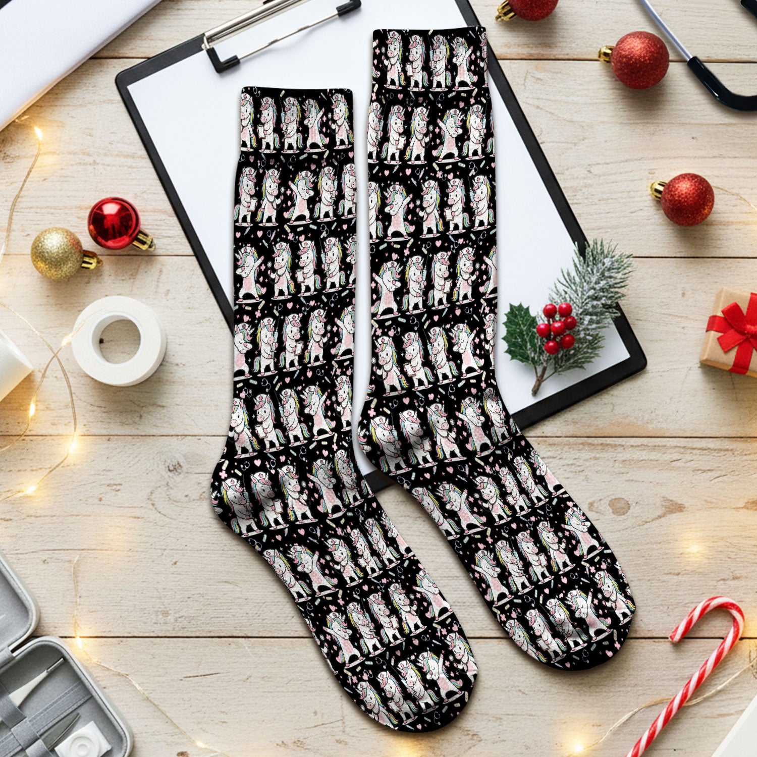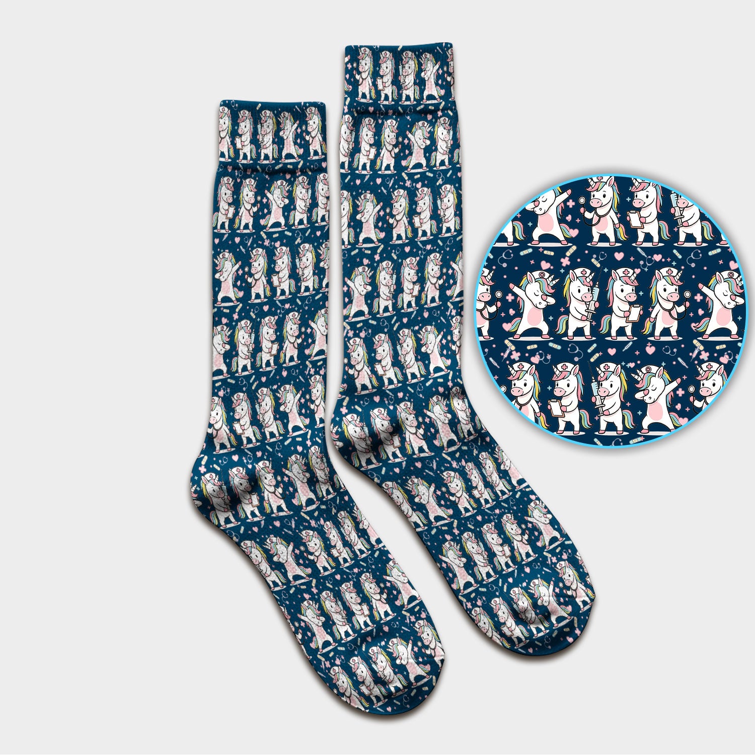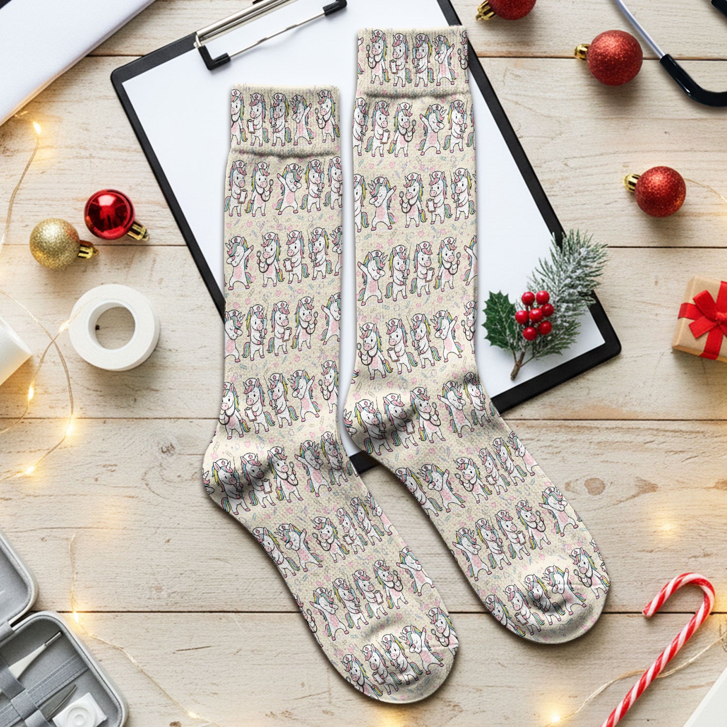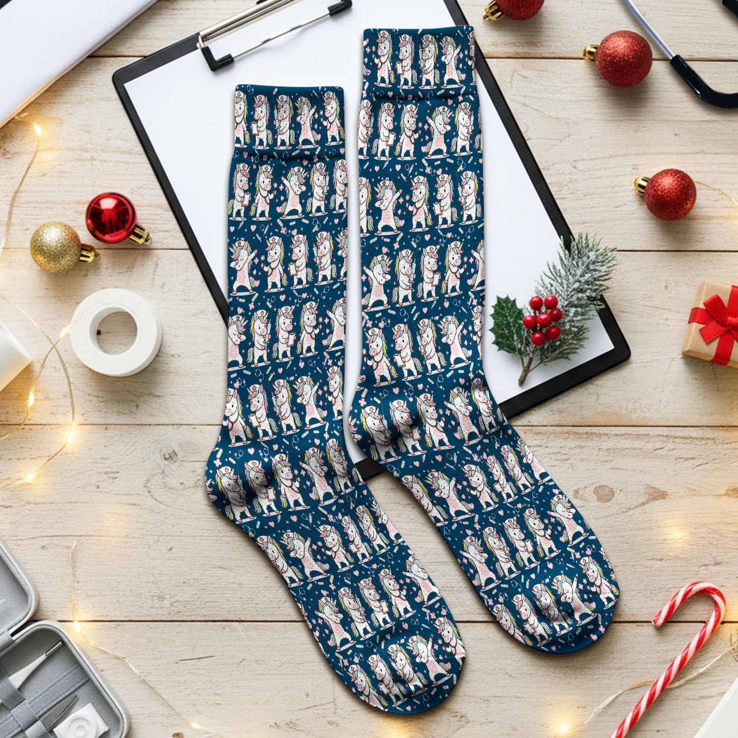 Cute Unicorn Nurse Scrub Socks, Playful Medical Cartoon Nursing Sock, Breathable Fabrics Nurse Uniform