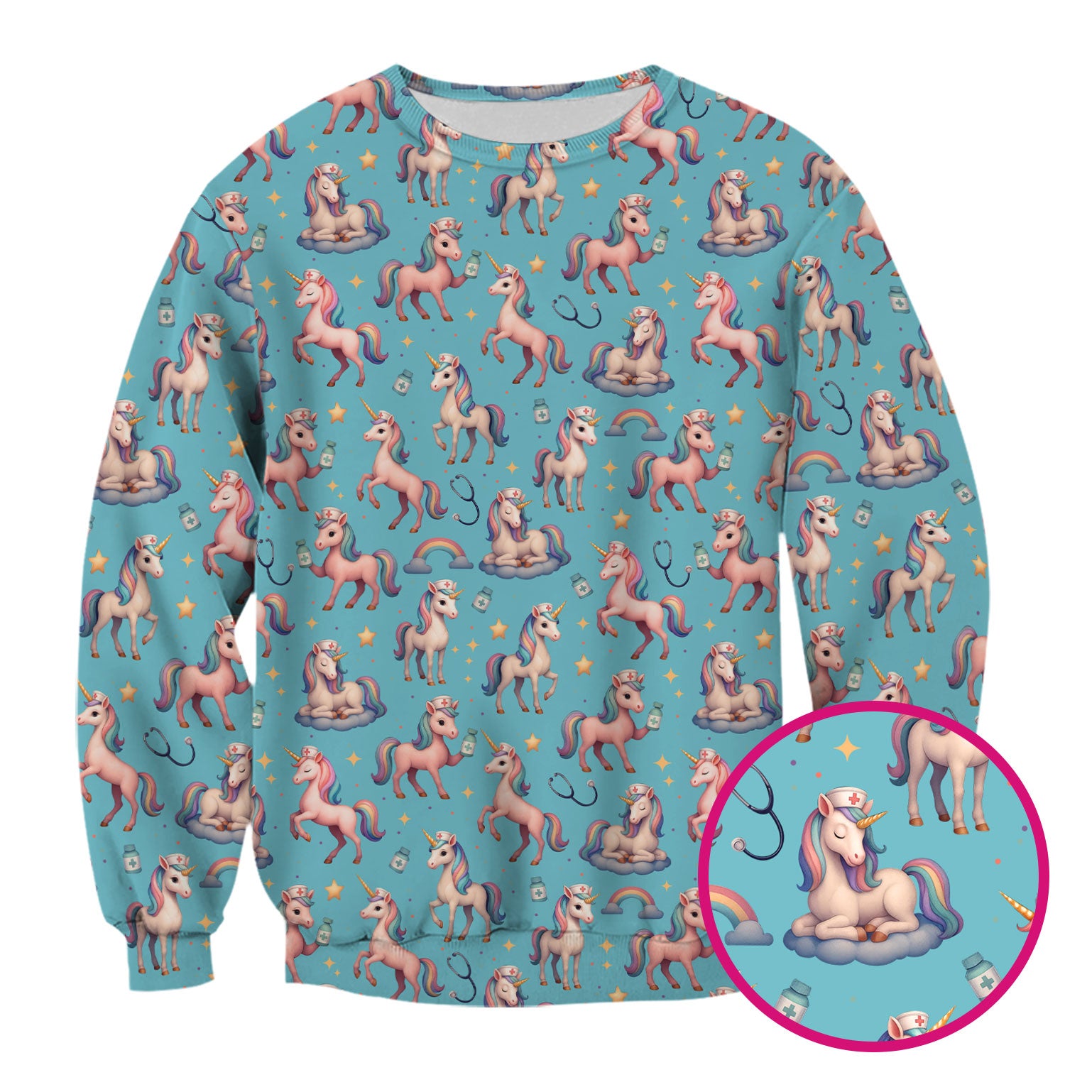 Cute Unicorn Nurse Scrub Top for Women - Rainbow Pastel Pattern Medical Shirt - Fun Fantasy Gift for RN LPN CNA Pediatric Nurses