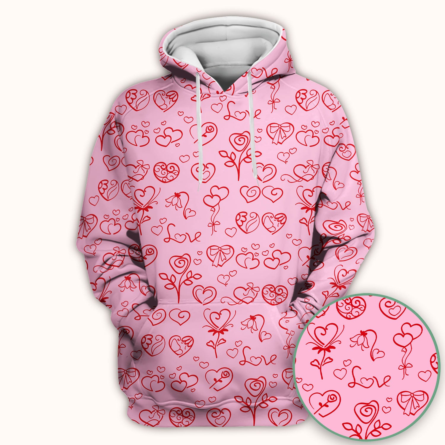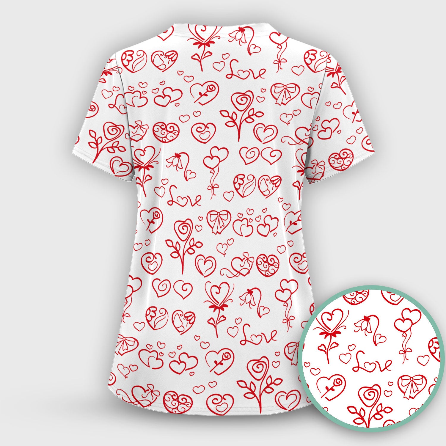 Cute Valentine Heart Scrub Top, Artistic Heart Pink Love Line Art Pattern Nurse Shirt, Comfortable Scrubs For Nursing