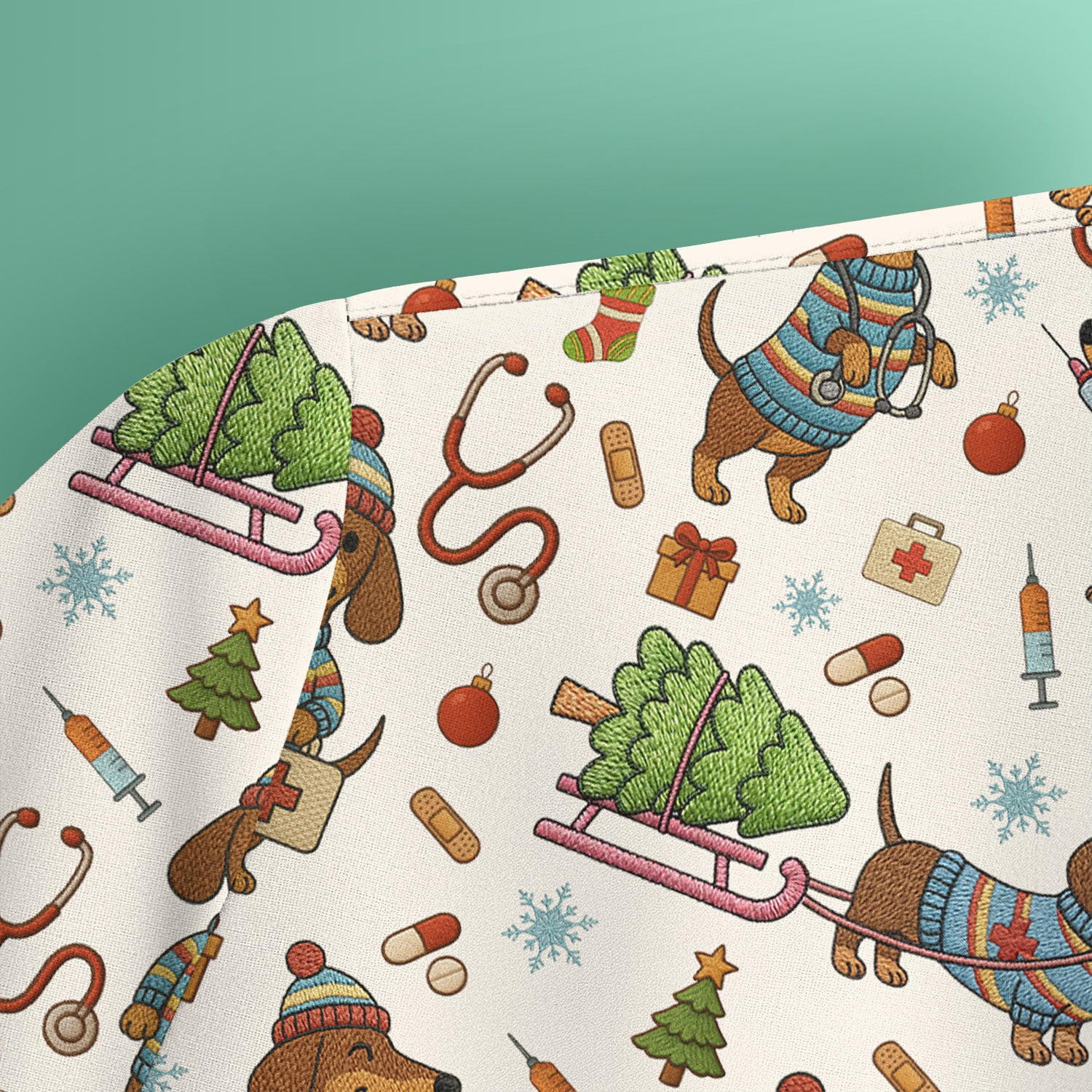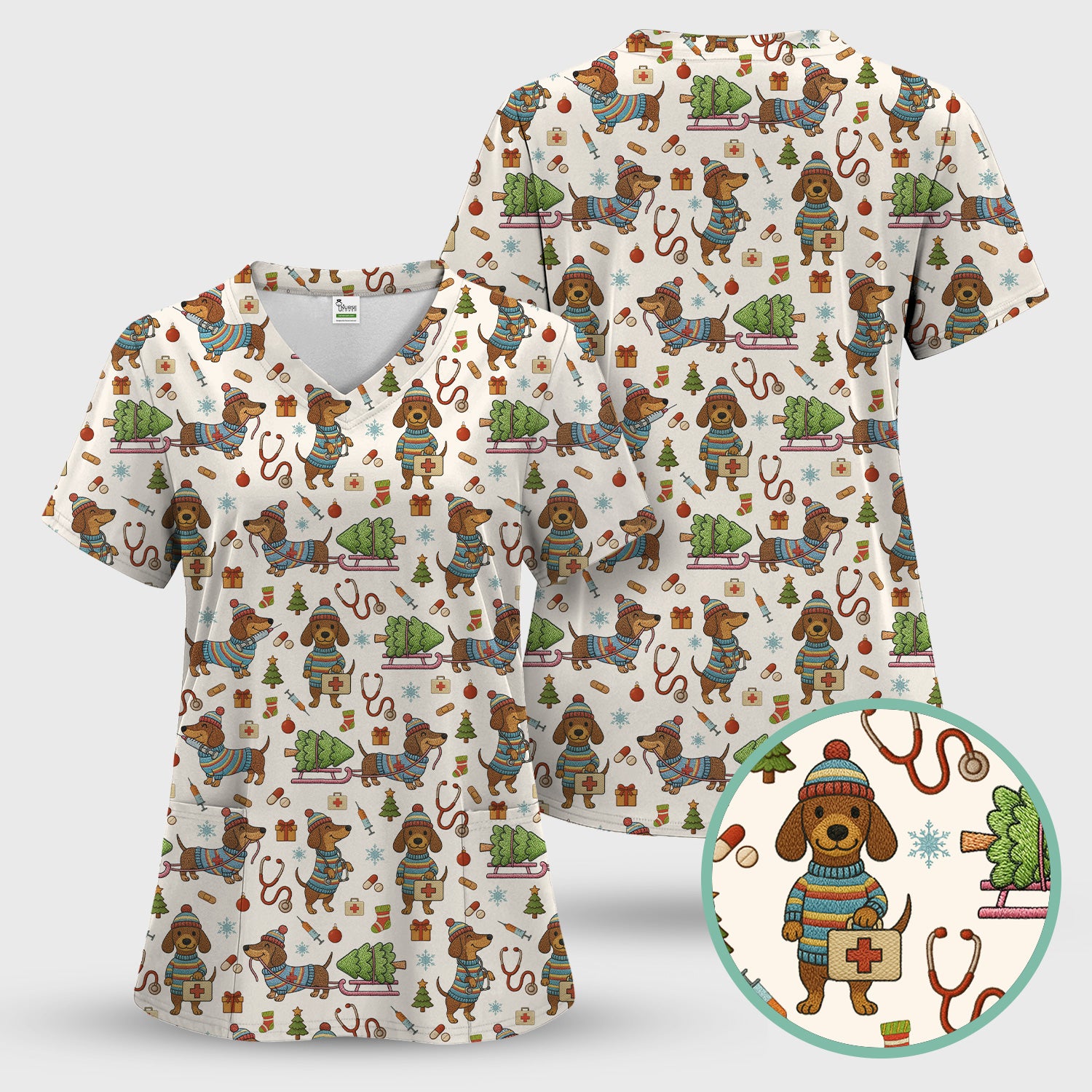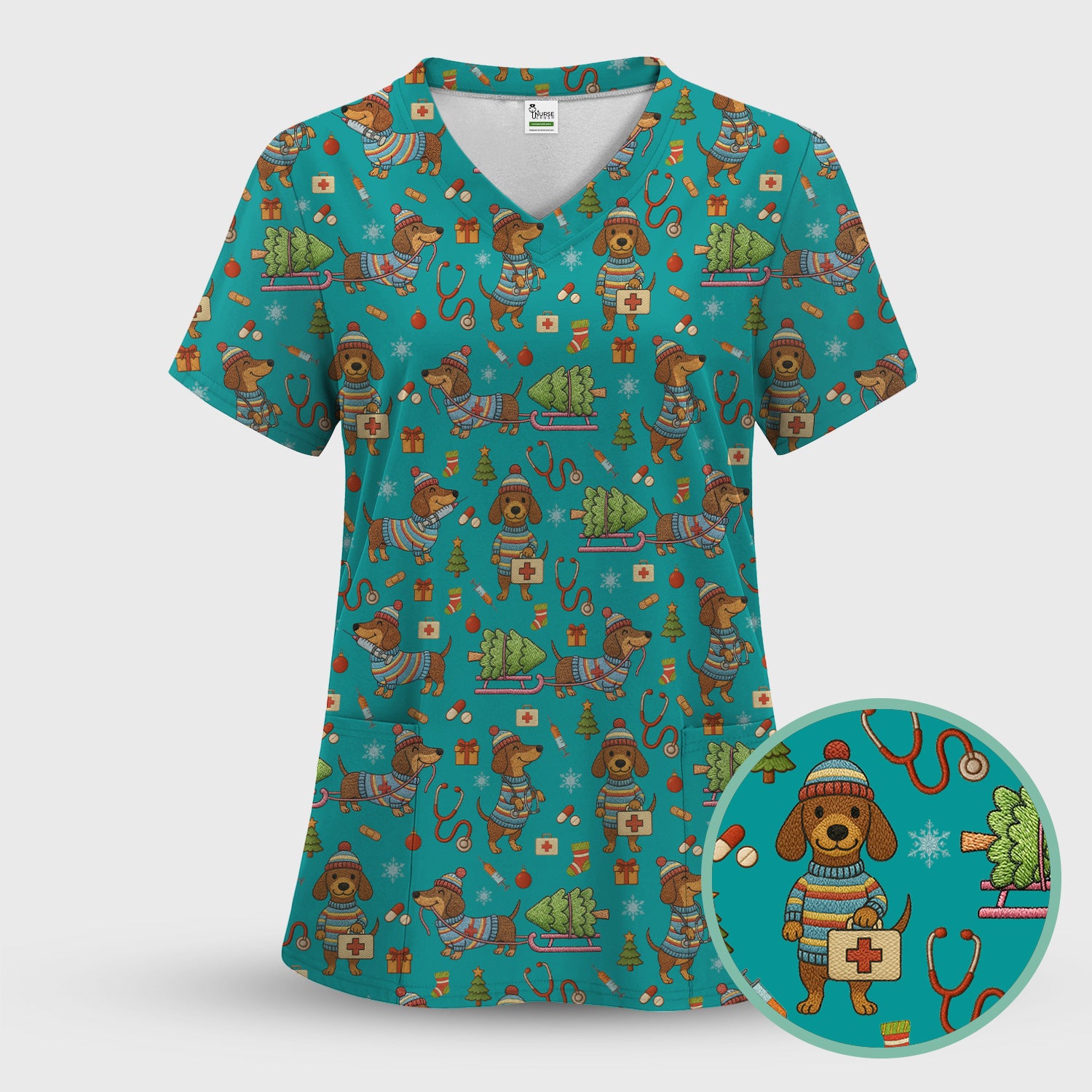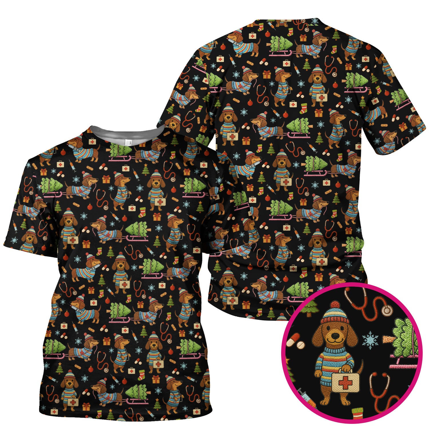 Dachshund Dog Scrub For Nurse, Funny Wiener Dog Lover Gift, Cute Dog 3D Knit Pattern Shirt
