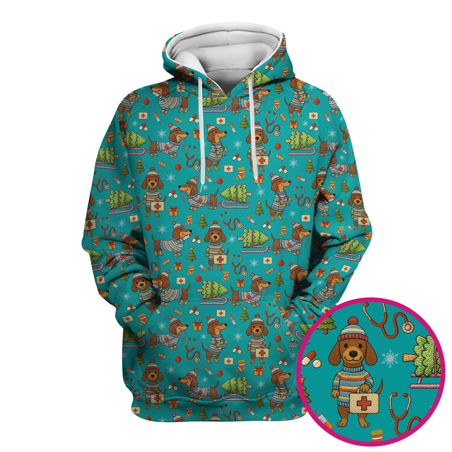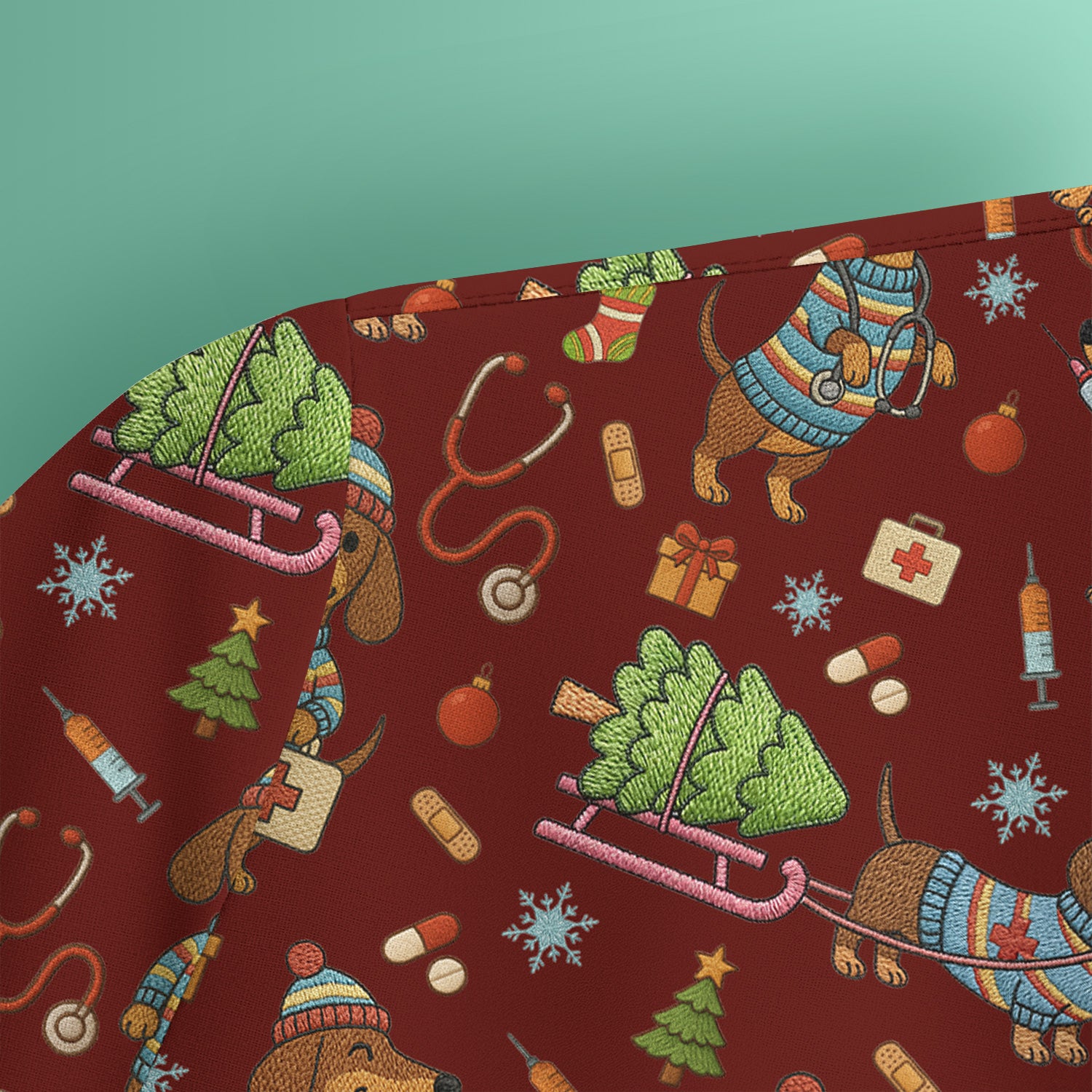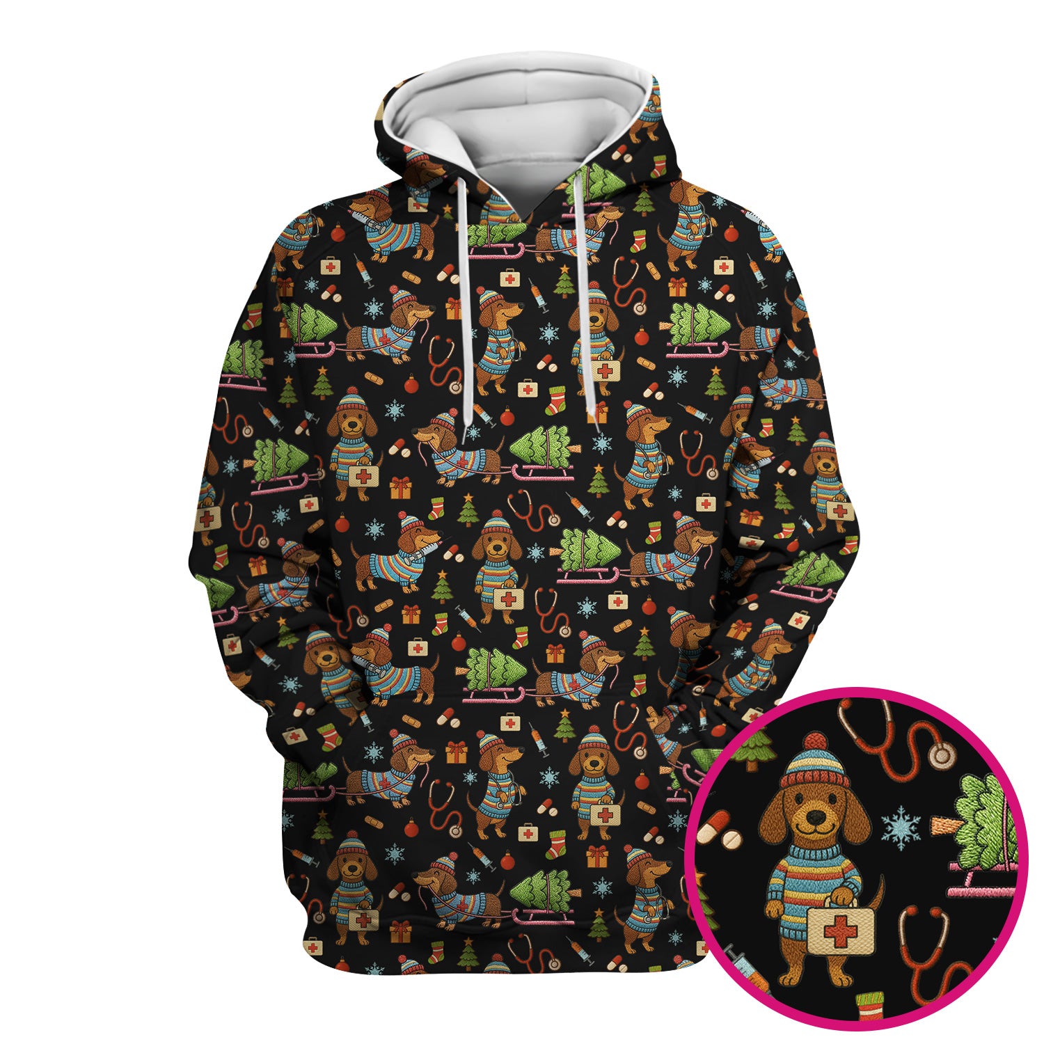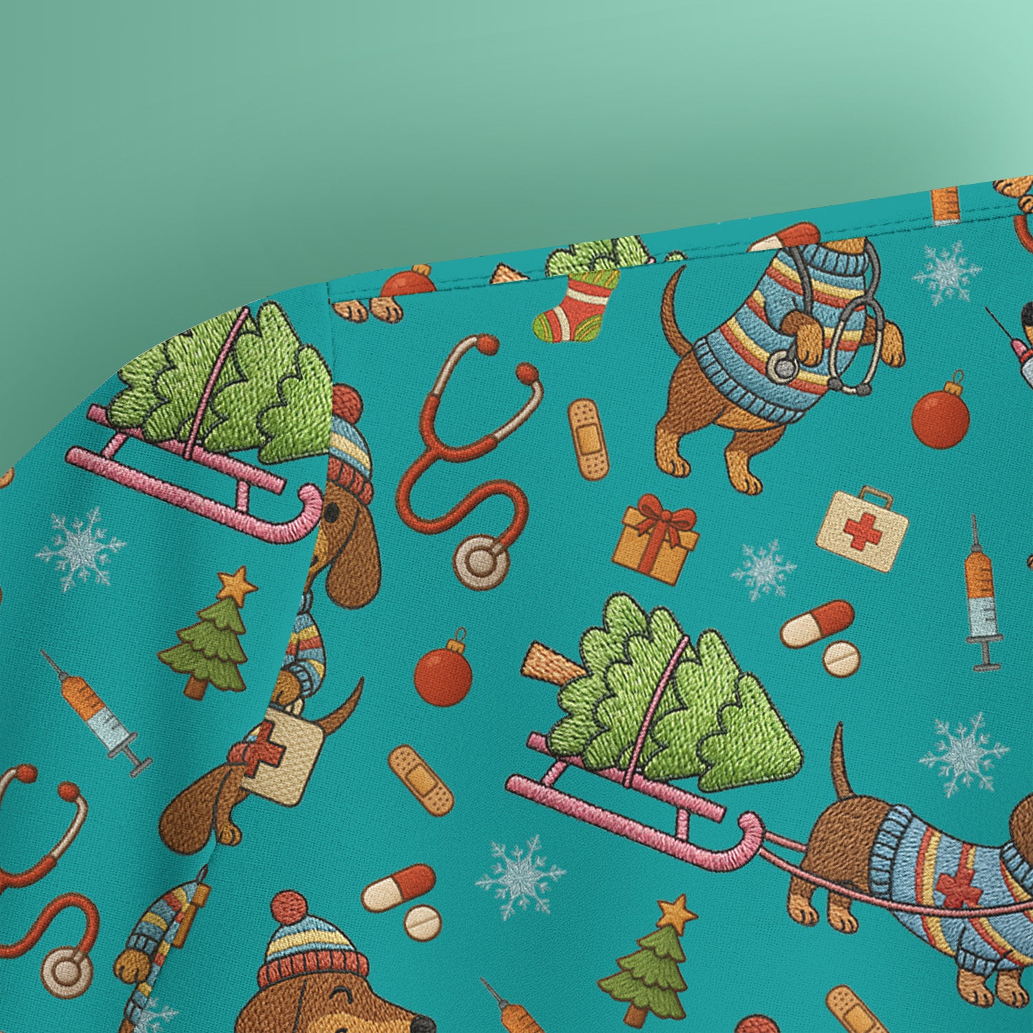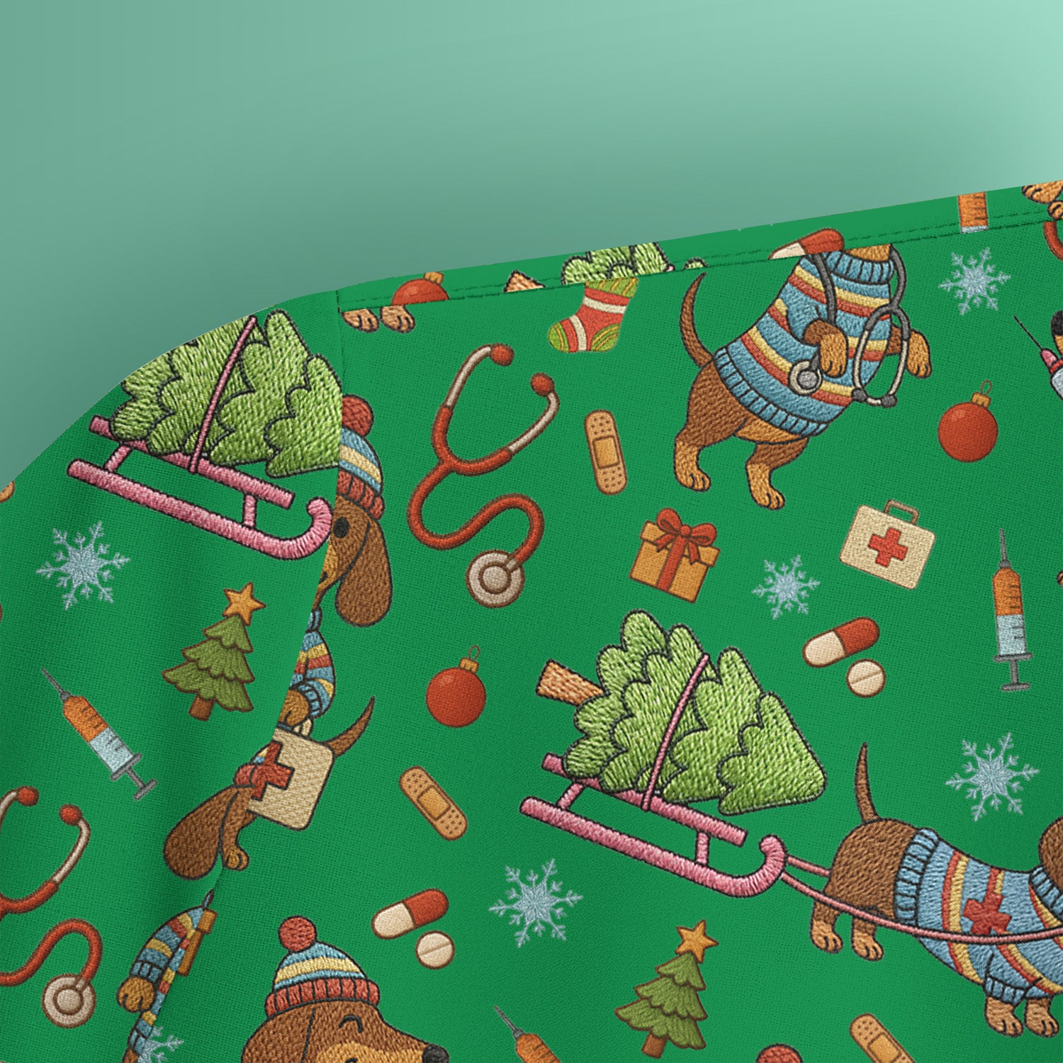 Dachshund Dog Scrub For Nurse, Funny Wiener Dog Lover Gift, Cute Dog 3D Knit Pattern Shirt