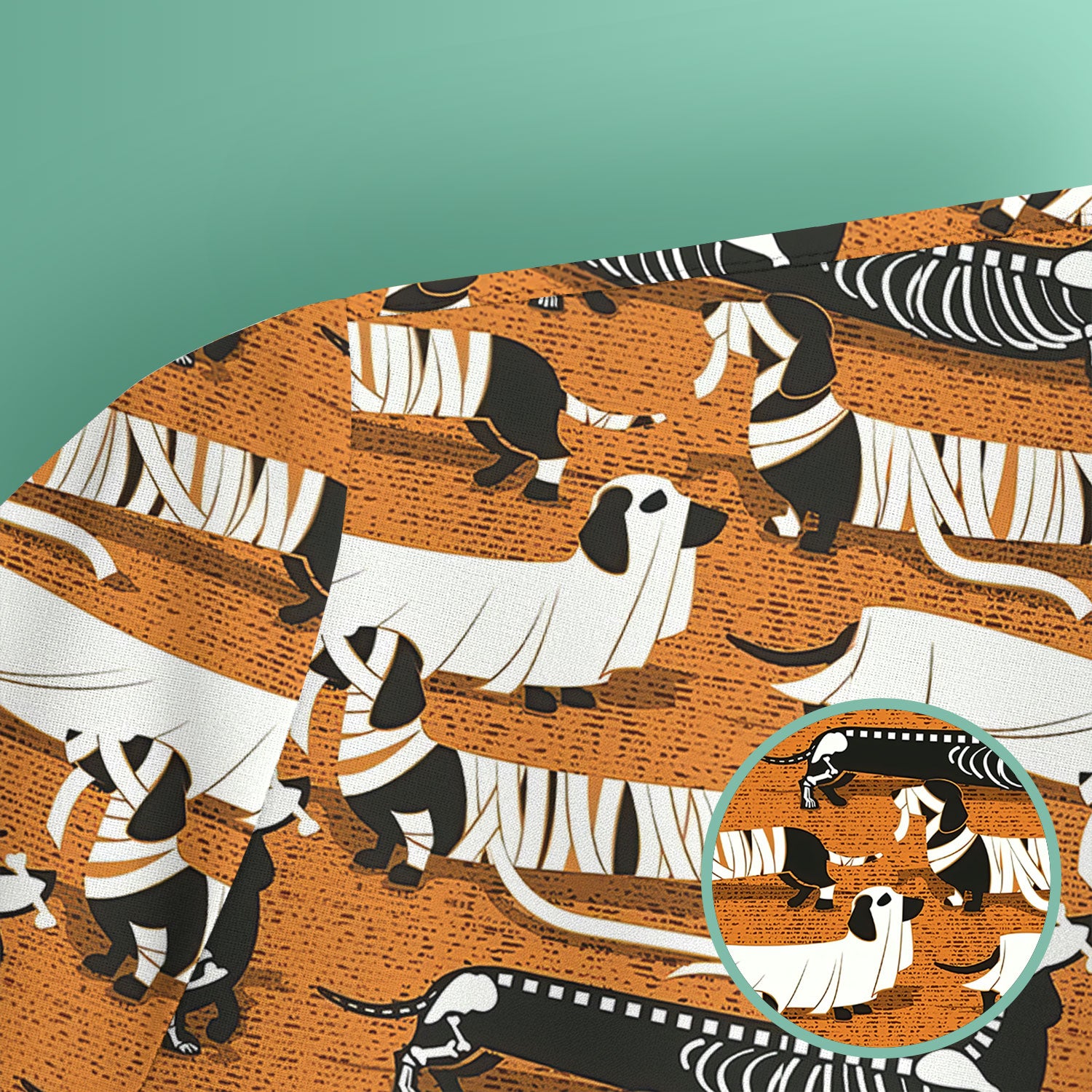 Dachshund Halloween Scrub Shirt - Multi Color Dog Print Scrub Top - Funny Skeleton Nurse Scrubs Gift for Women Men, CNA, RN