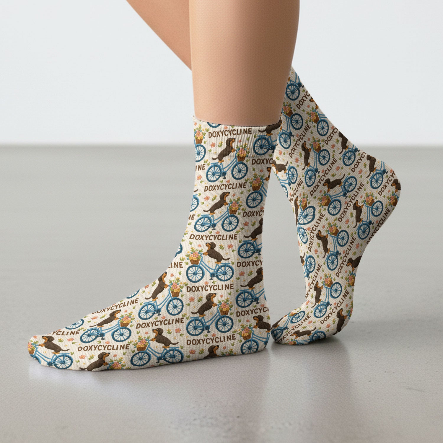 Doxycycline Pharmacy Bouffant Scrub Socks for Women - Dachshund on Bicycle Holiday Nursing Gift - Breathable Fabrics Sock Uniform