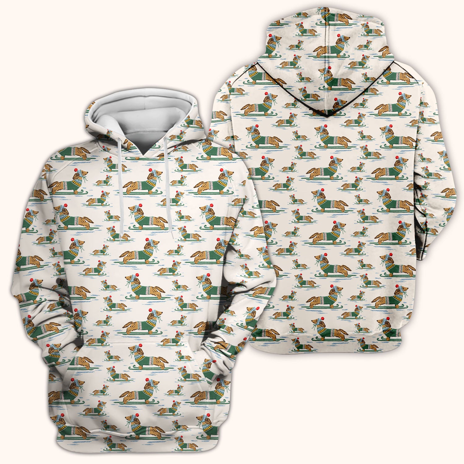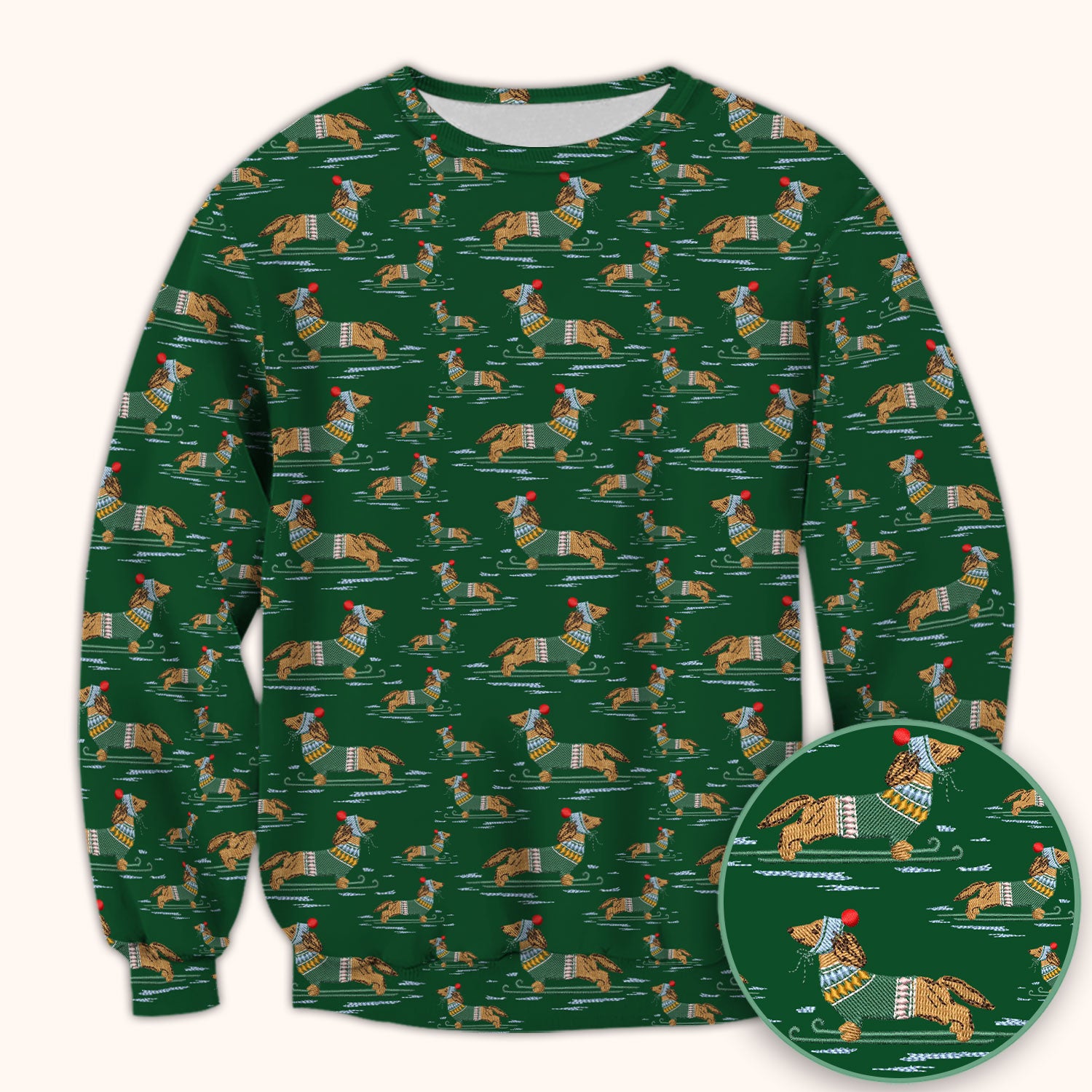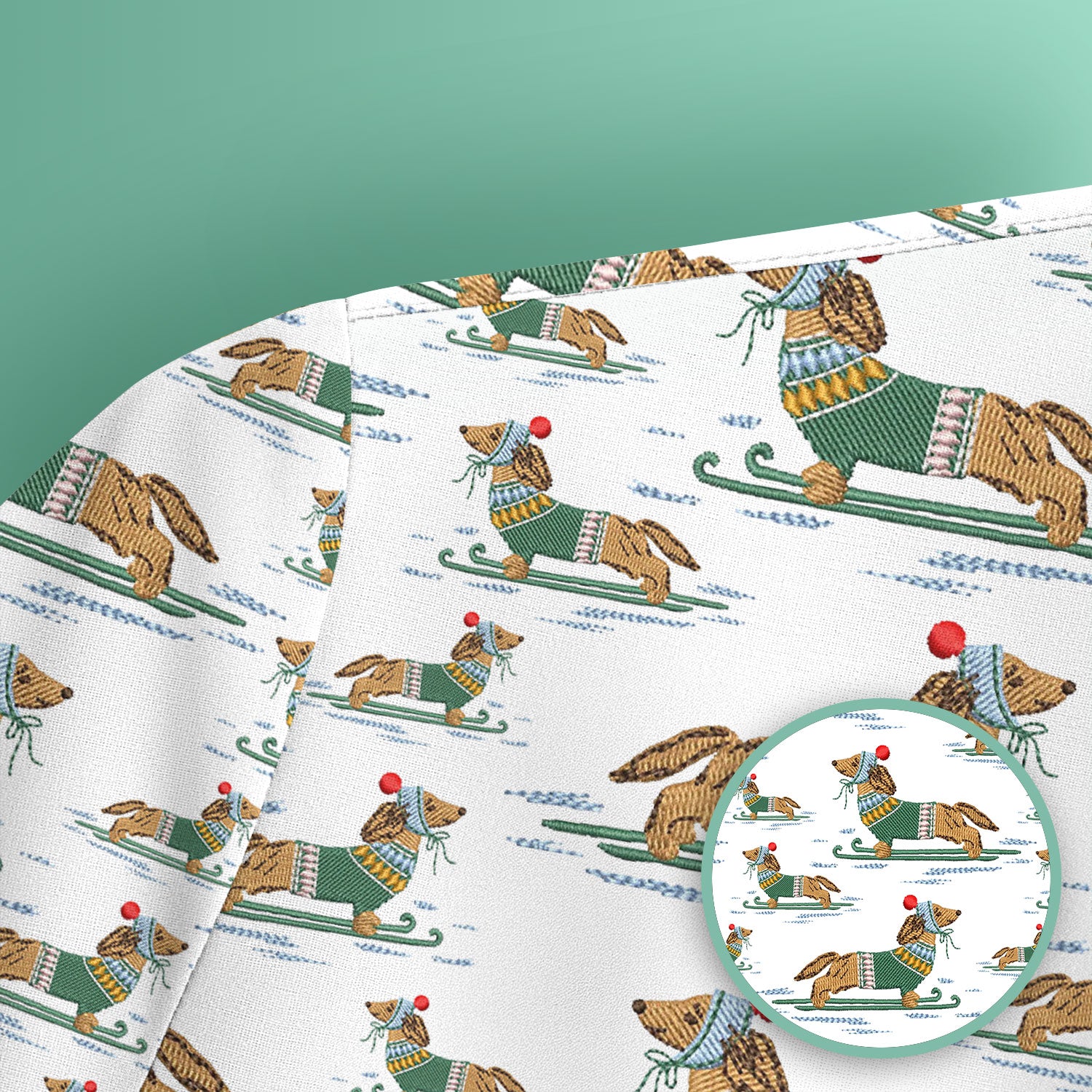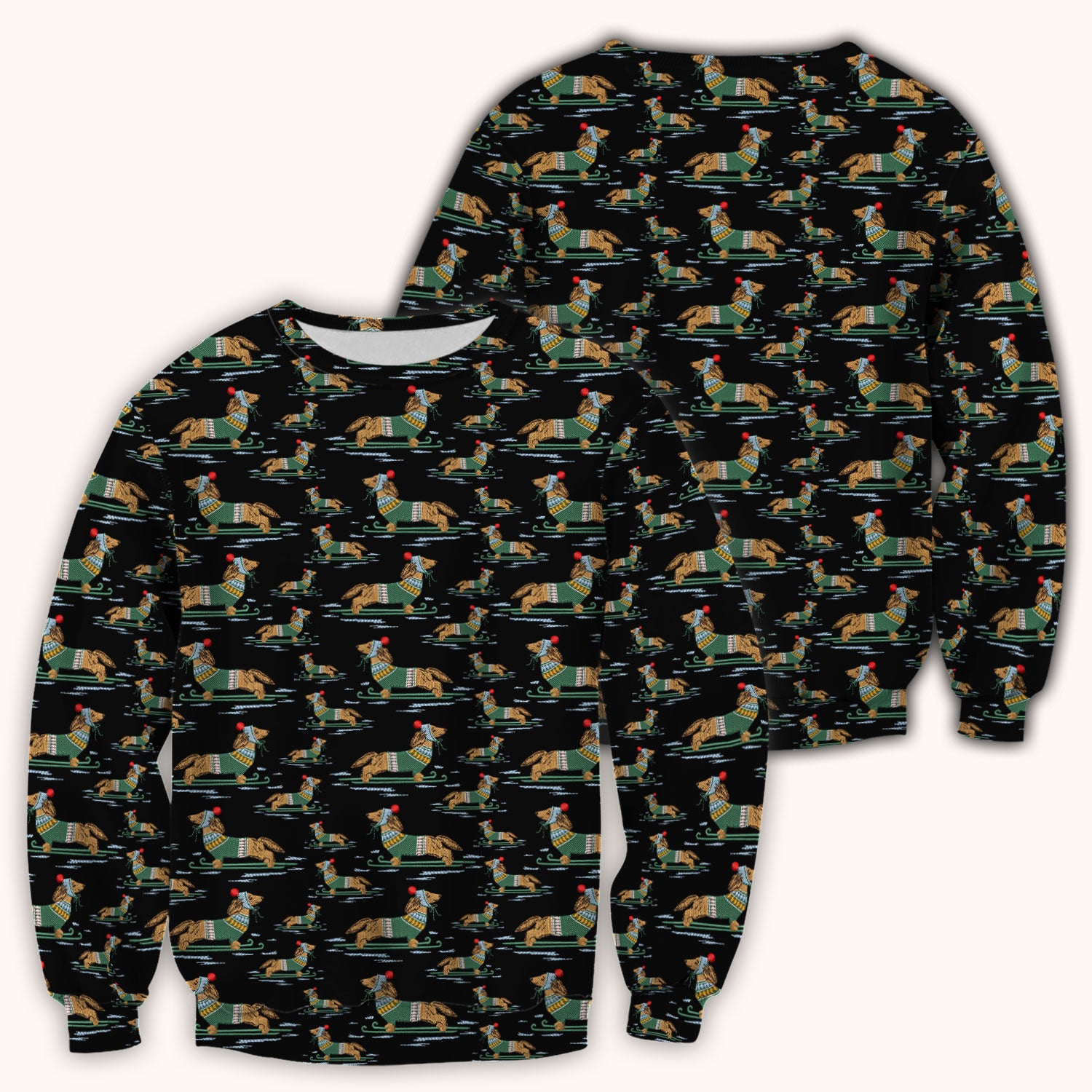 Dachshund Nurse Scrub Top, Wiener Dog Winter Pattern Shirt, Breathable Fabrics Nursing Uniform