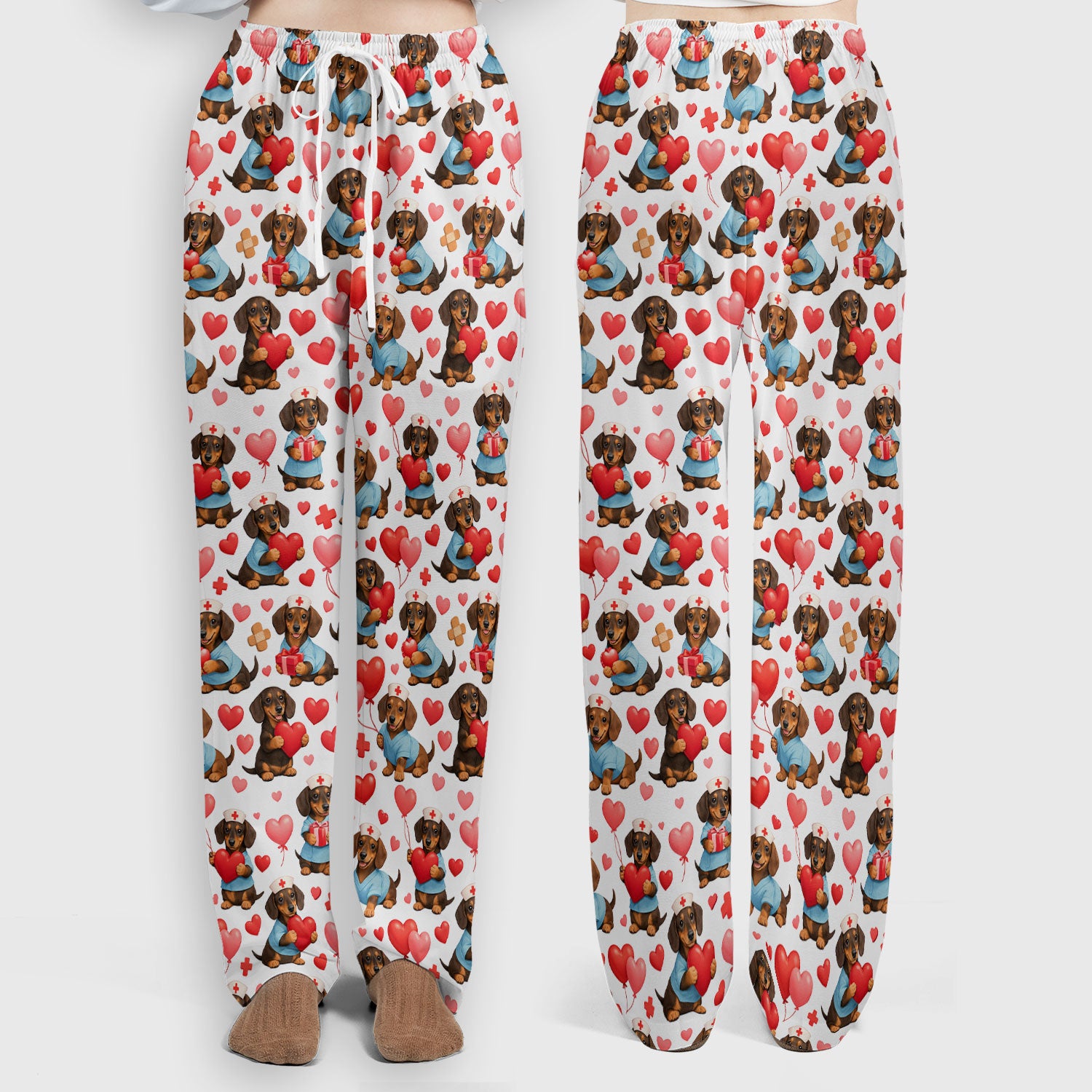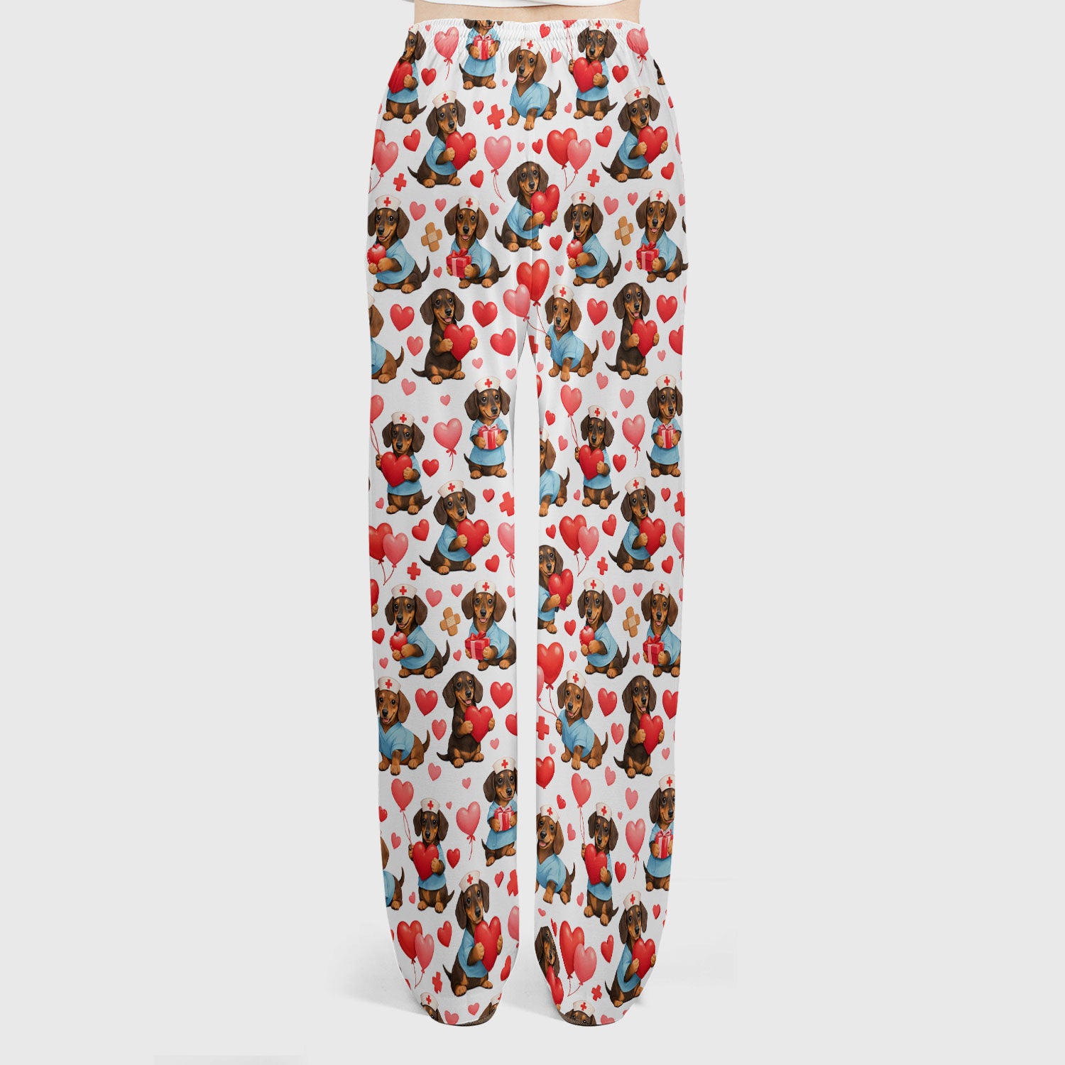 Dachshund Valentine Nurse Scrub Set, Cute Wiener Dog Medical Pattern Shirt, Breathable Fabrics Nursing Uniform