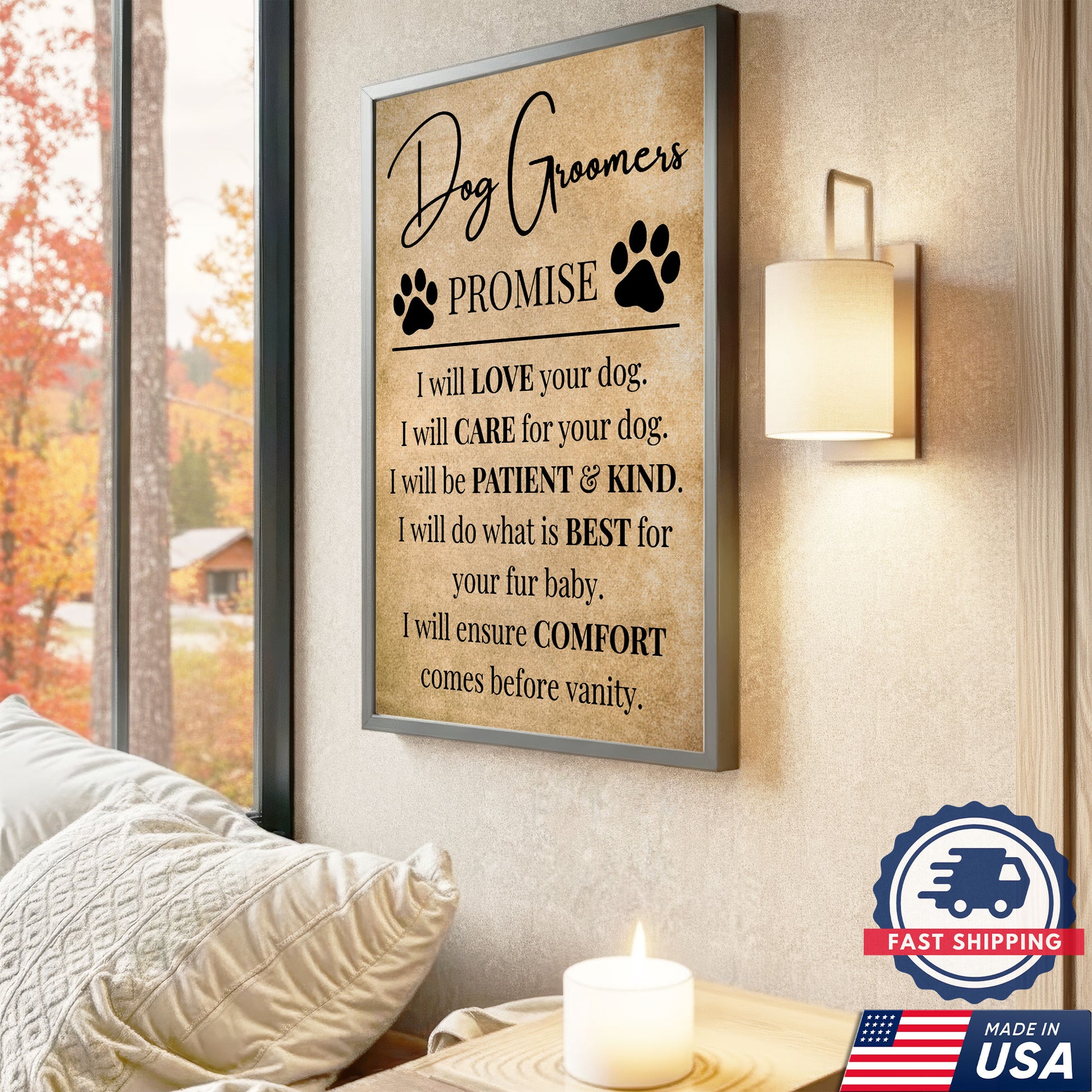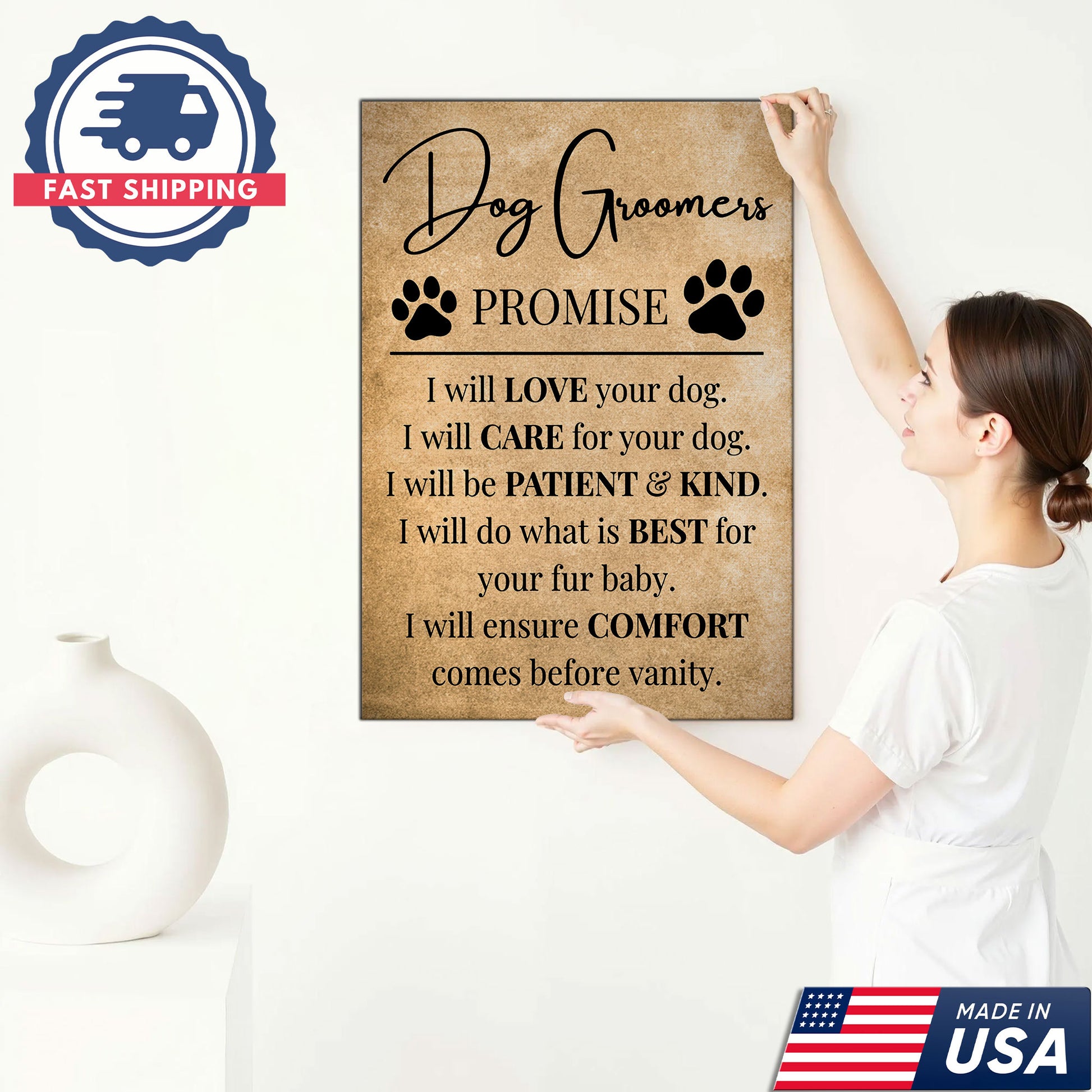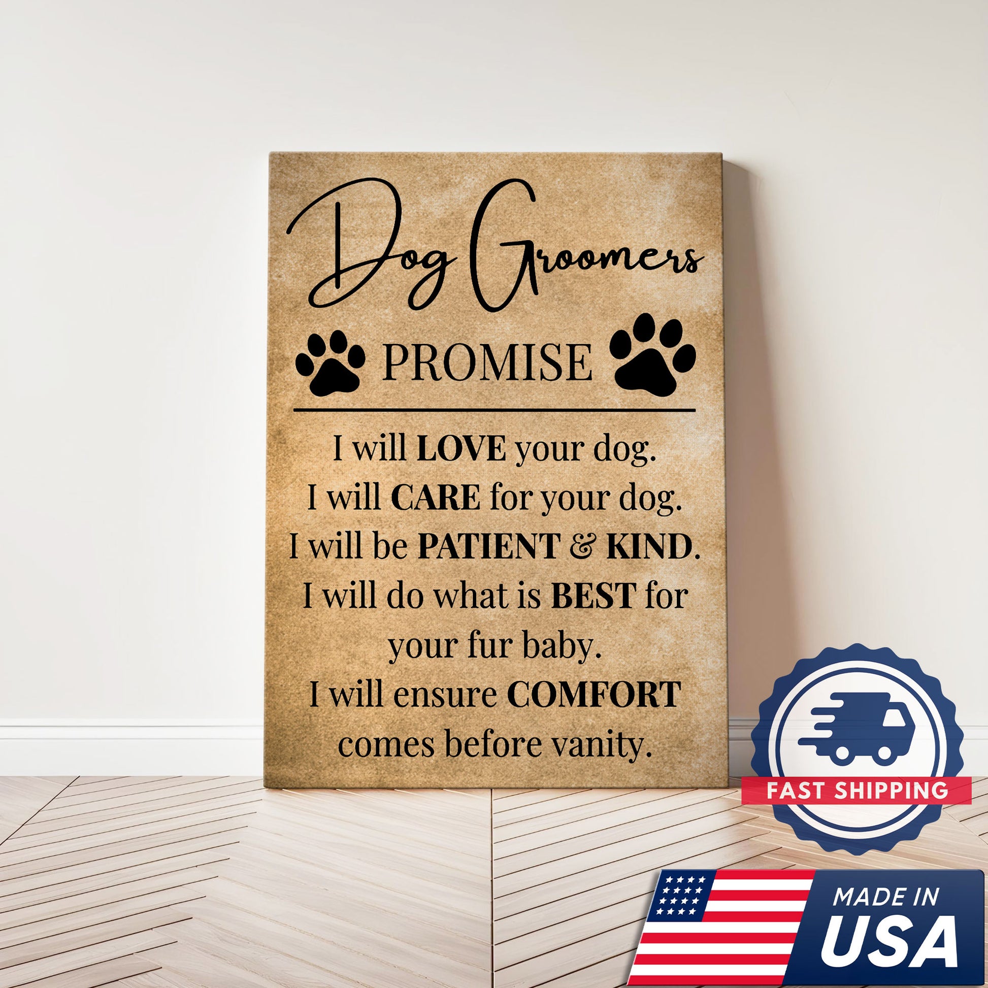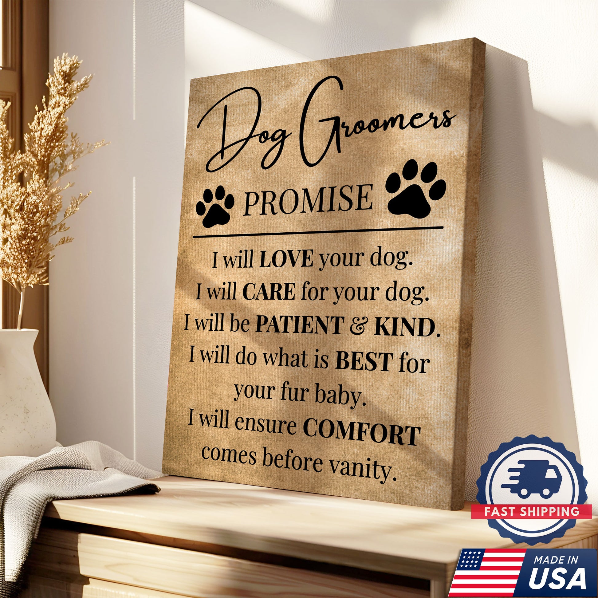 Dog Groomers Promise Inspirational Canvas, Dog Lover Wall Art, Pet Groomer Gift