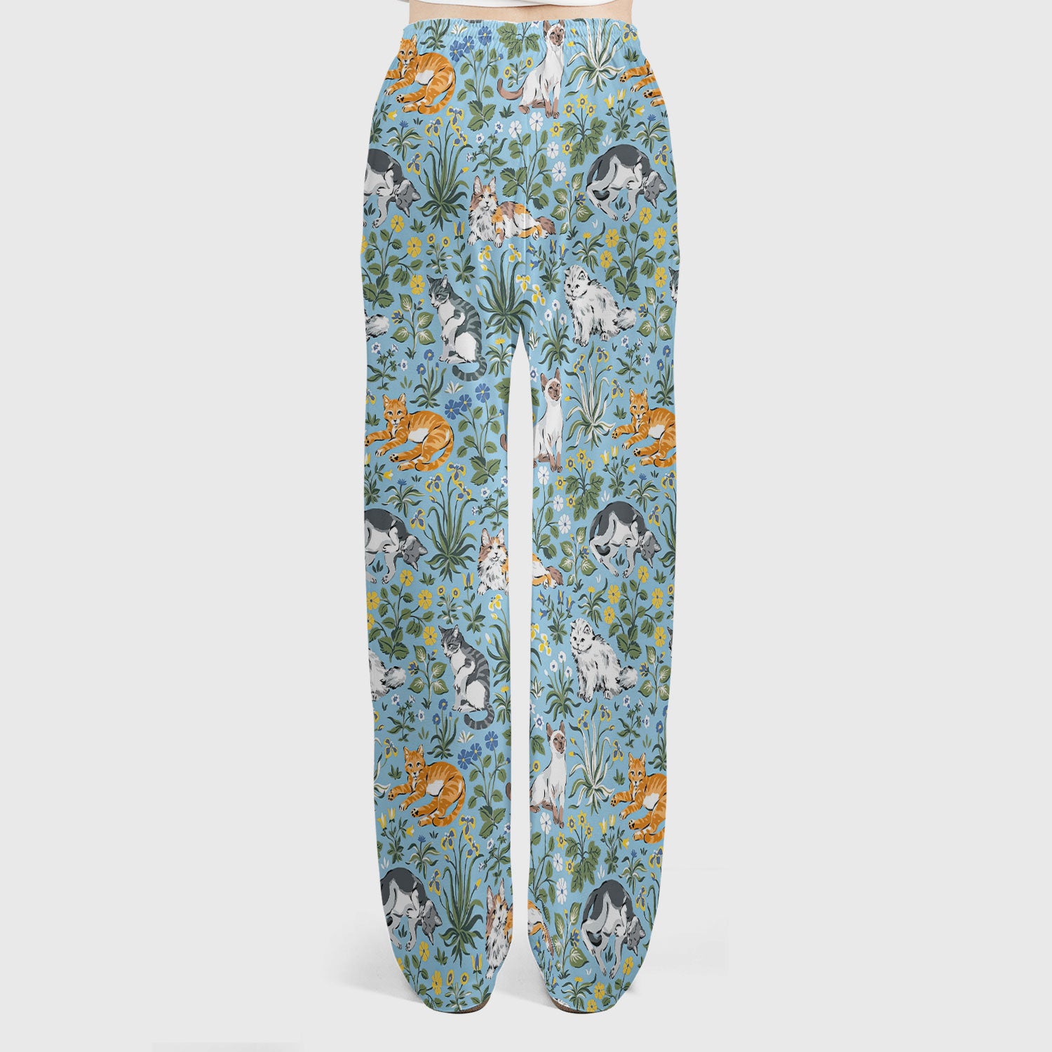 Floral Cat Garden Medical Pattern Scrub Set, Women's Scrub Sets