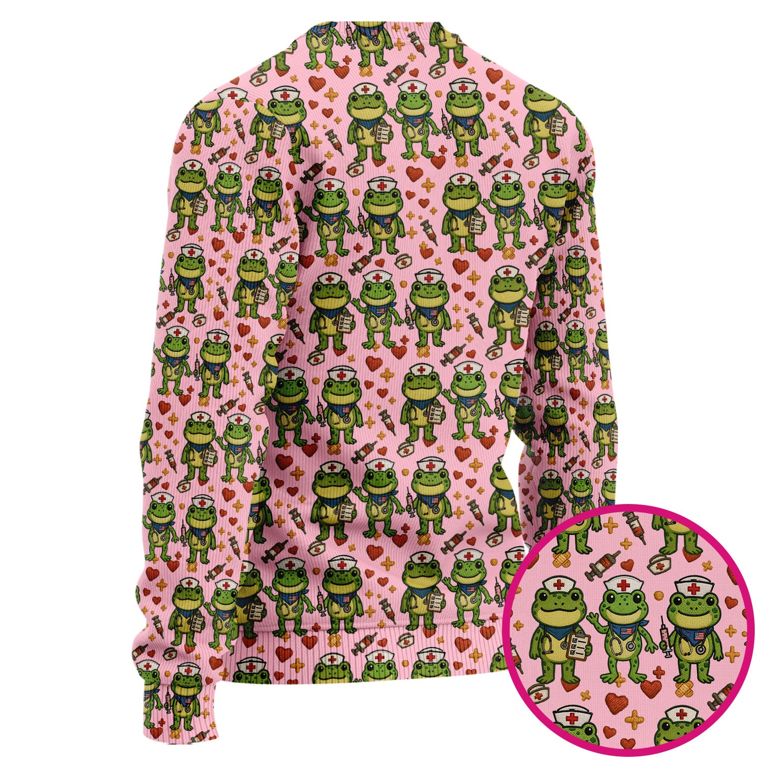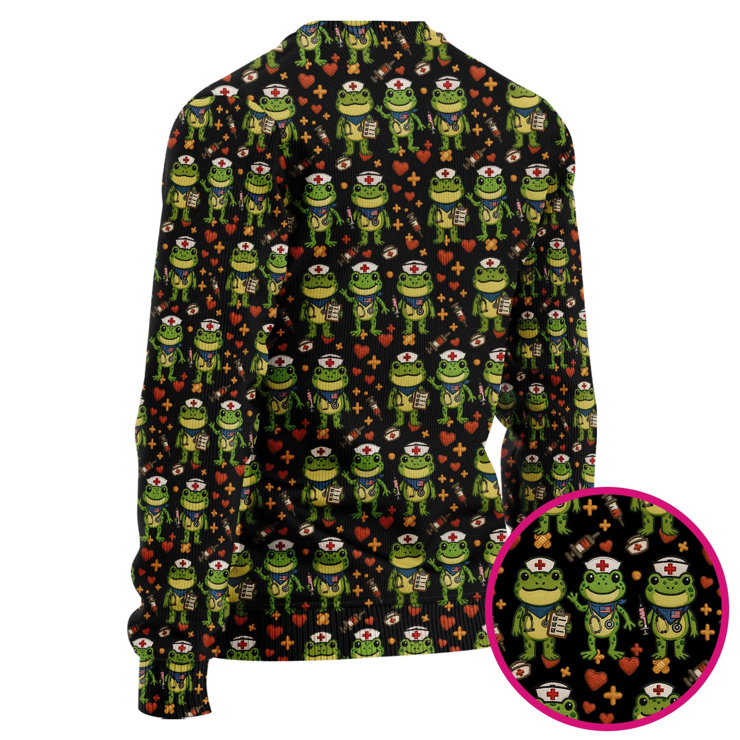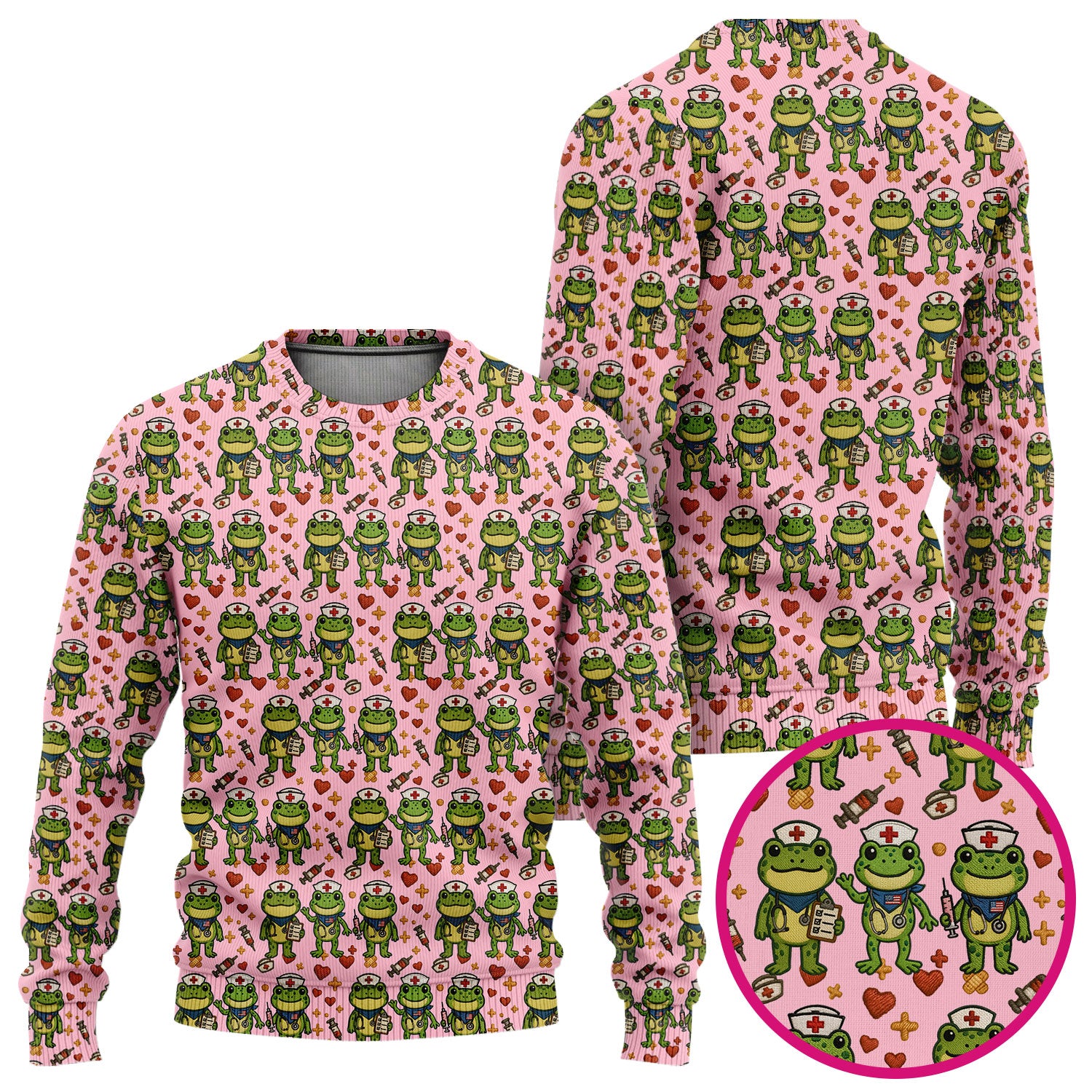 Frog Pattern Ugly Sweater, Cute Frog Sweater, Gift For Nursing