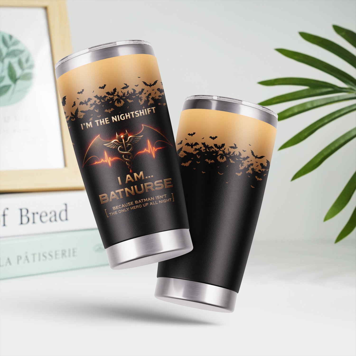 Funny Batnurse Tumbler for Nightshift Nurses - Personalized 20oz Stainless Steel Cup - Superhero Medical Gift for RN LPN CNA