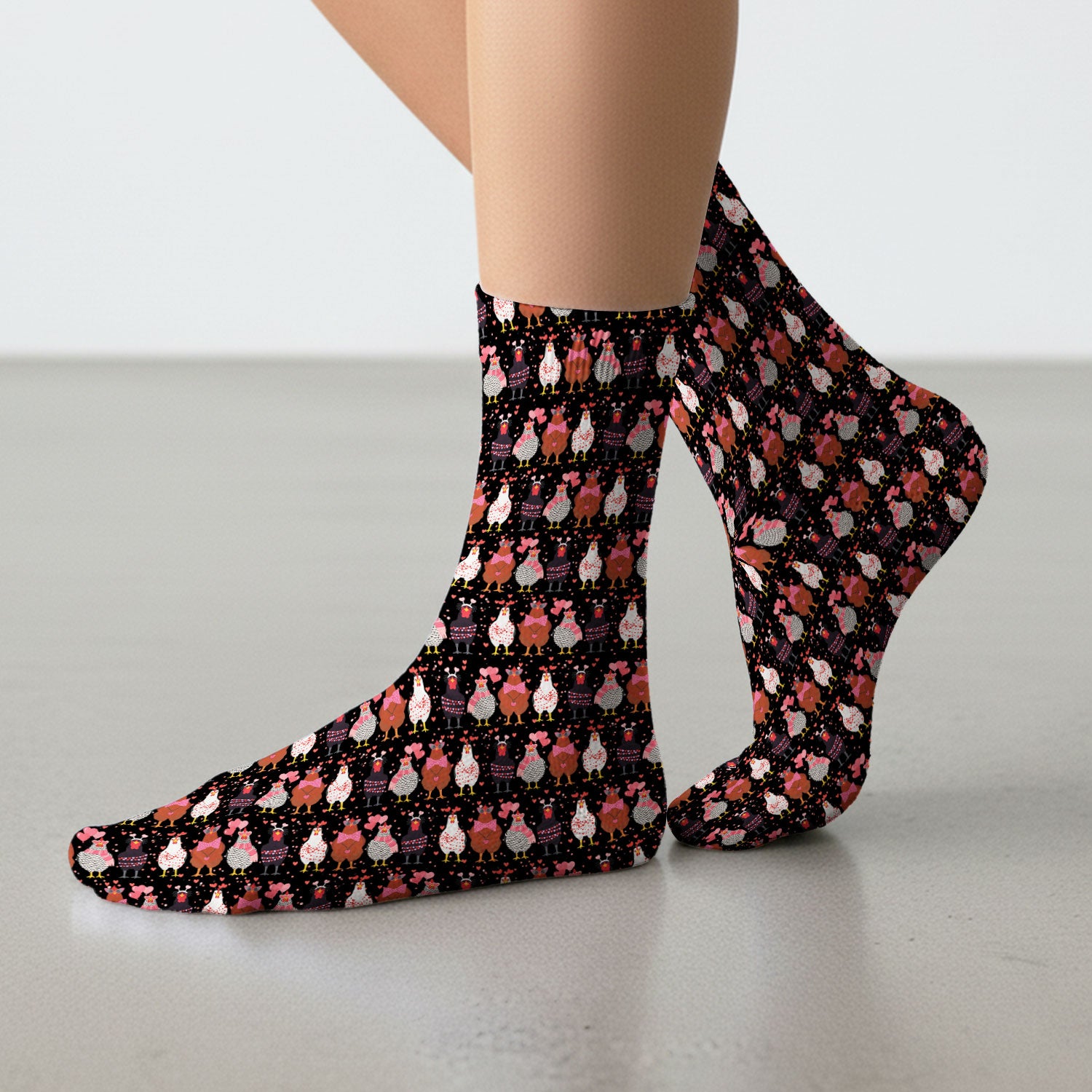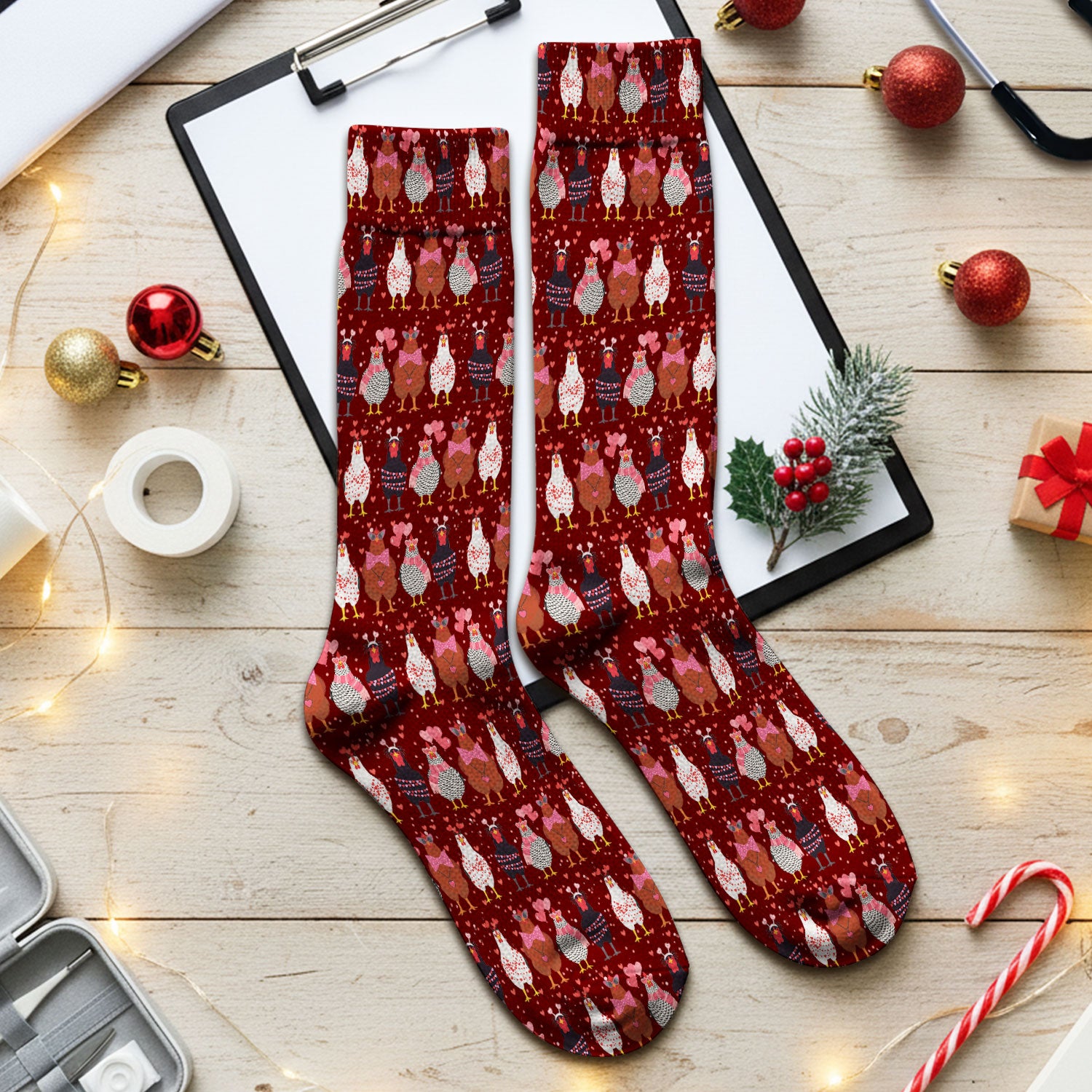 Funny Chicken Valentine Scrub Socks, Chicken Pattern Scrub Sock For Nursing, Valentine Gift For Nurse