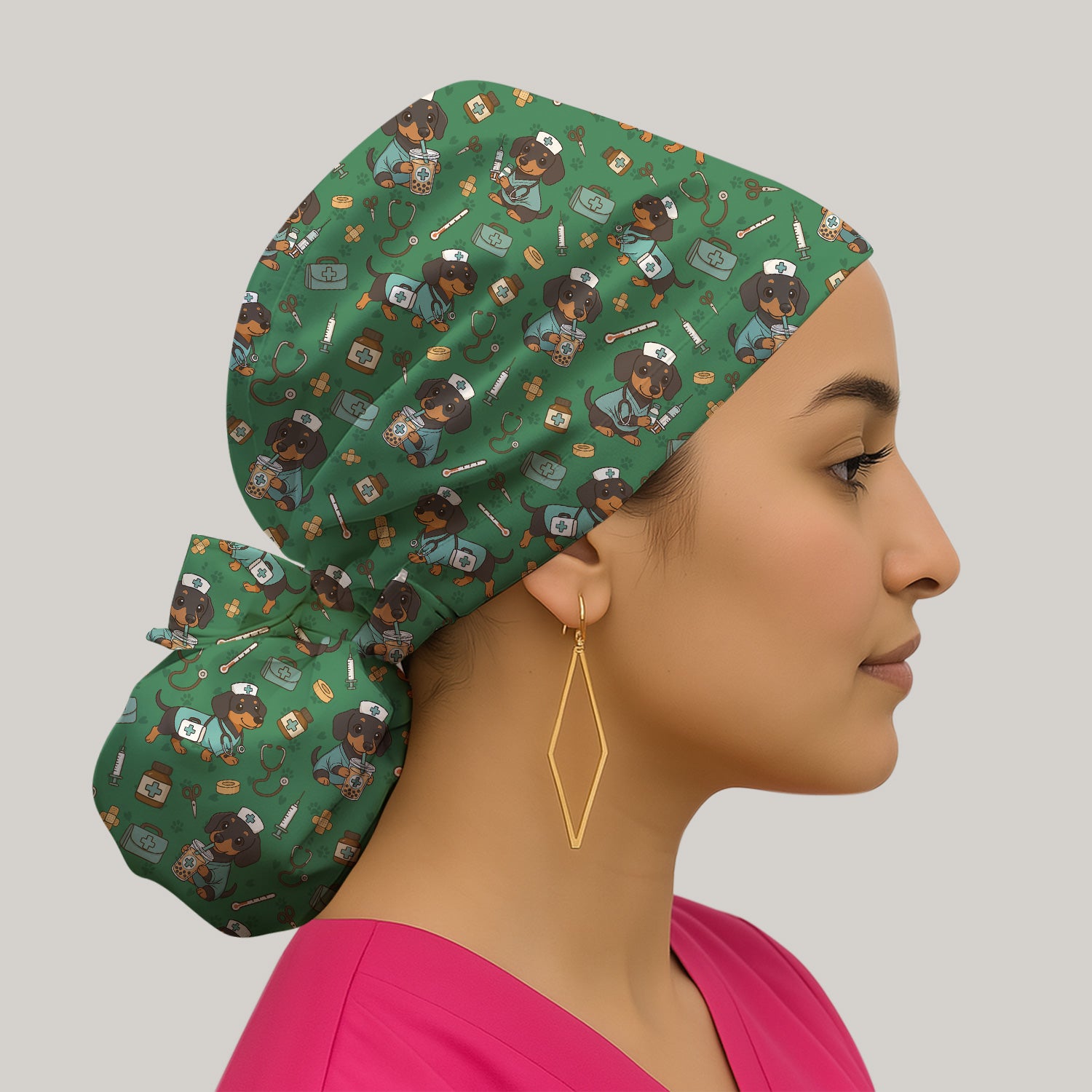 Funny Dachshund Nurse Scrubs Cap - Cute Dog Print Medical Hat- Holiday Nurse Scrub Gift for RN CNA Doctor