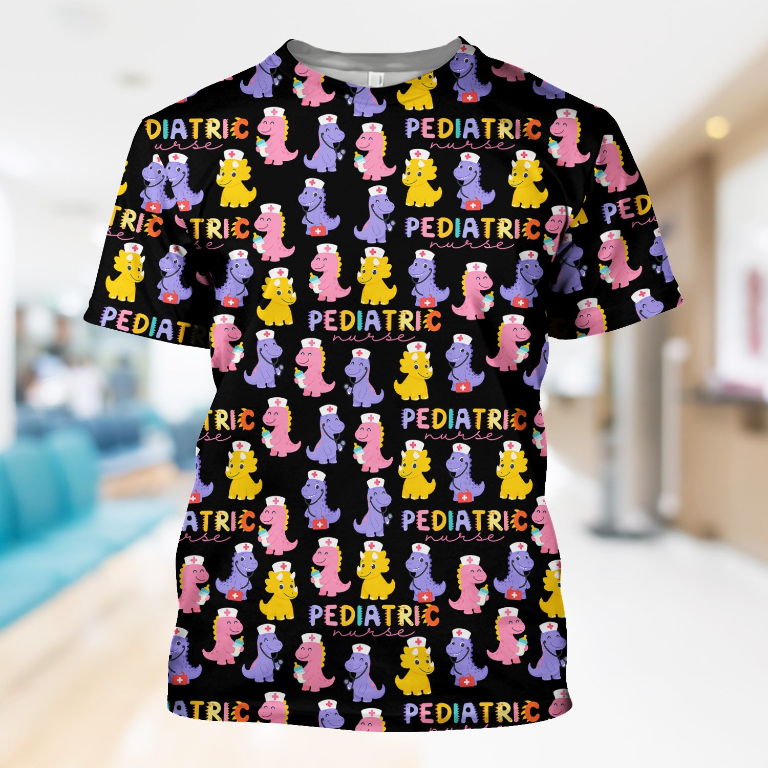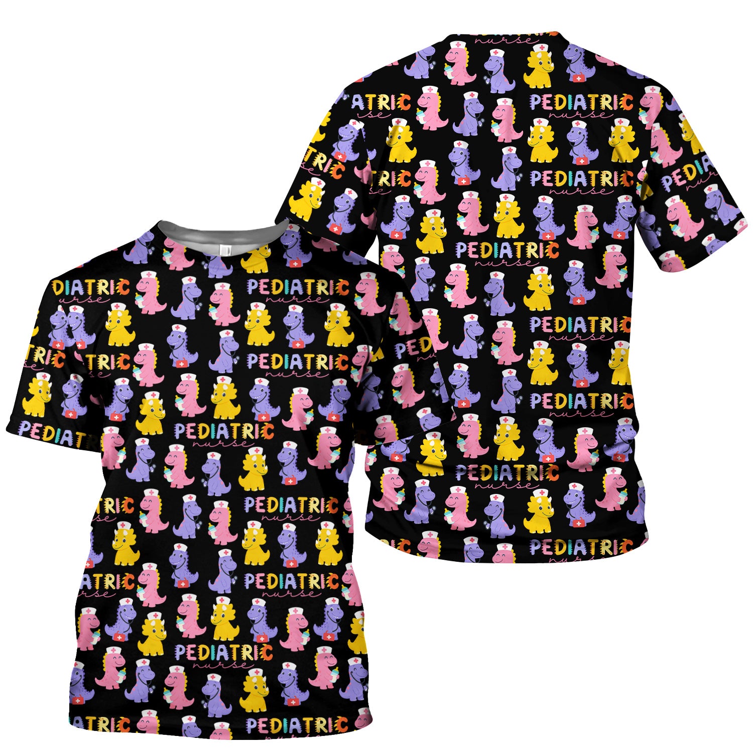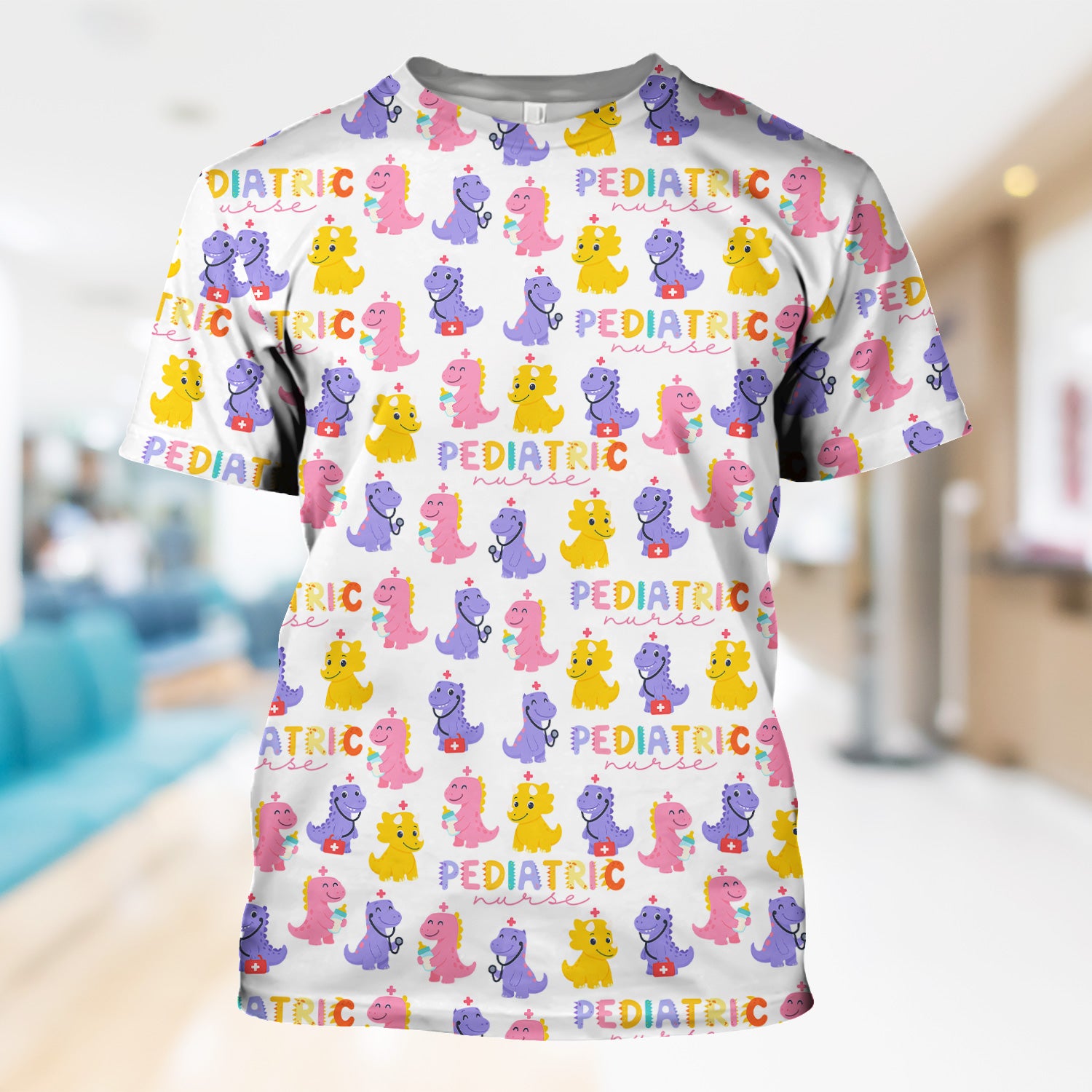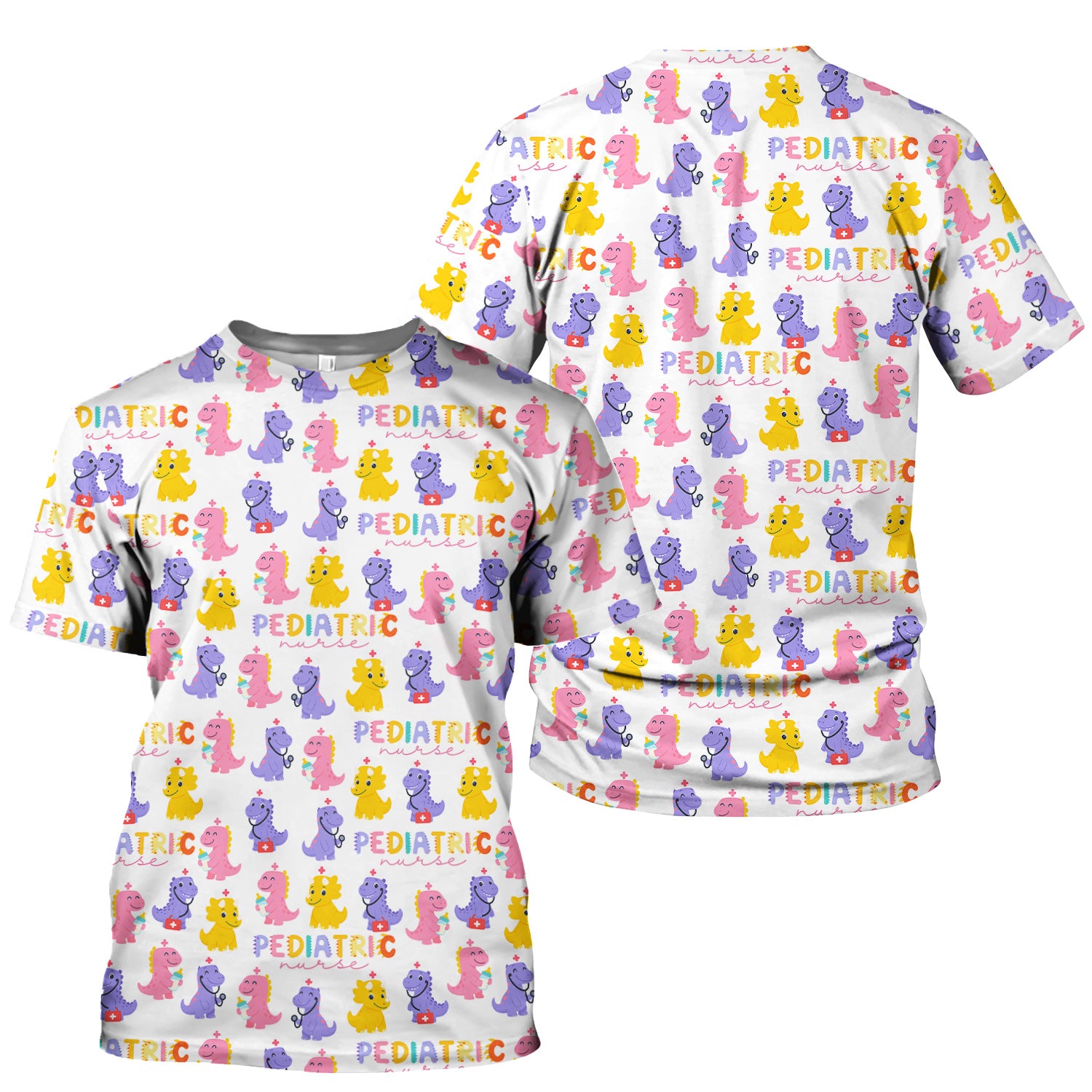Funny Dinosaur Nurse Shirt - Cute T-Rex with Stethoscope & Medical Kit Graphic Tee - Multiple Color Options Gift for Women PEDS RN LPN