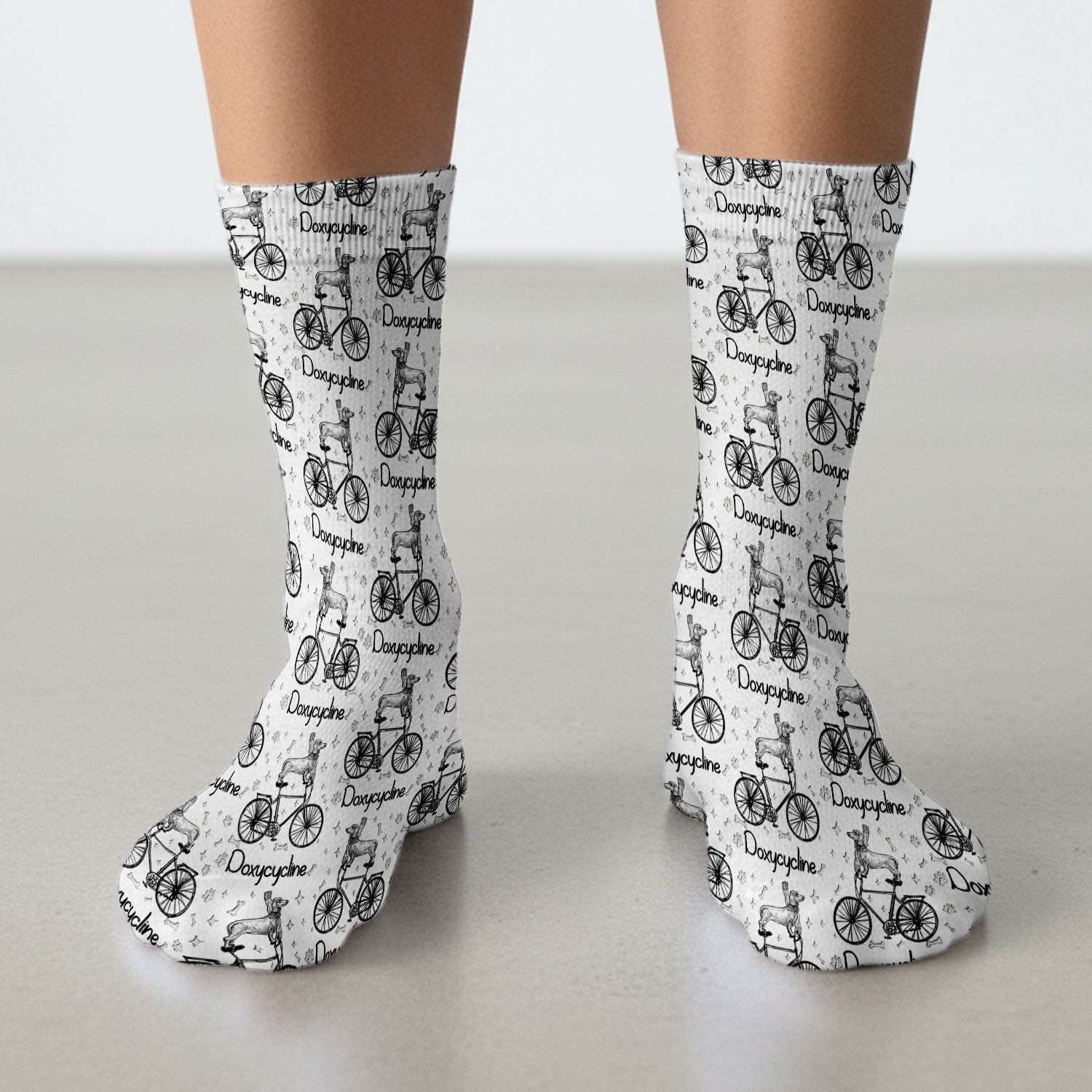 Funny Doxycycline Dog Bicycle Print Scrub Socks, Adult Socks for Men and Women