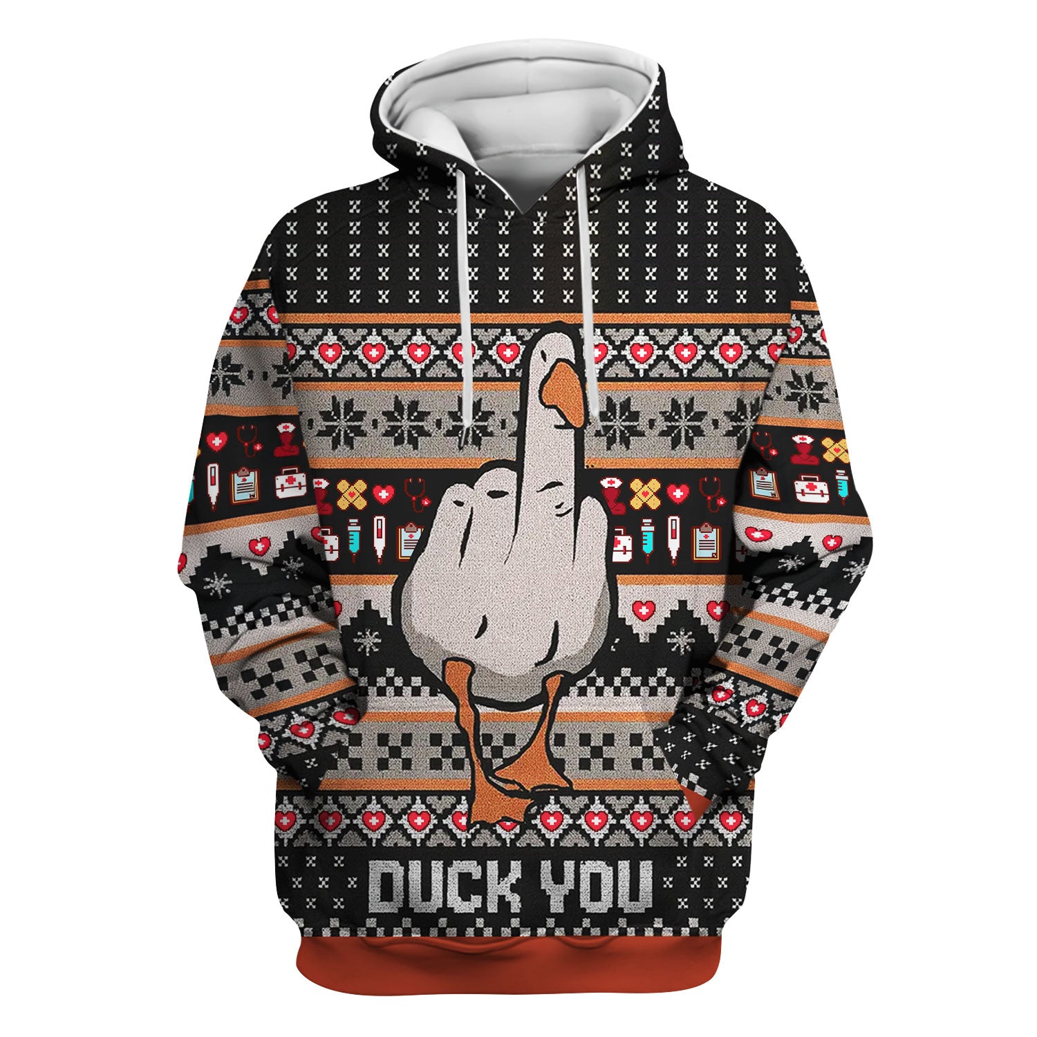 Funny Duck Scrub Top – Ugly Christmas Nurse Pattern – Humorous Medical Uniform For Nursing