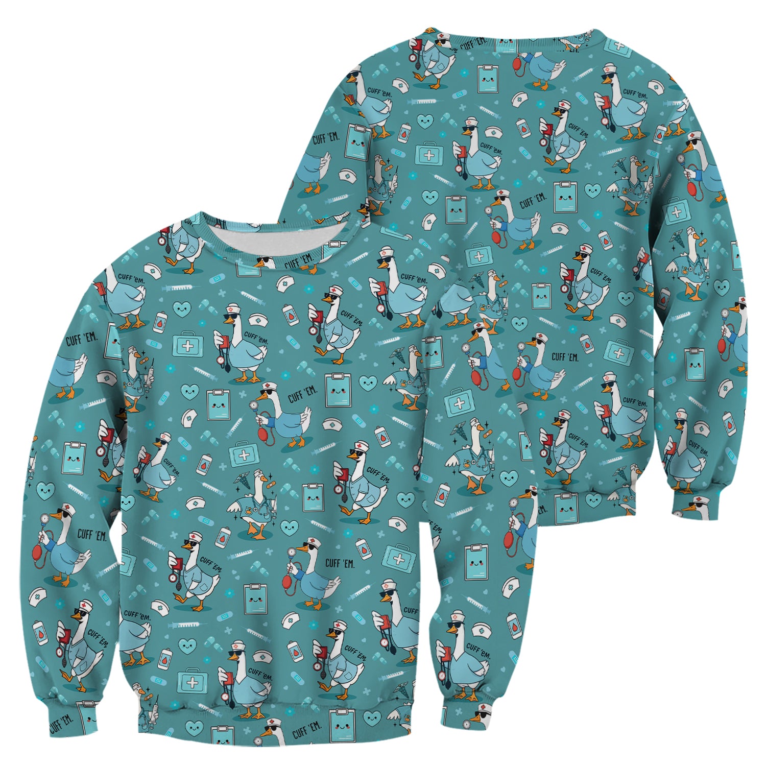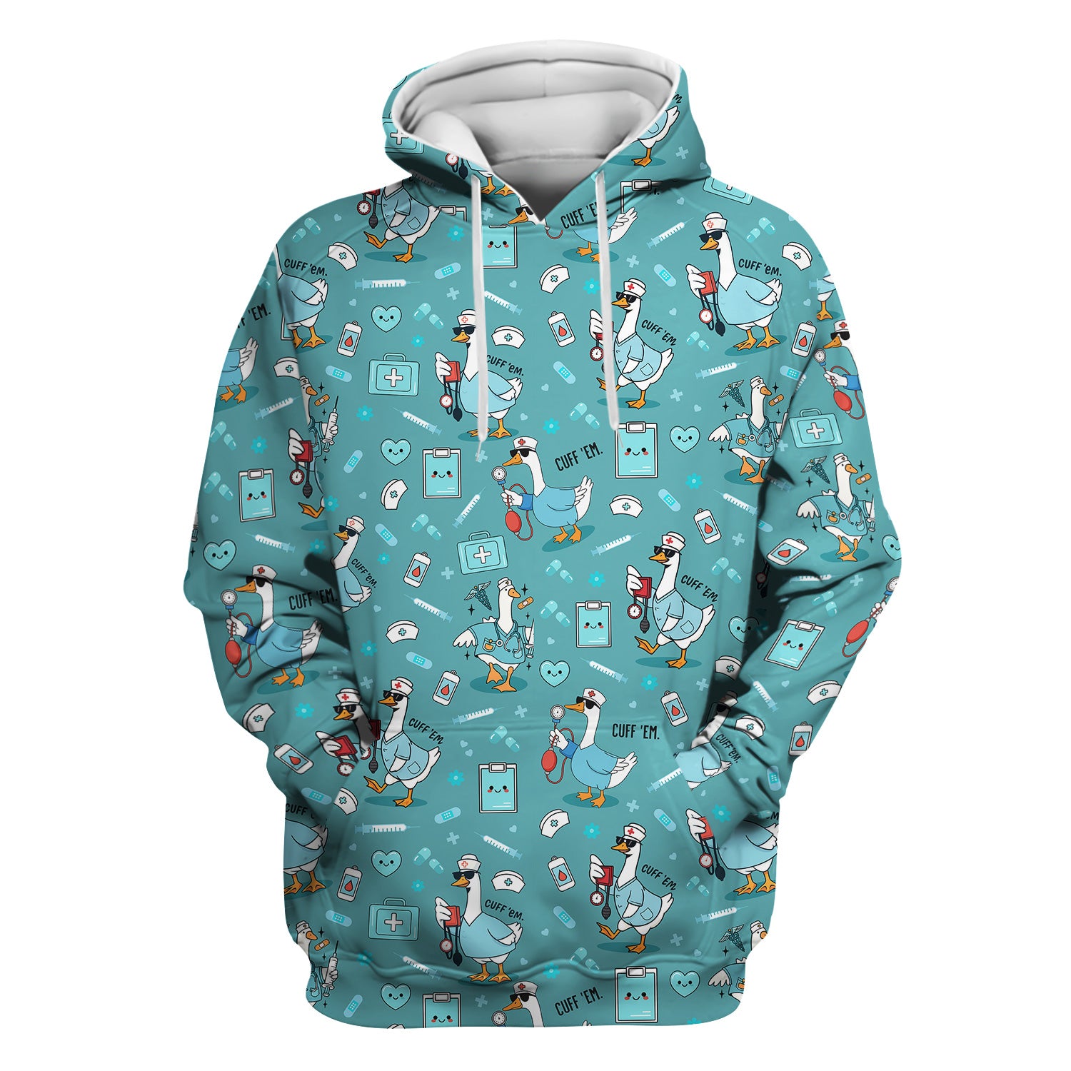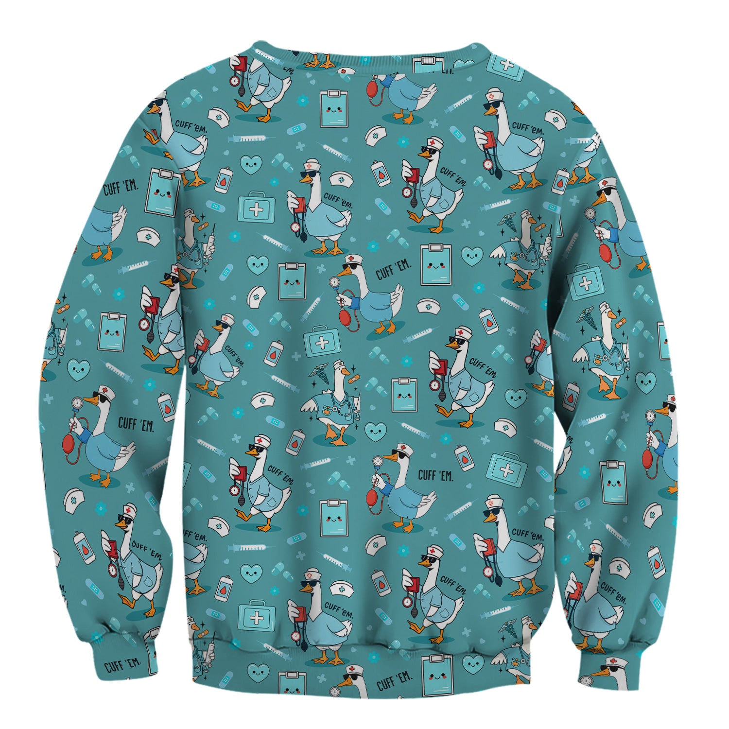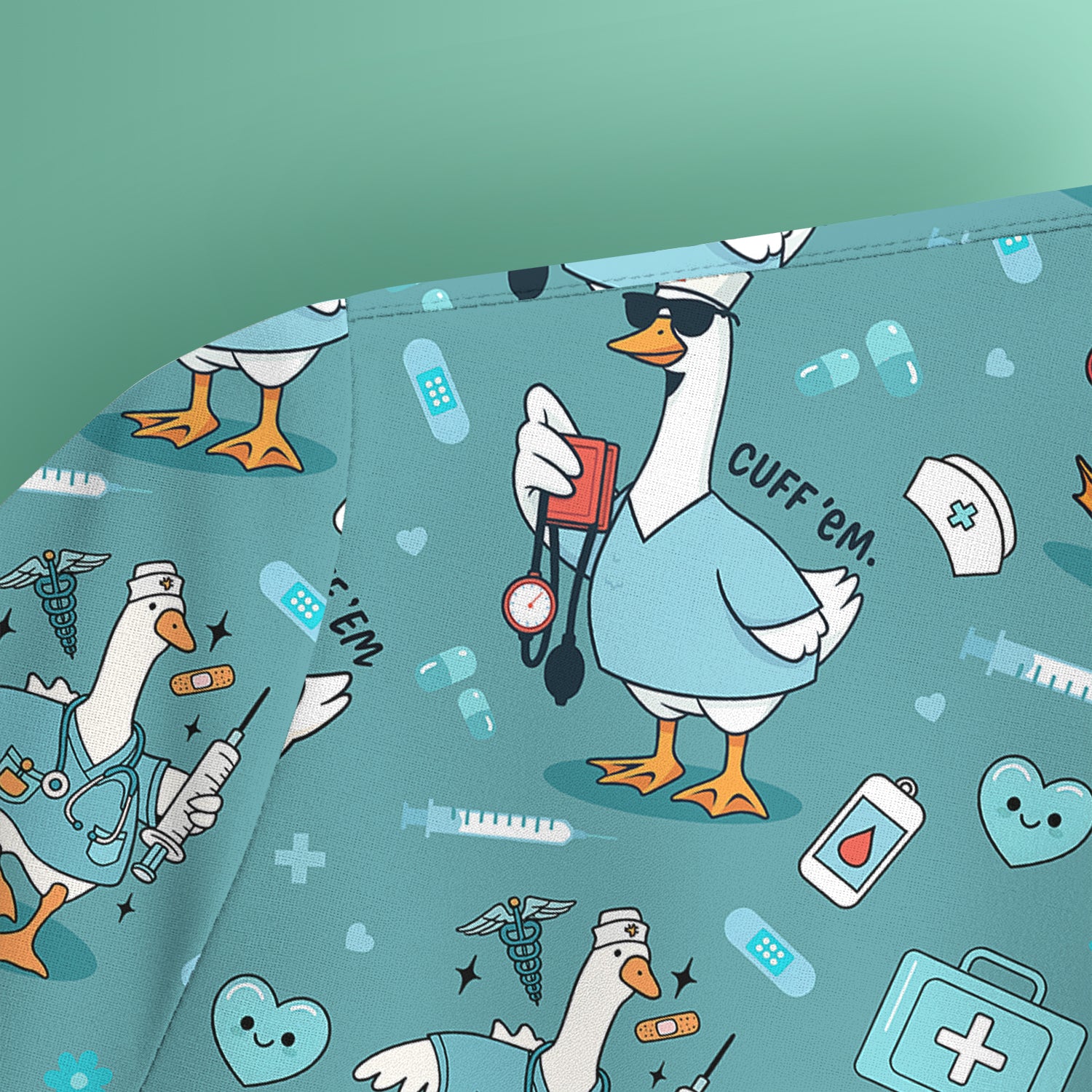 Funny EMT Nurse Shirt - Cuff 'Em Quote & Goose Nurse Pattern Tee - Gift for Paramedics & EMS Professionals
