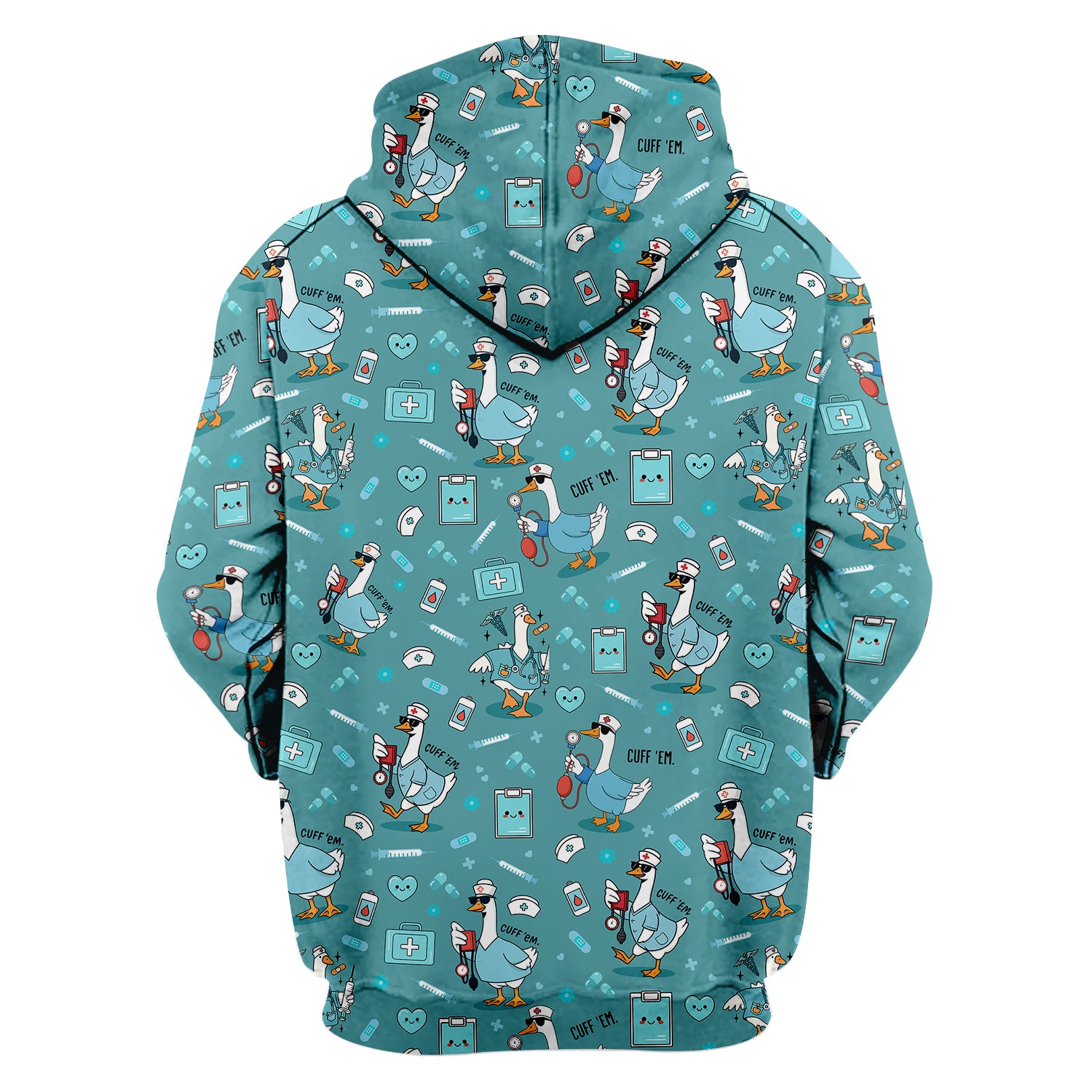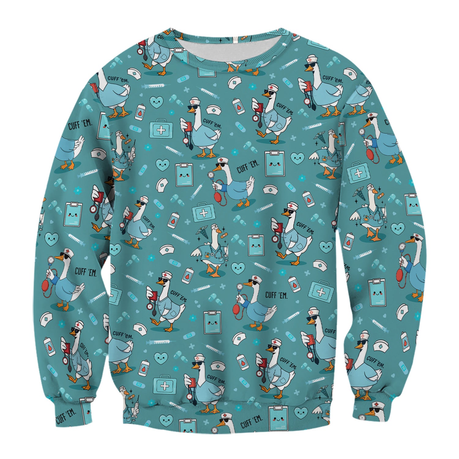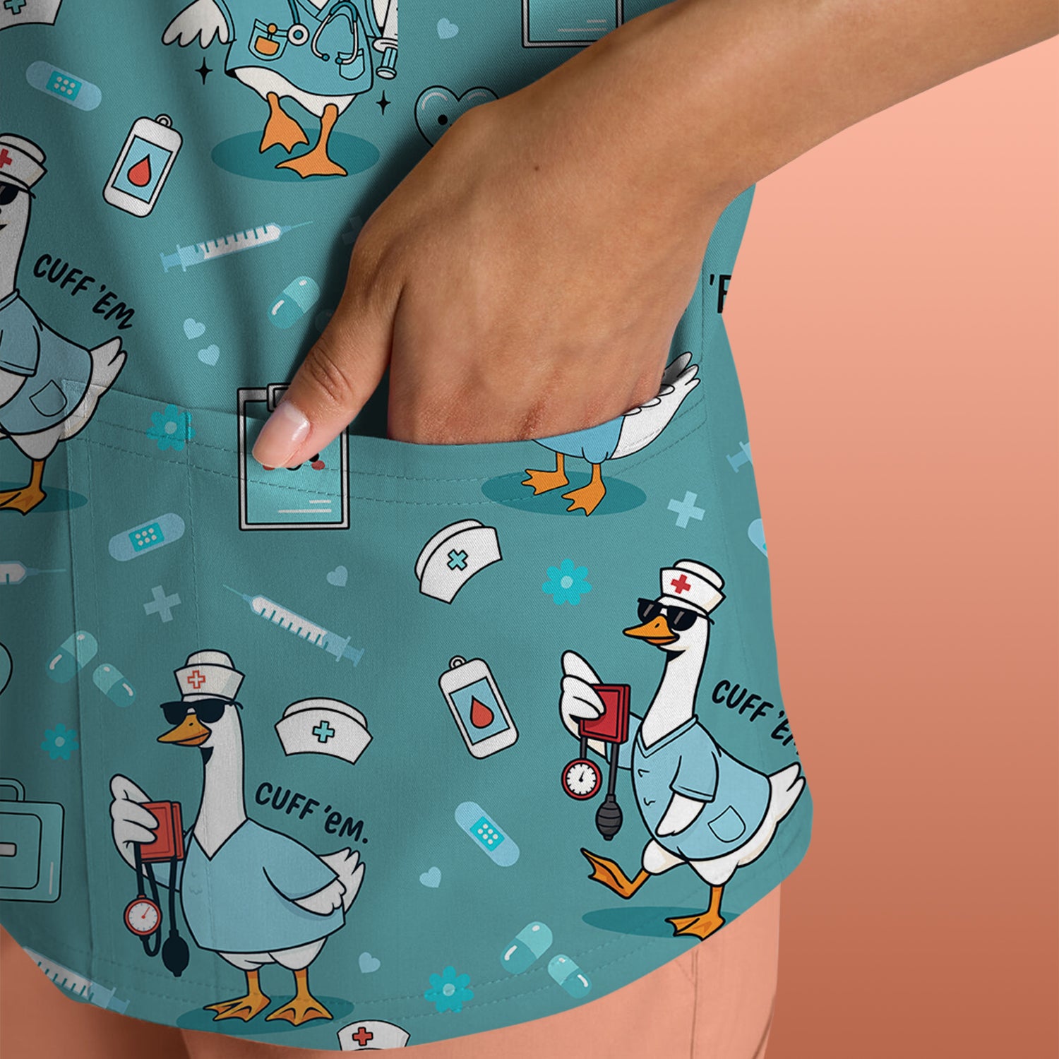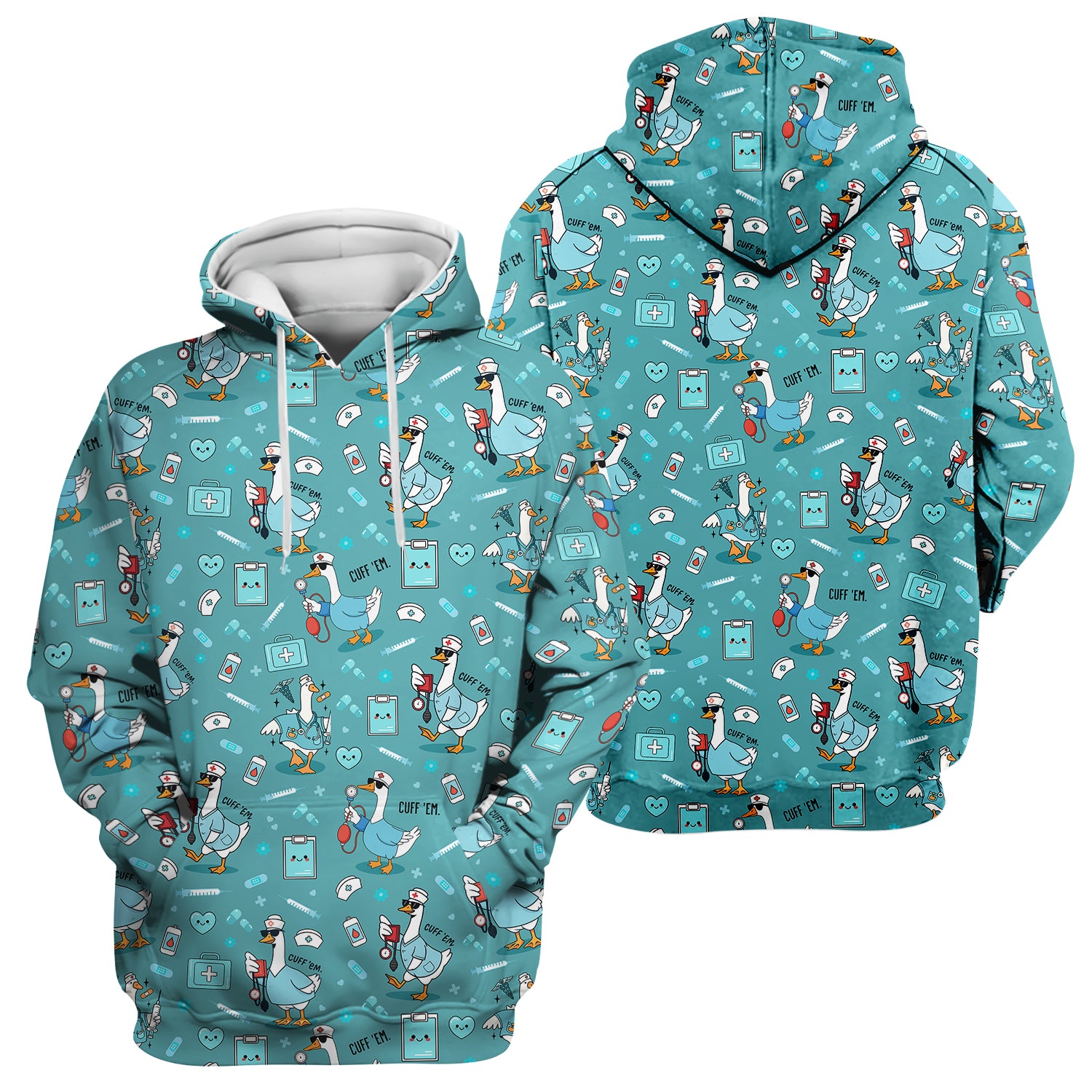 Funny EMT Nurse Shirt - Cuff 'Em Quote & Goose Nurse Pattern Tee - Gift for Paramedics & EMS Professionals