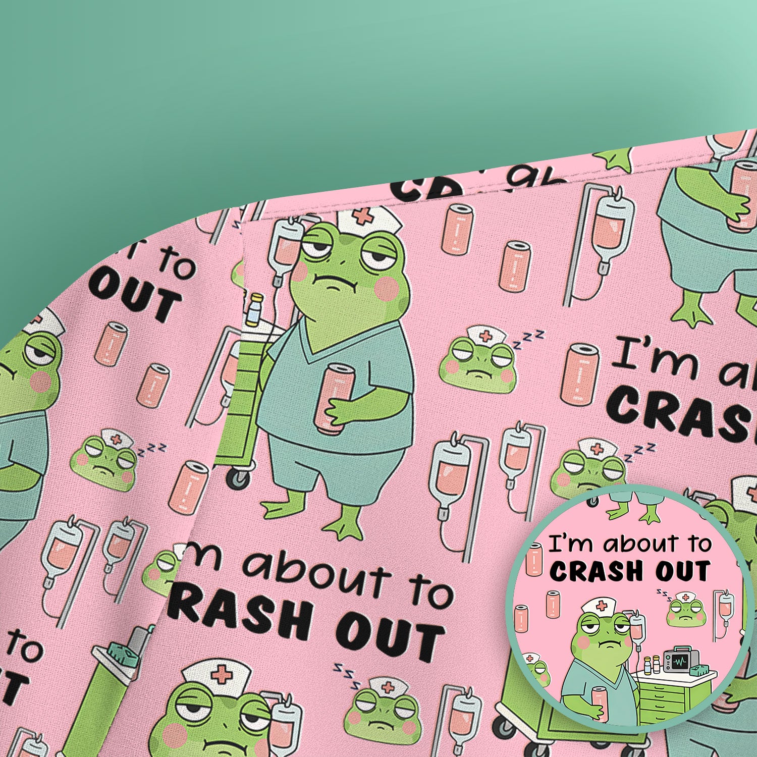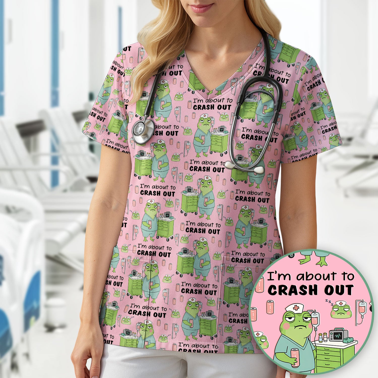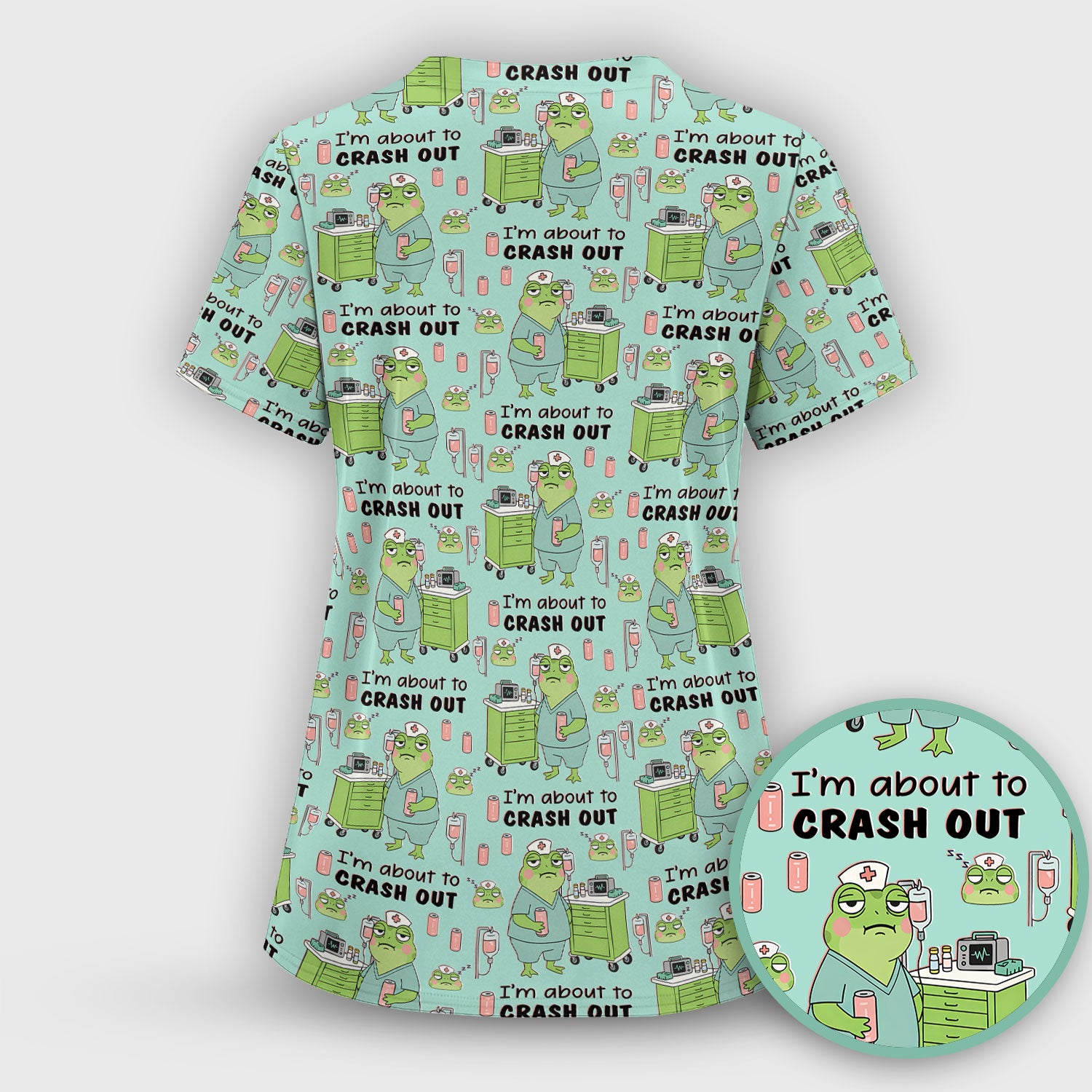 Funny Frog Pattern Nurse Scrub Top, I’m About to Crash Out Nurse Shirt, Breathable Fabrics Nursing Uniform