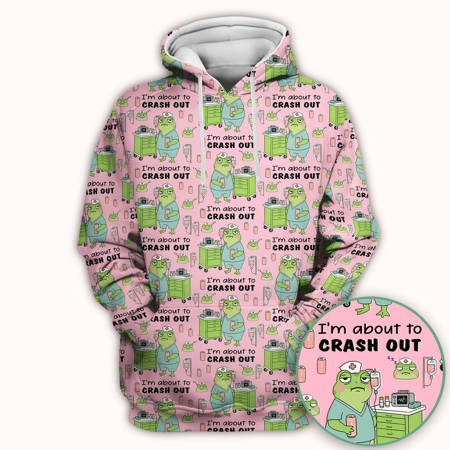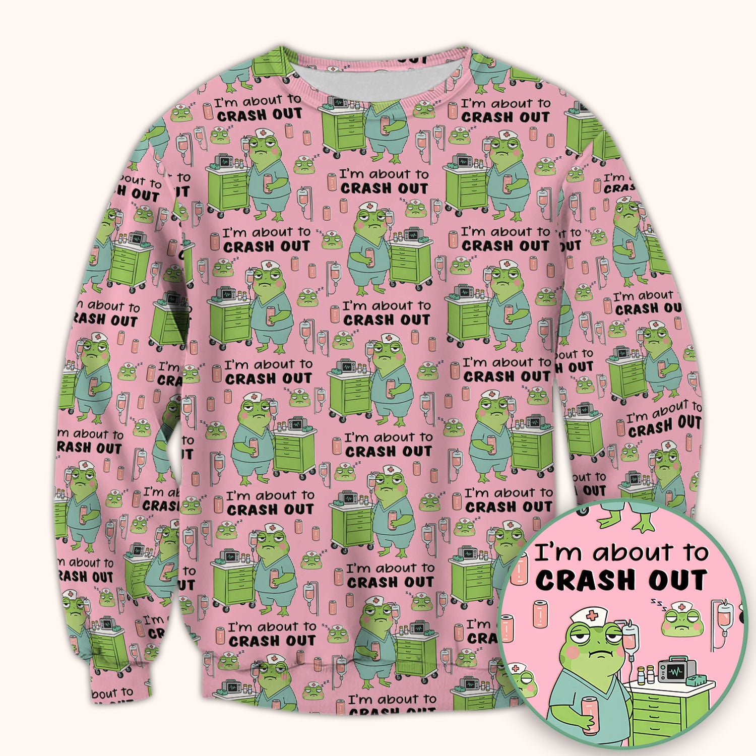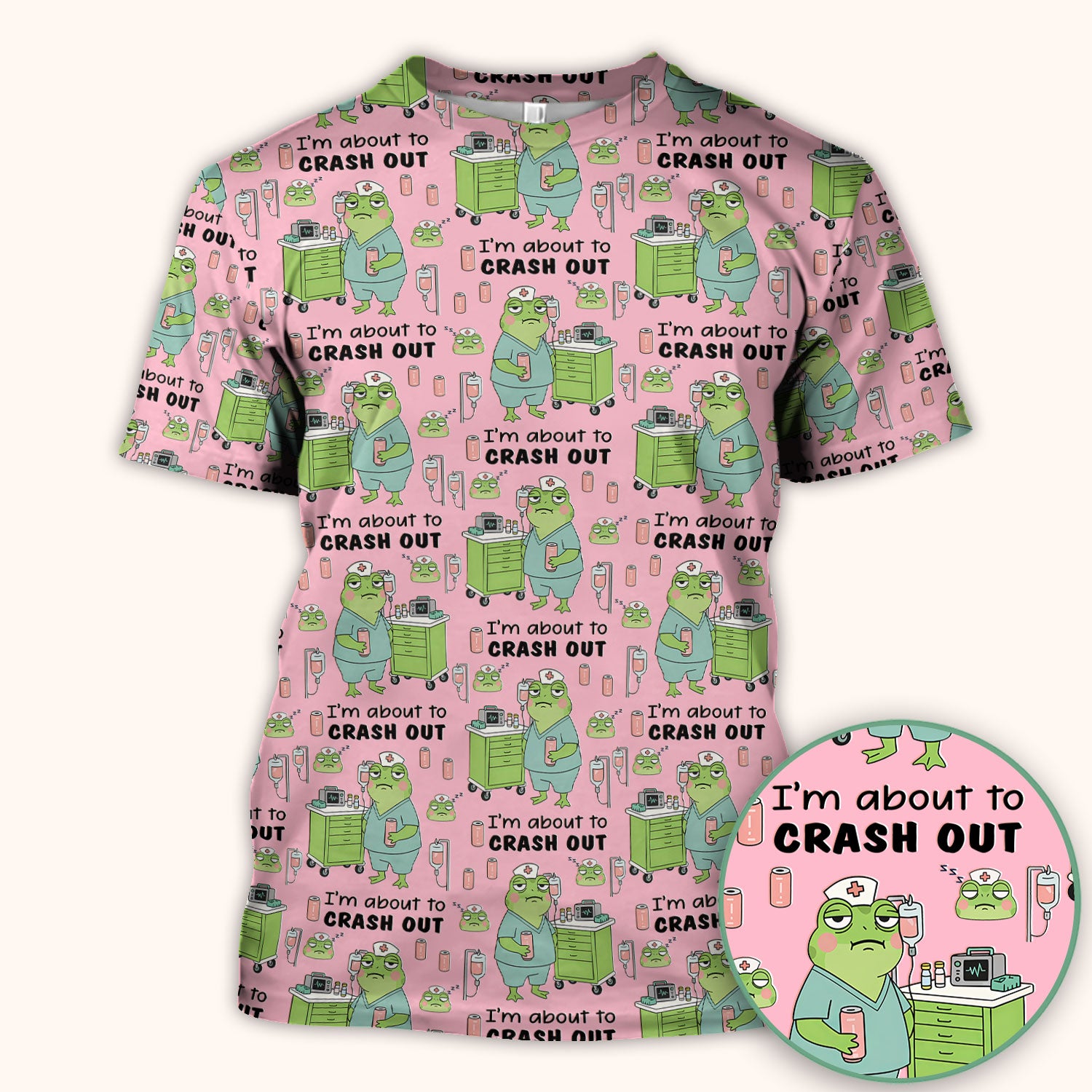 Funny Frog Pattern Nurse Scrub Top, I’m About to Crash Out Nurse Shirt, Breathable Fabrics Nursing Uniform