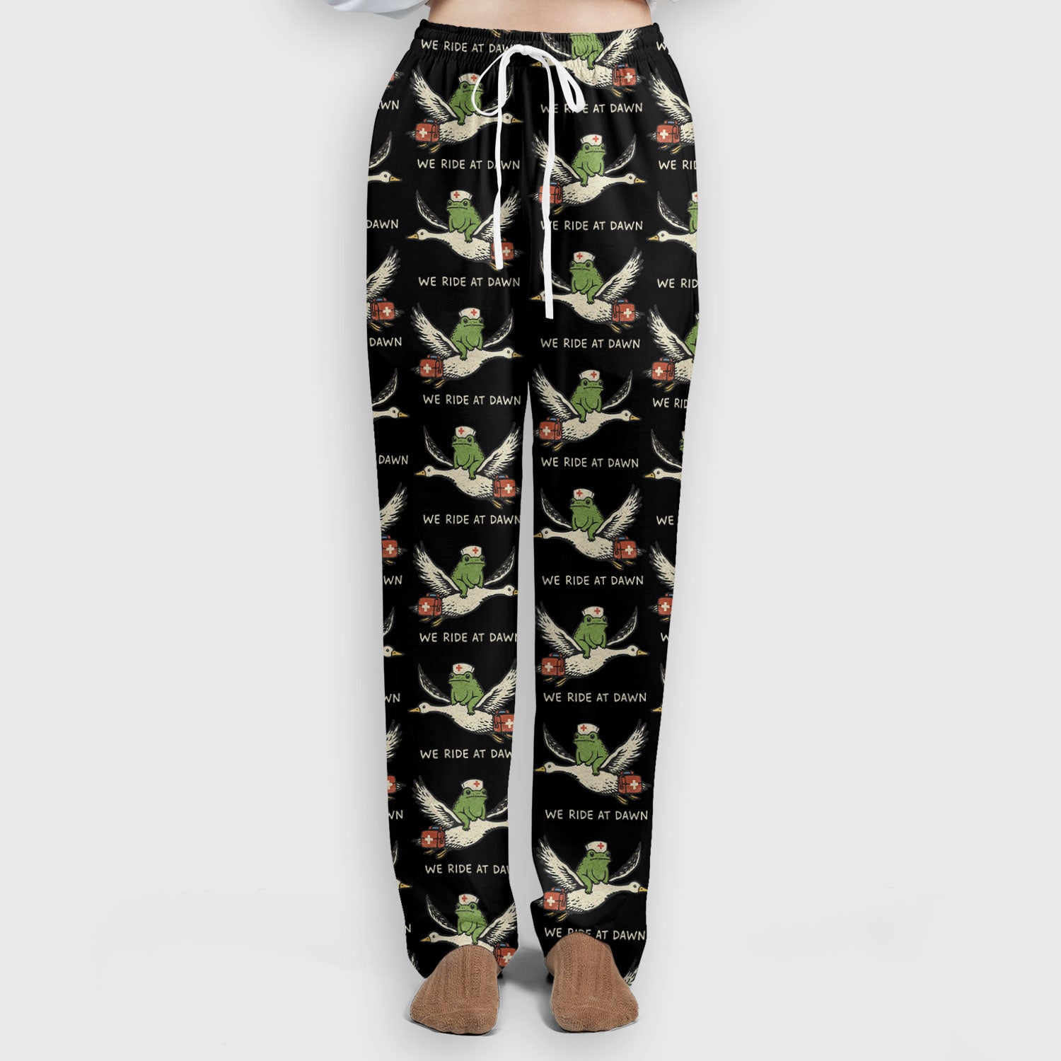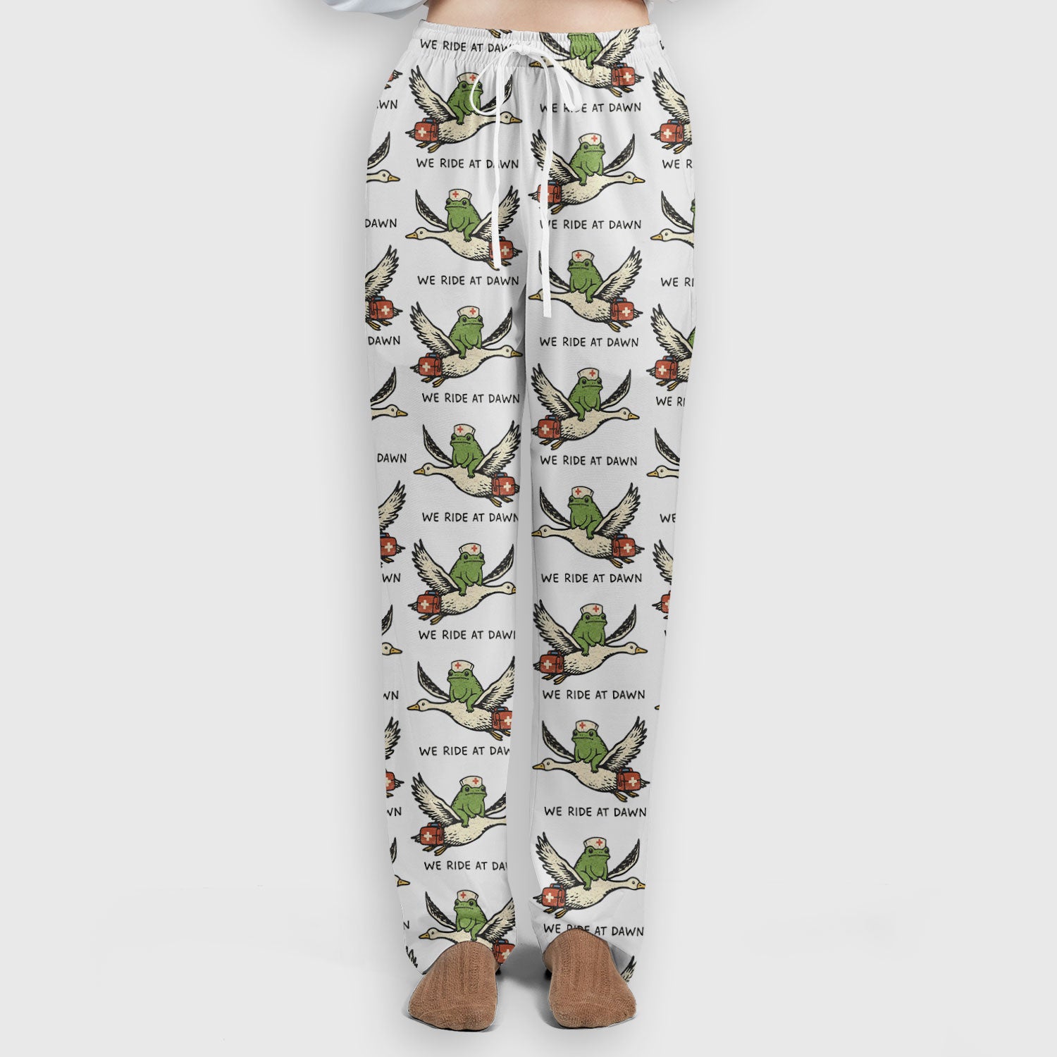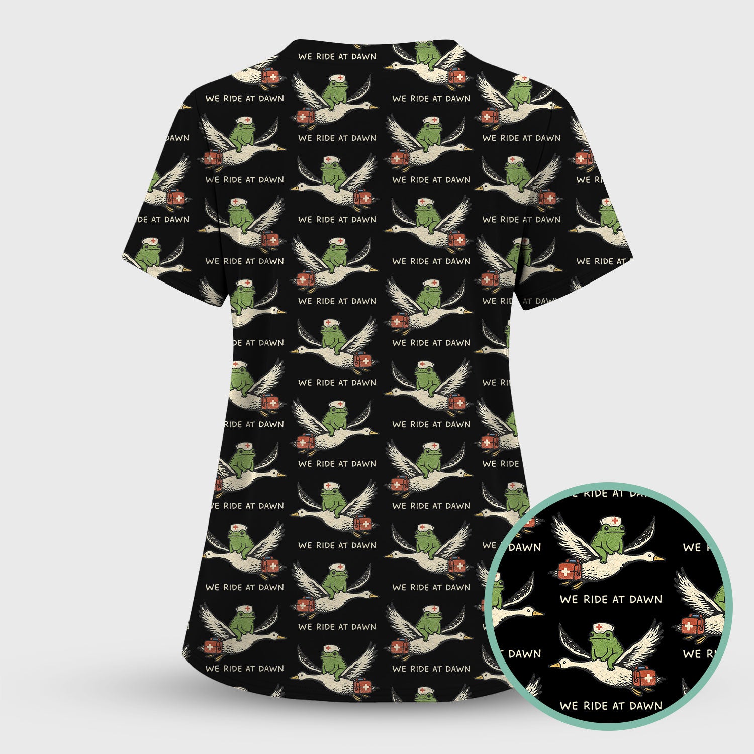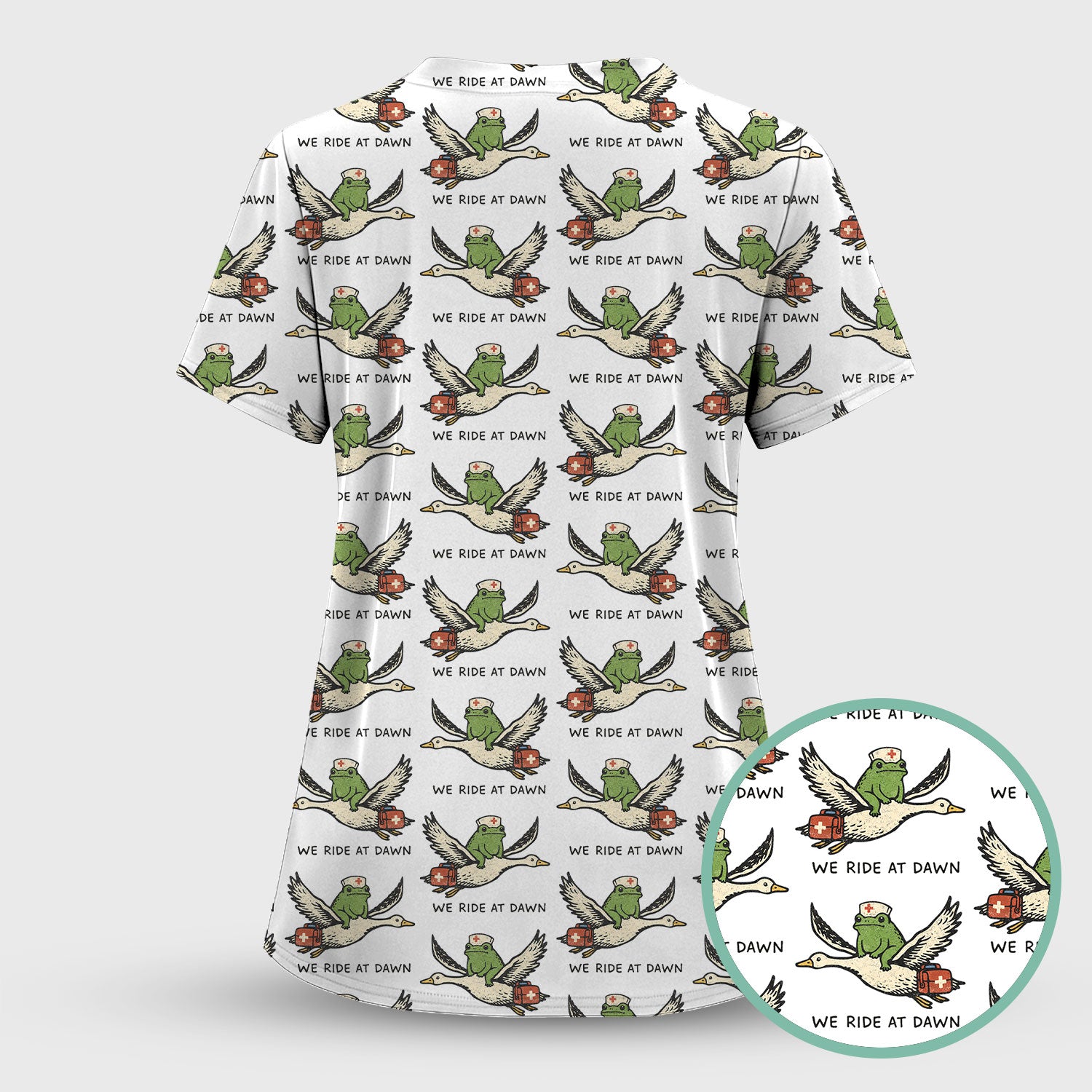 Funny Frog Riding Goose Nurse Pattern Scrub Set, Nurse Uniform Scrubs Set