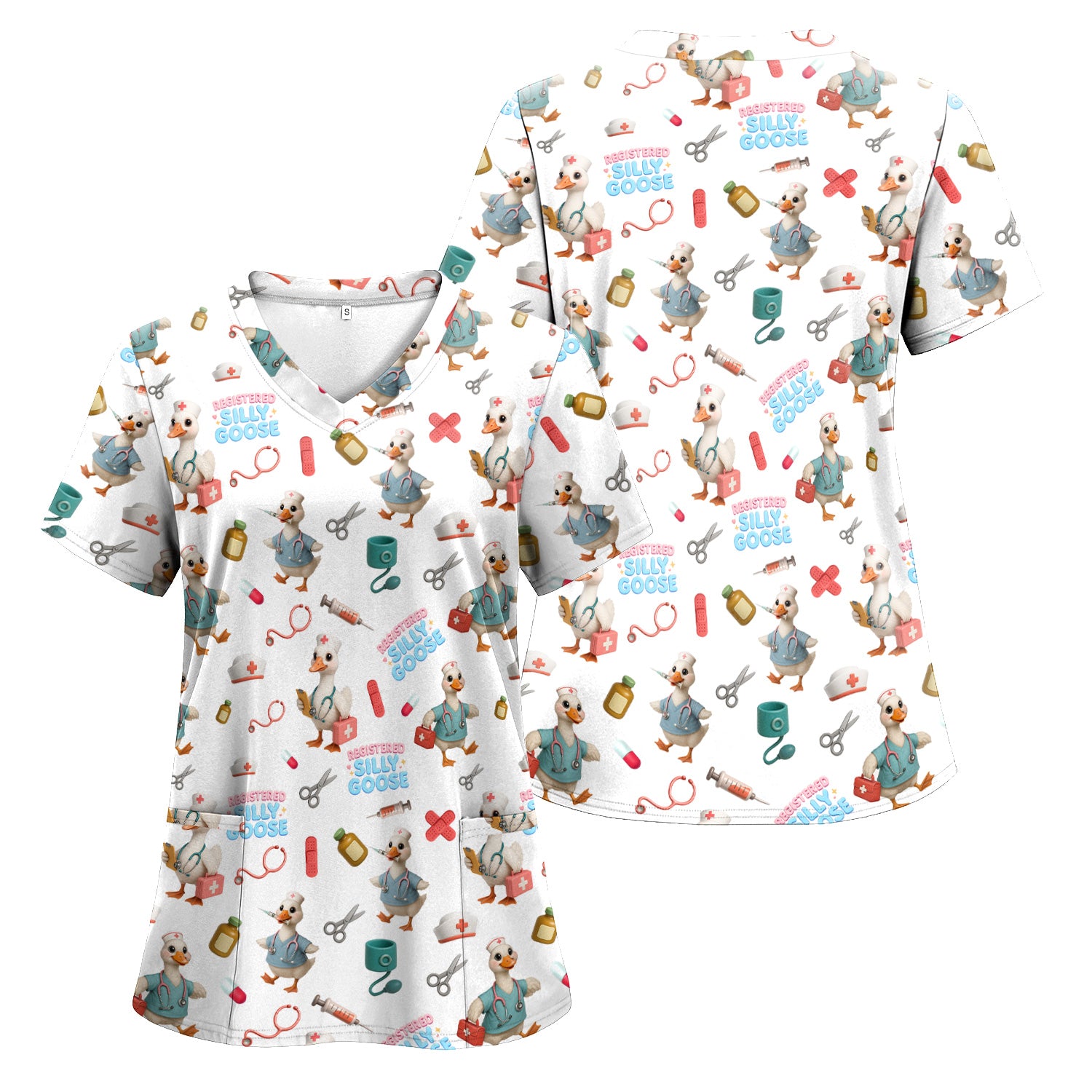 Funny Goose Nurse Scrubs for Women - Registered Silly Goose Top - Cute Medical Uniform for RN CNA LPN