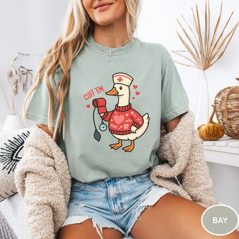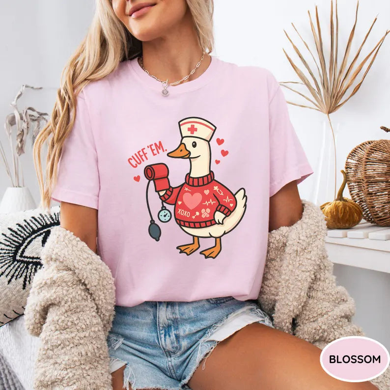 Funny Goose Nurse Shirt, Cuff Em Nurse Practitioner Valentine’s Day Tee, RN Gift