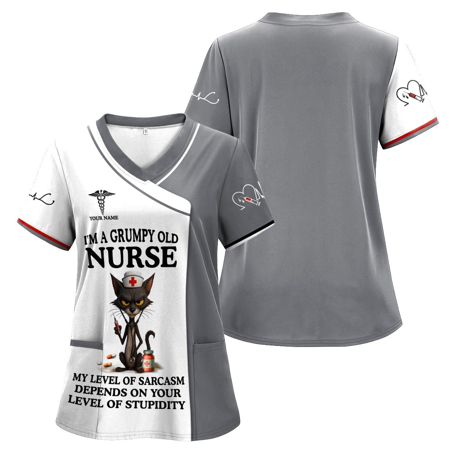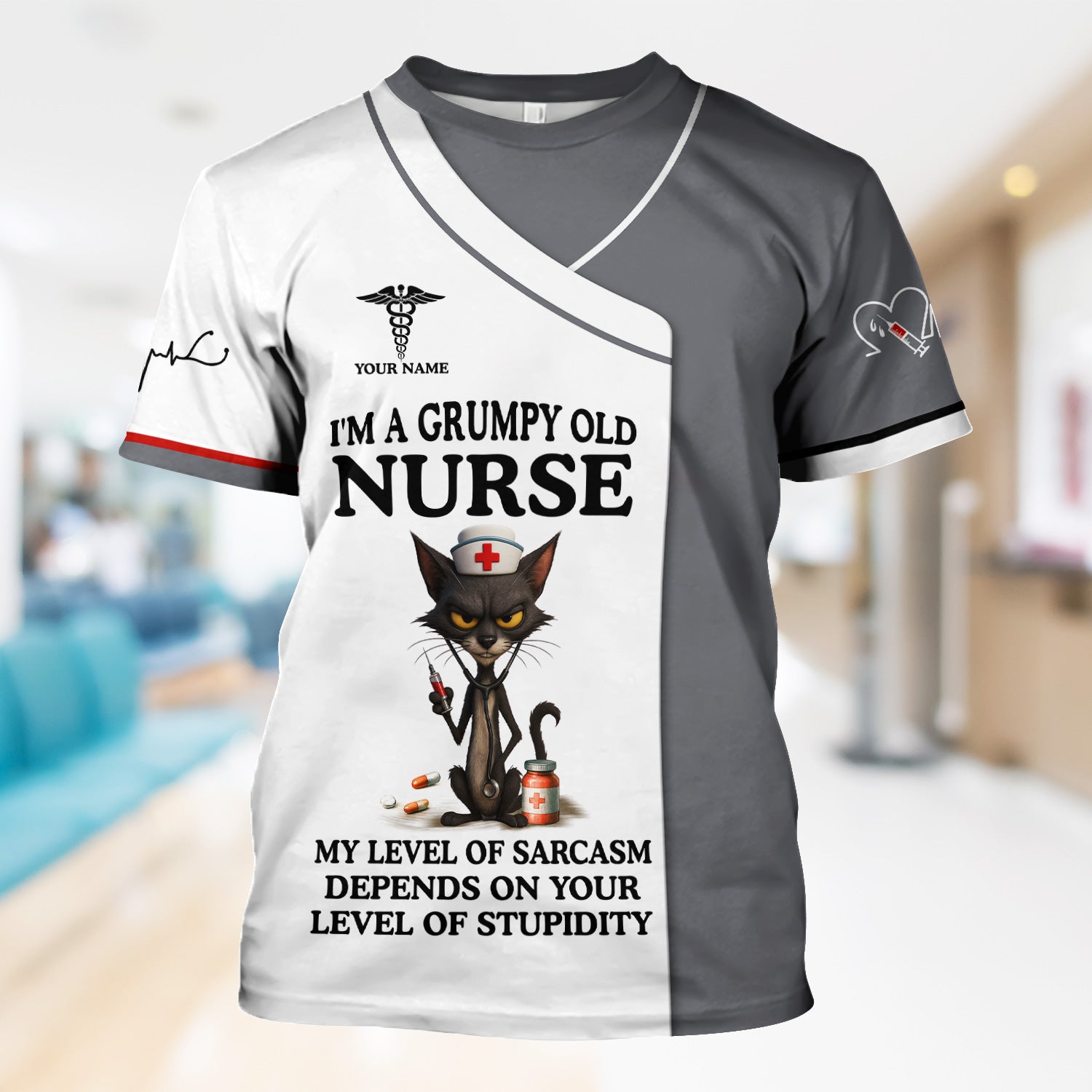 Funny Grumpy Old Nurse Shirt - Sarcastic Black Cat Humor for RN LPN CNA - Custom Name Gift for Nursing Staff Healthcare Workers
