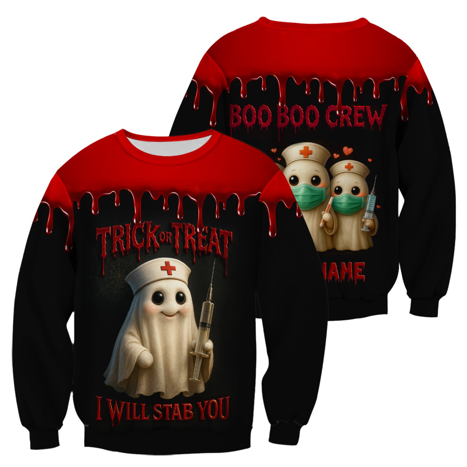 Funny Halloween Nurse T-shirt - Trick or Treat Boo Boo Crew with Syringe Design - Customizable Gift for Healthcare Workers, RN, LPN