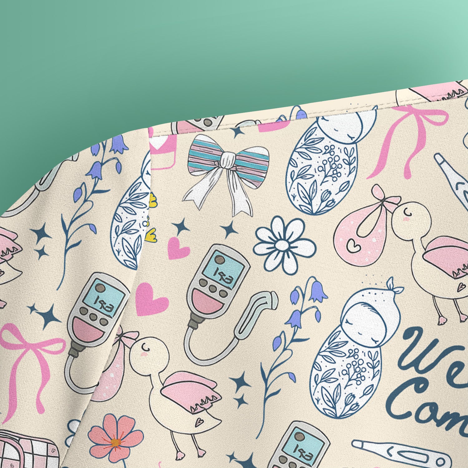 Funny NICU Nurse Tee - Cute Baby Feet & Floral Stork Pattern Graphic - Gift for Women RN LPN