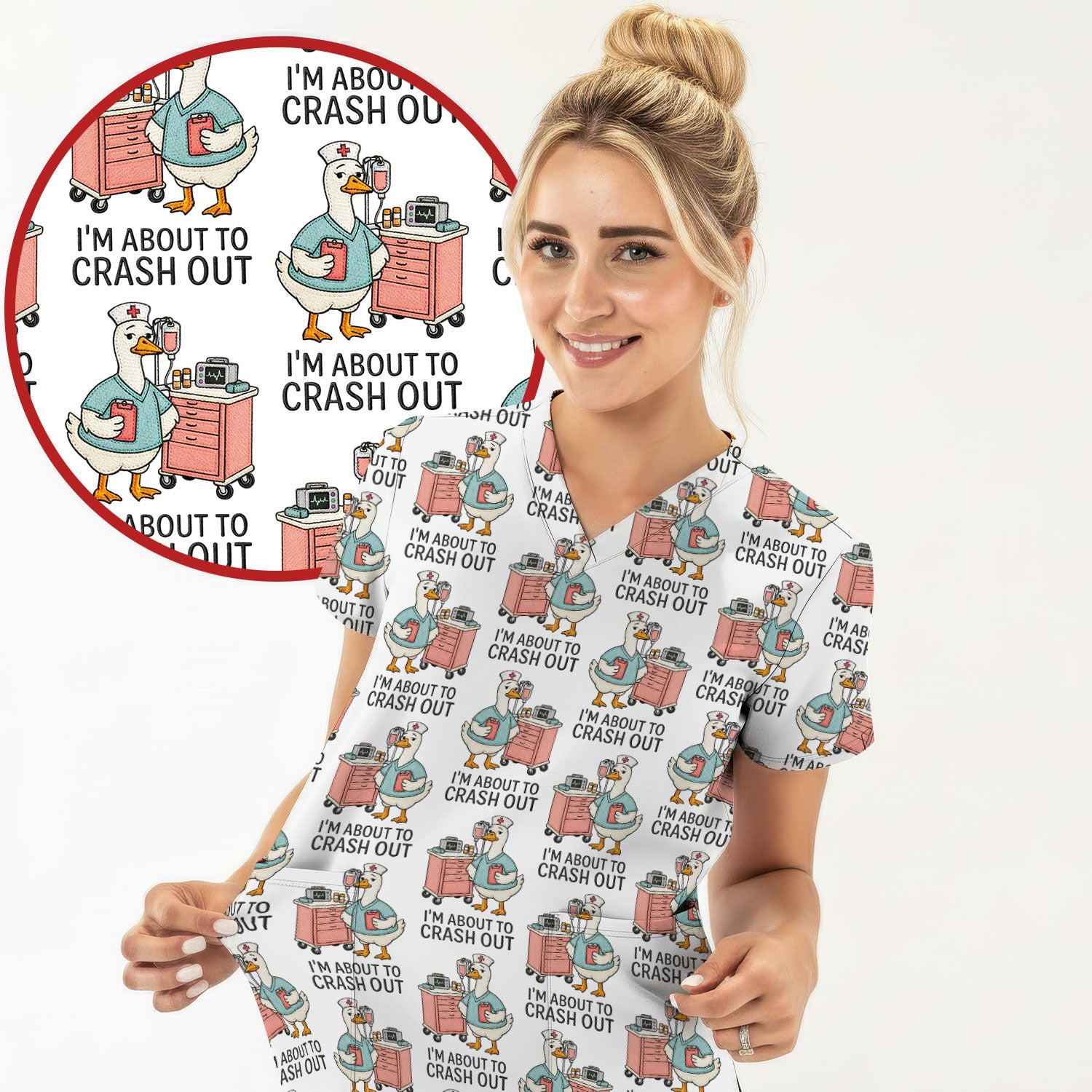 Funny Nurse Goose Crash Out Pattern Scrub Top, Comfortable Scrubs for Nurses