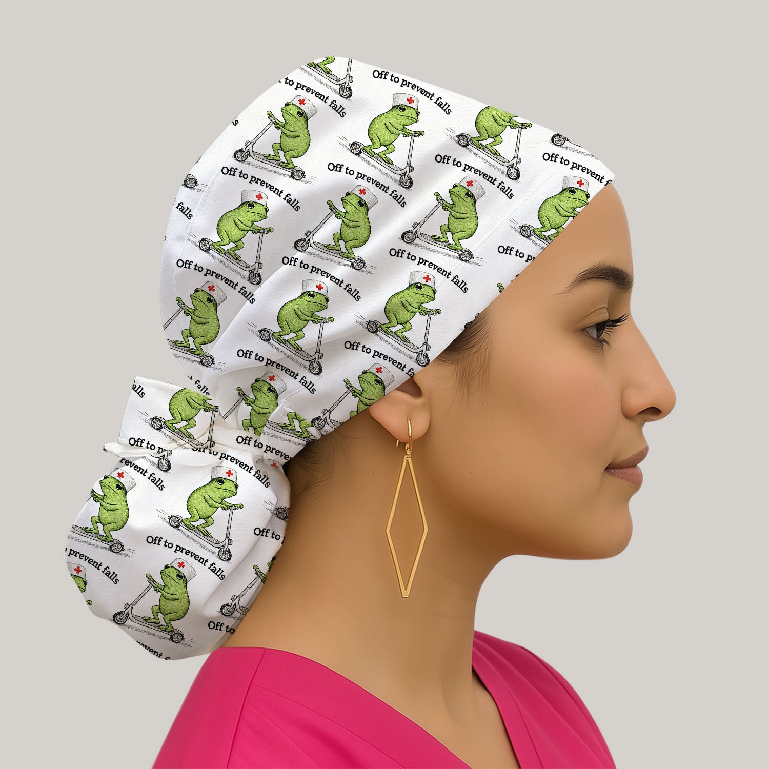 Ponytail Scrub Cap for Women - Cute Nurse Print