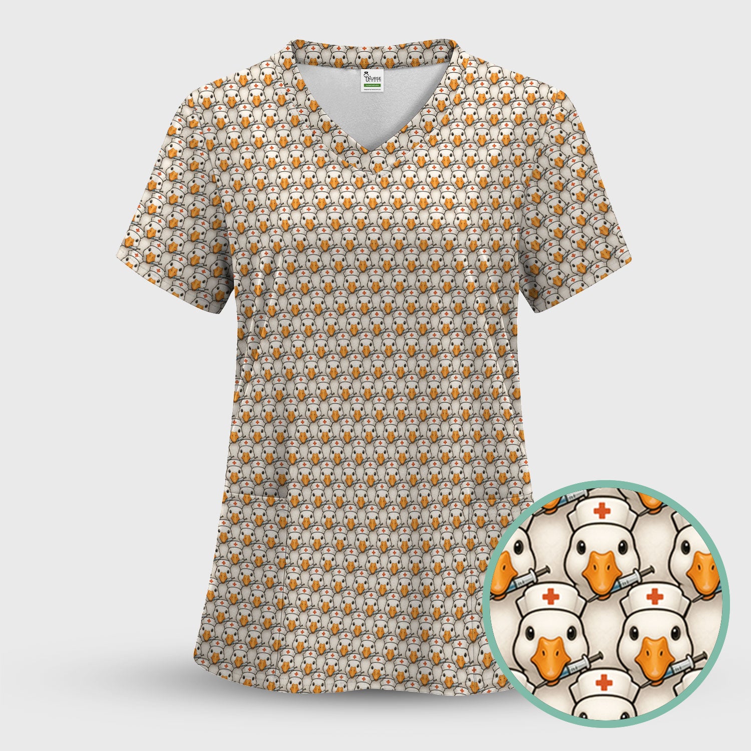 Funny Nurse Shirt With Duck Pattern - Cartoon Animal Nursing Design - Gift for Healthcare Workers RN LPN