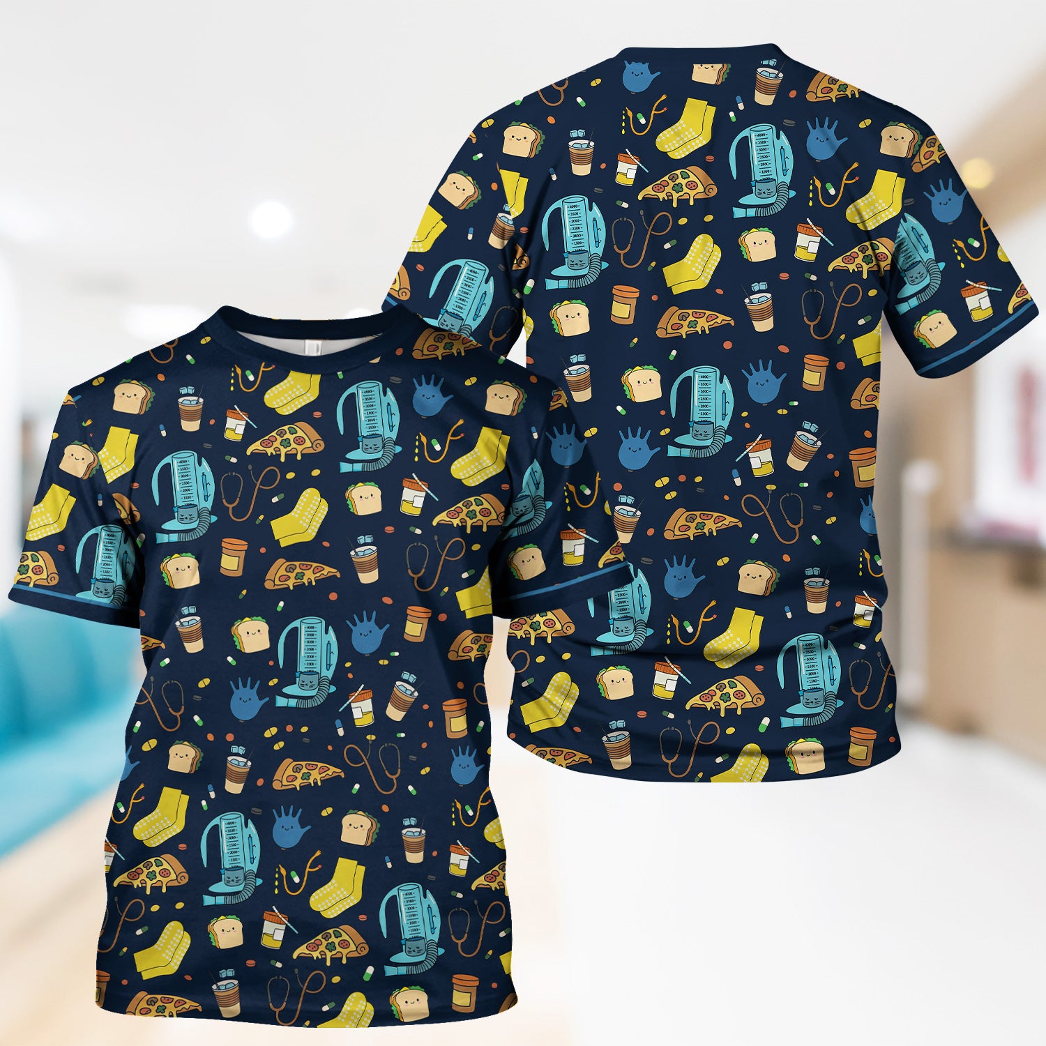 Funny Nurse Shirt with Medical Icons - Cute Cartoon Graphic Tee for Women - Gift for RN, CNA, Healthcare Worker