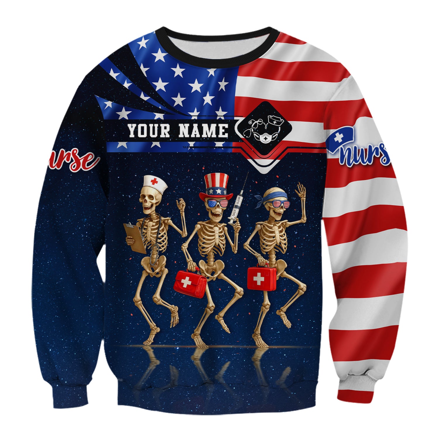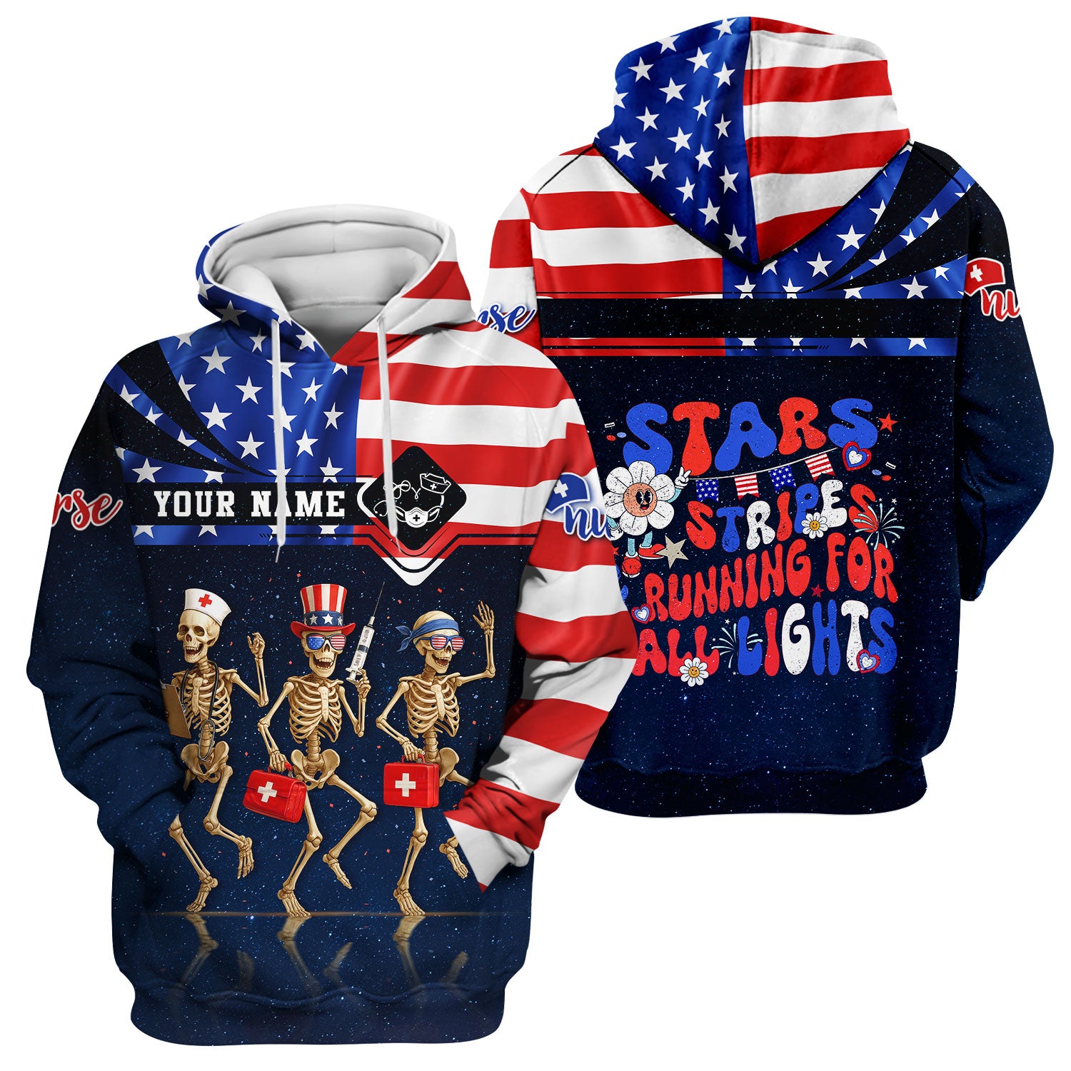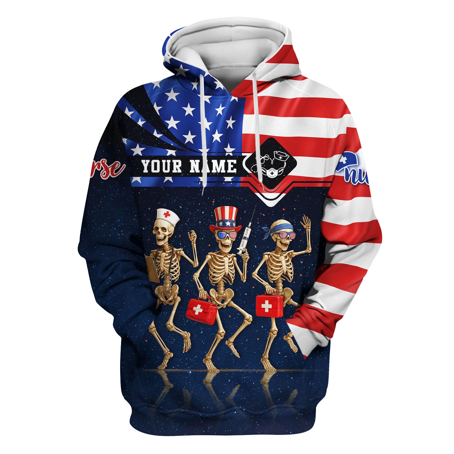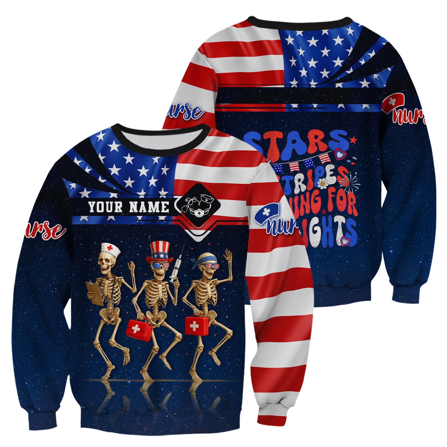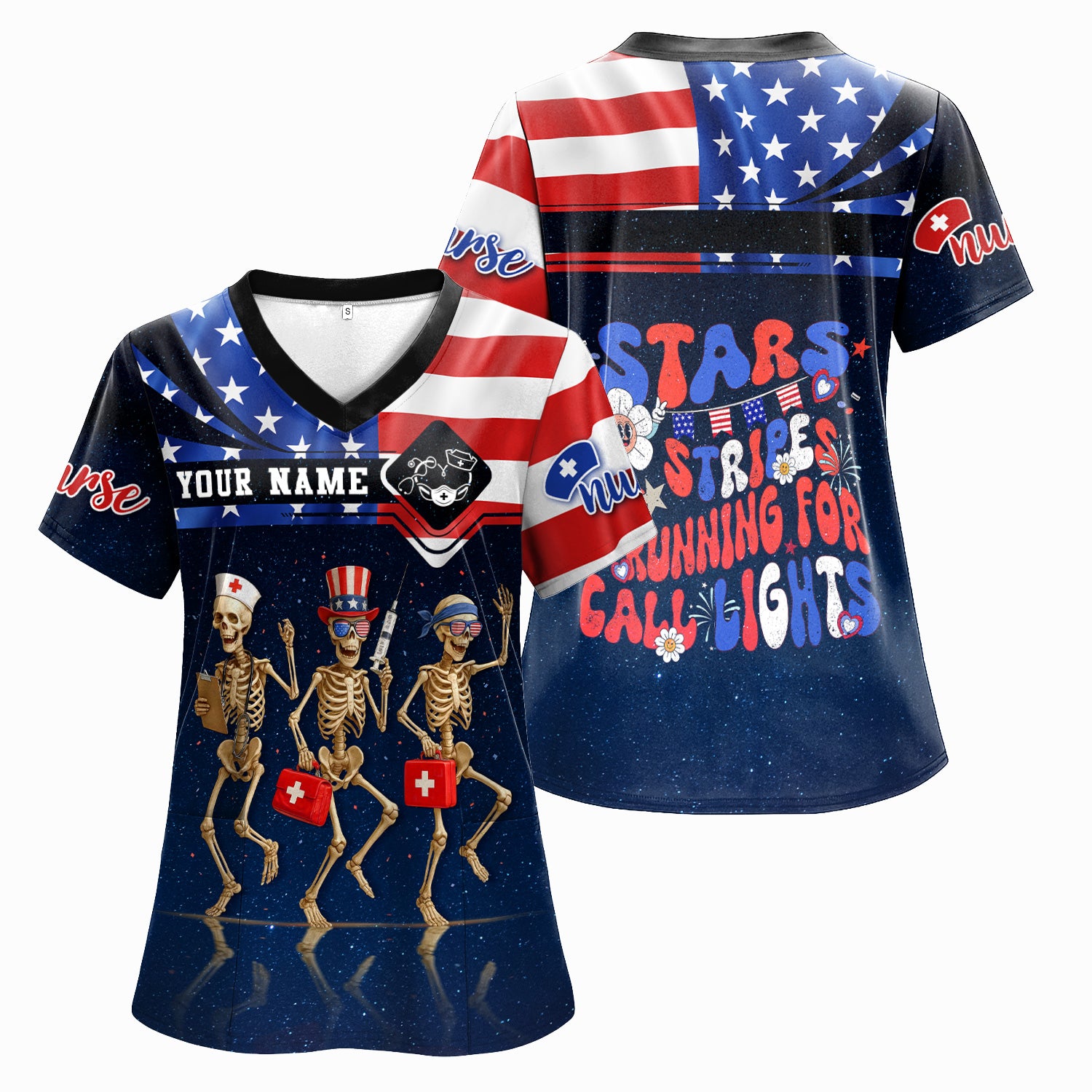 Funny Nurse Skeleton Shirt - Personalized 4th of July Scrub Life Tee - Custom Name RN CNA LPN Gift