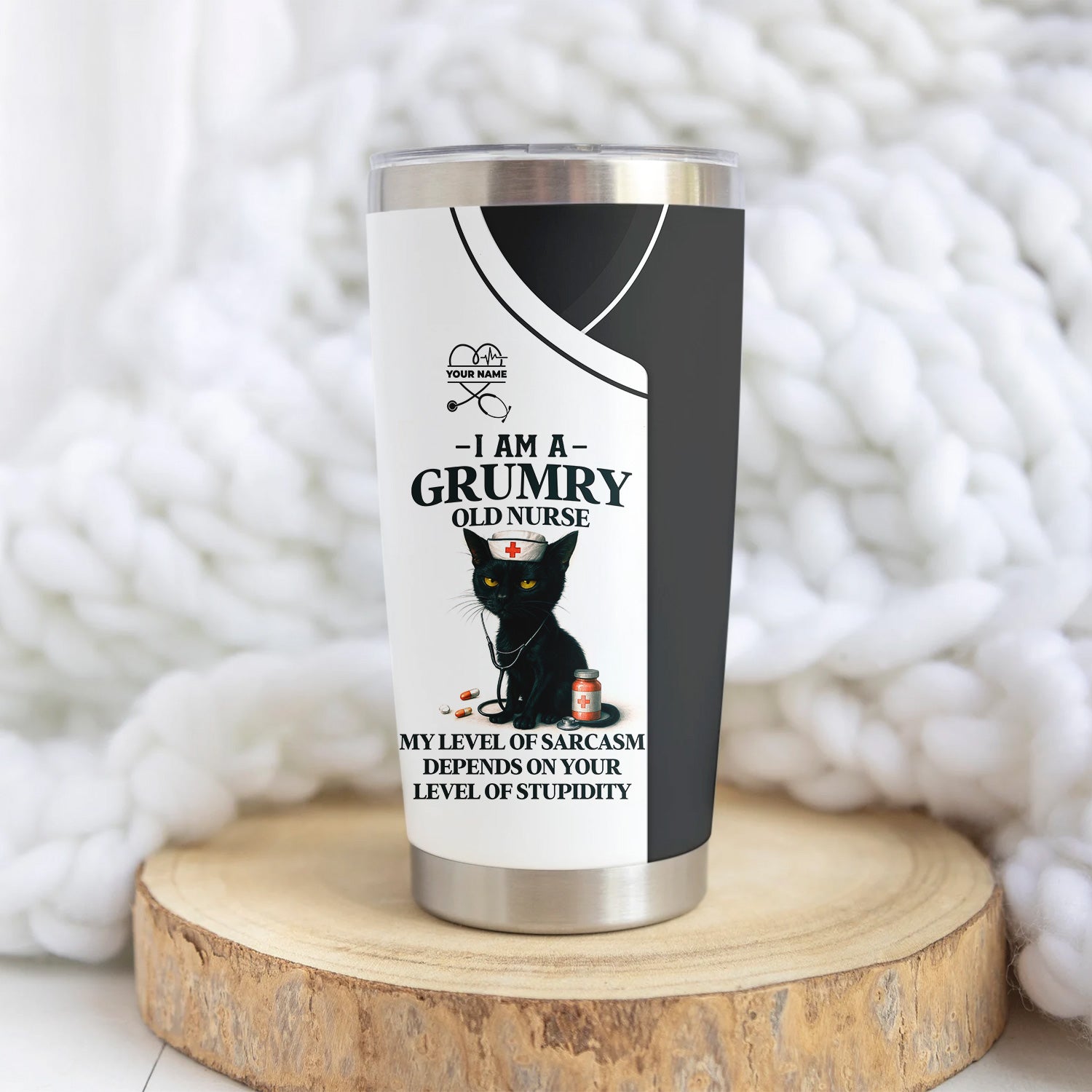 Funny Nurse Tumbler for Grumpy RN - Sarcastic Black Cat Quote Design - Hilarious Gift for CNA LPN Female Healthcare Workers