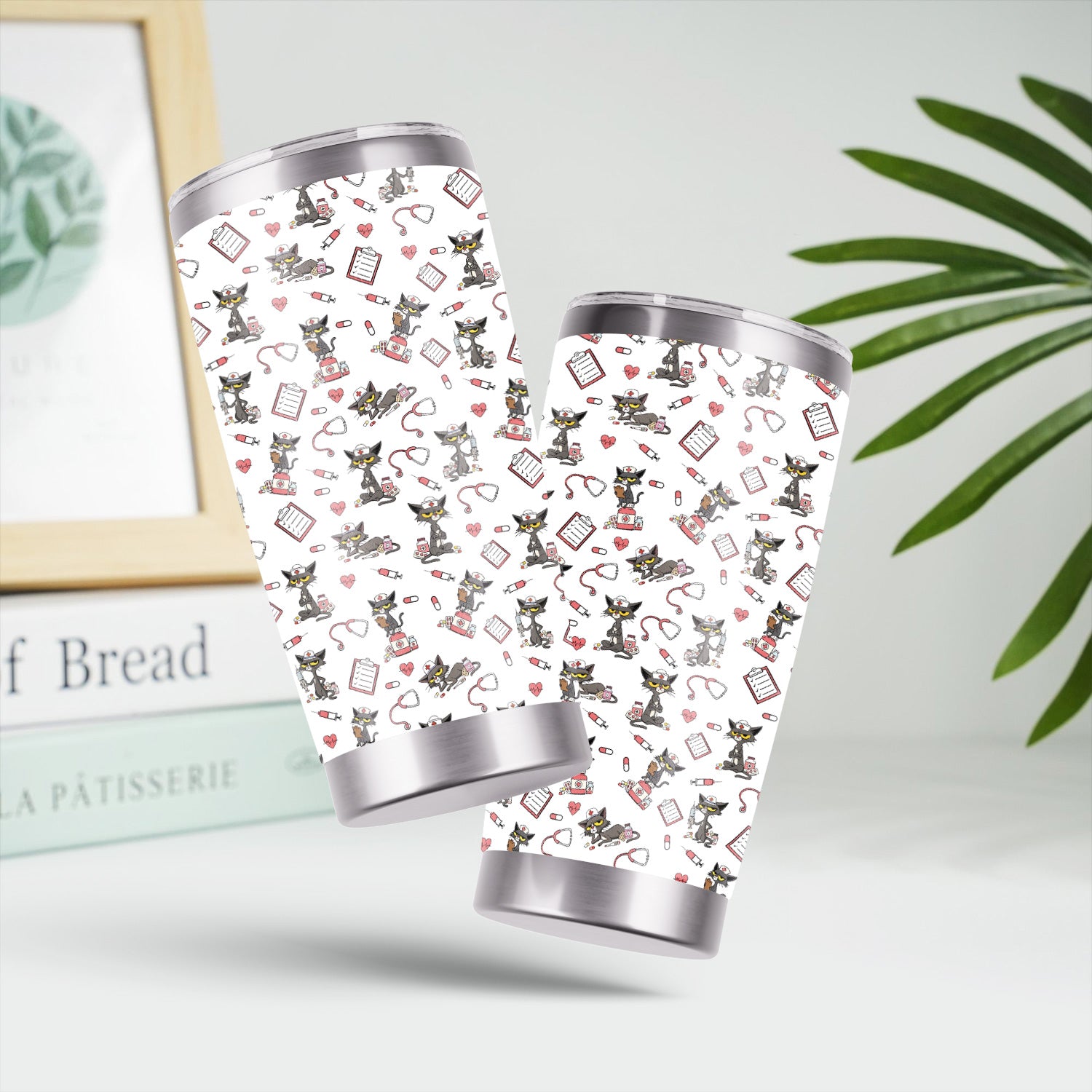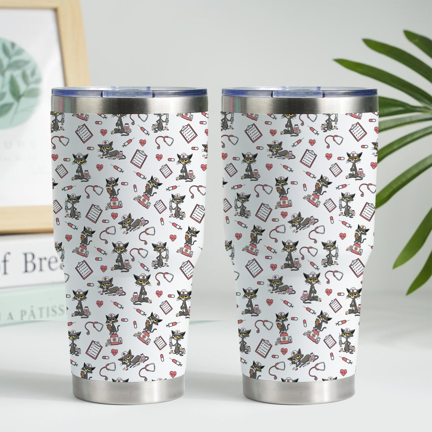 Funny Nurse Tumbler with Black Cat - Personalized 20oz Stainless Steel Cup - Gift for RN, CNA, LPN, Medical Staff