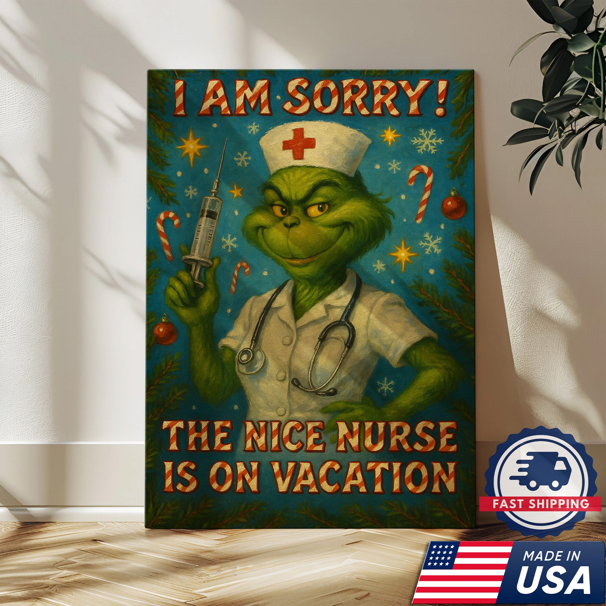 Funny Nurse Wall Art Canvas - Grinch Christmas Quote The Nice Nurse Is On Vacation - Humorous Gift for Nurses Made in USA