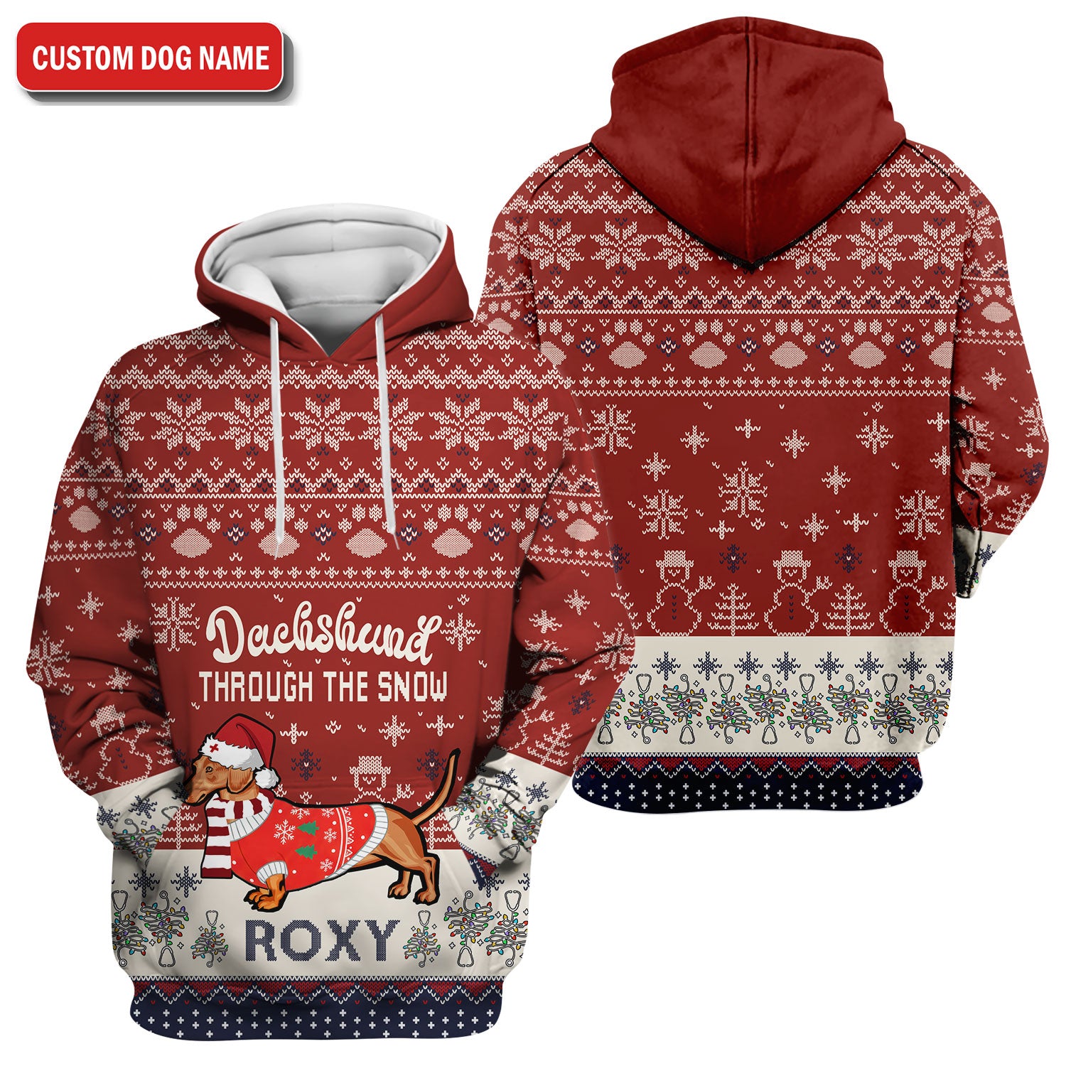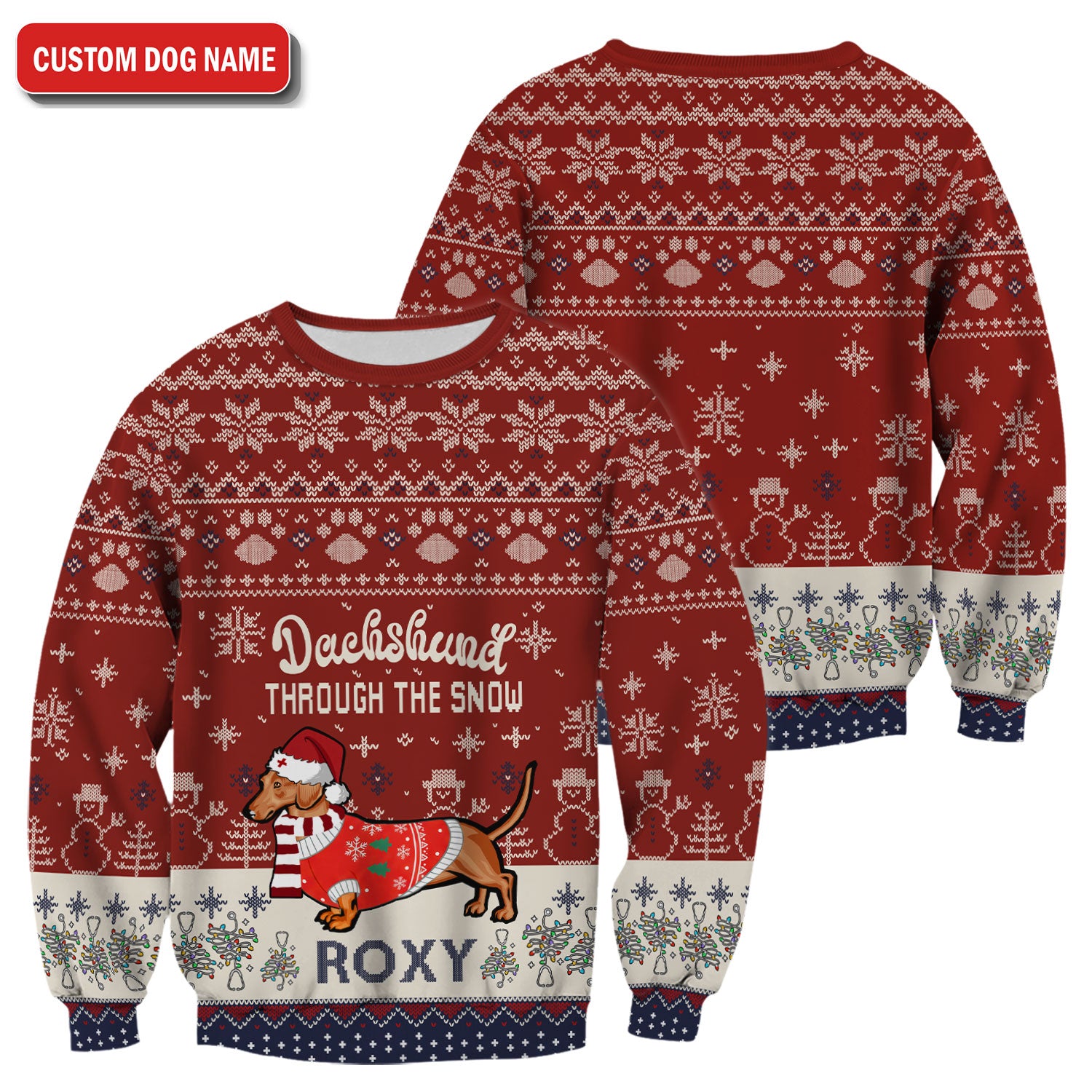Funny Wiener Dog Christmas Ugly Scrub Top - Custom Name Dachshund Through The Snow - Cute Holiday Medical Uniform