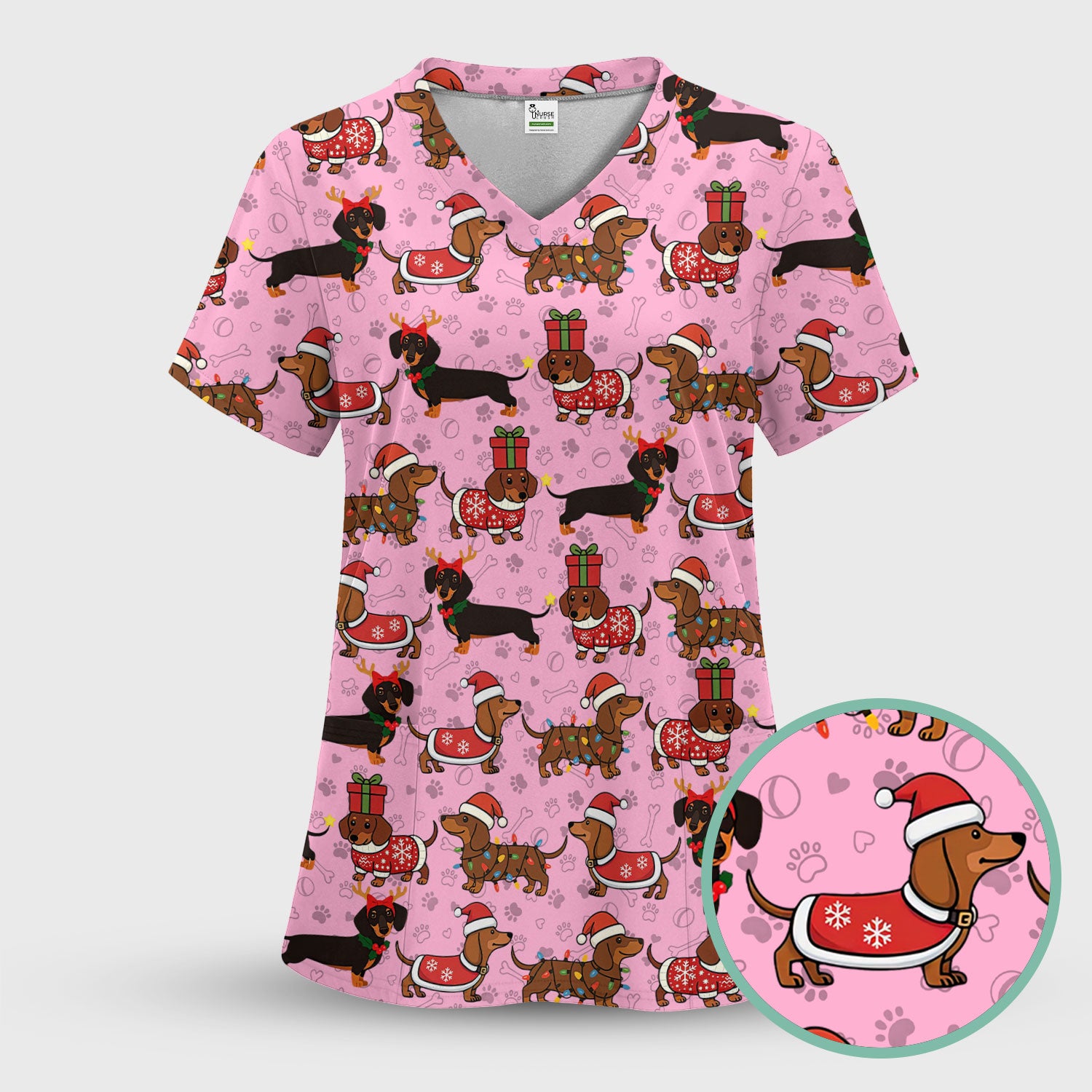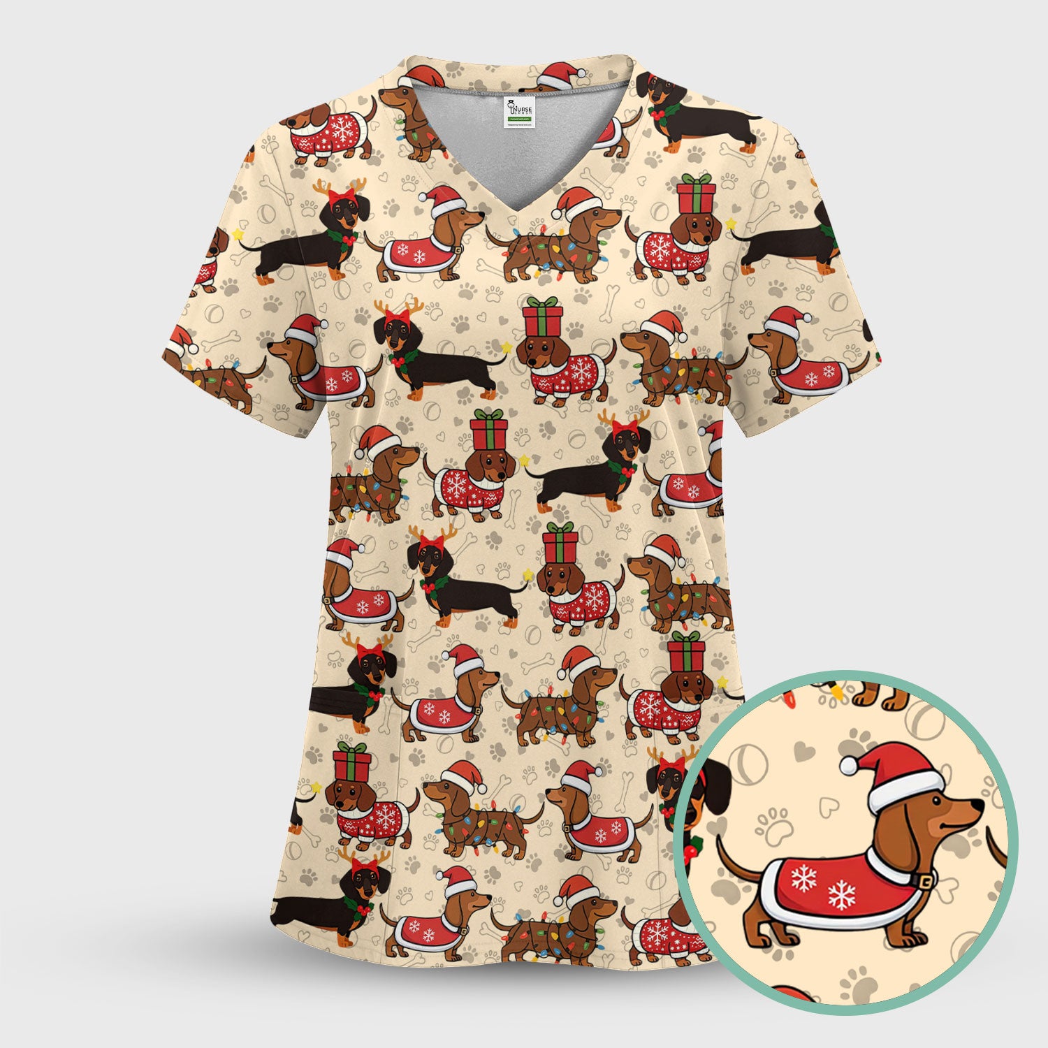 Funny Wiener Dog Scrub Set for Women - Santa's Favourite Nurse Gift - Funny Medical Uniform for RN CNA LPN