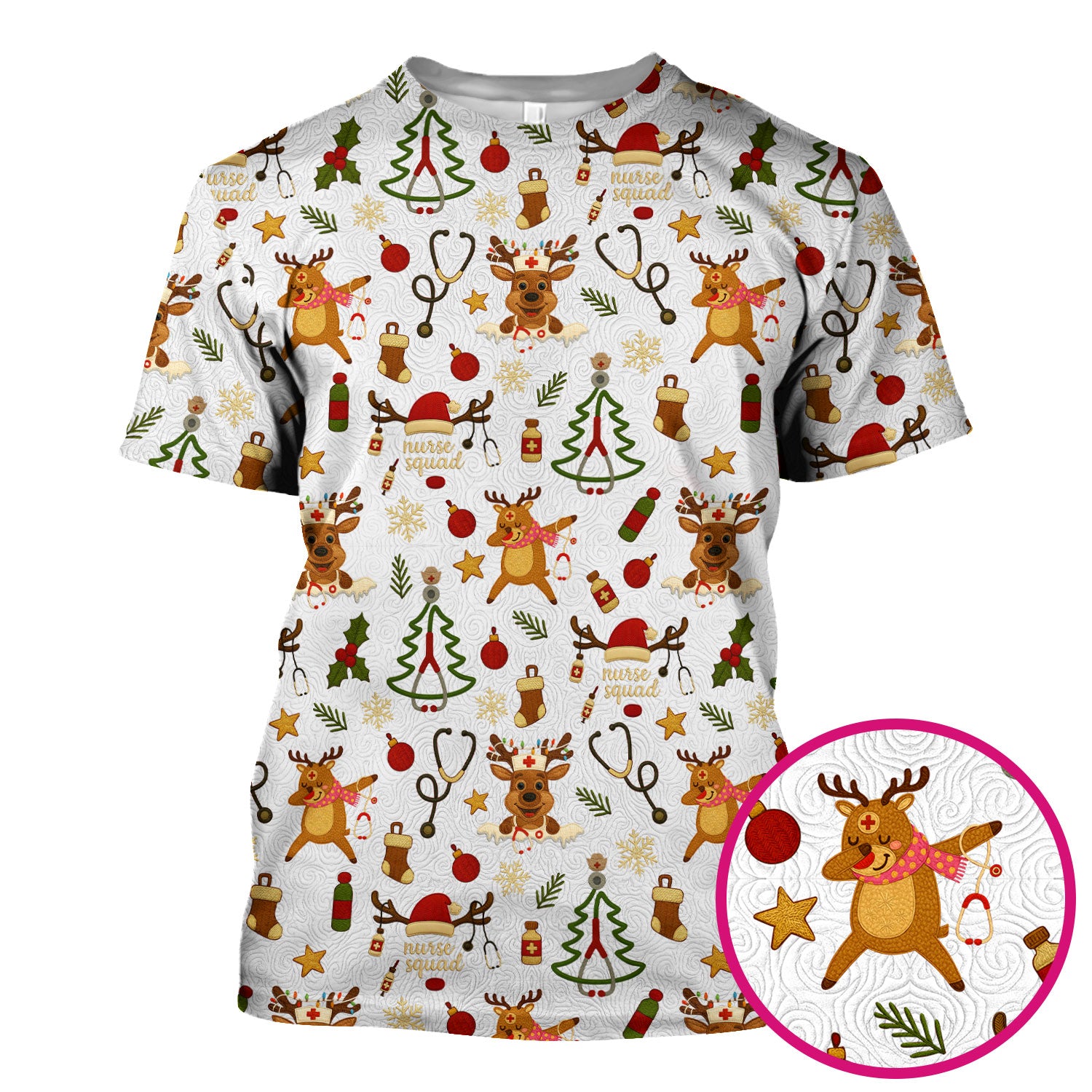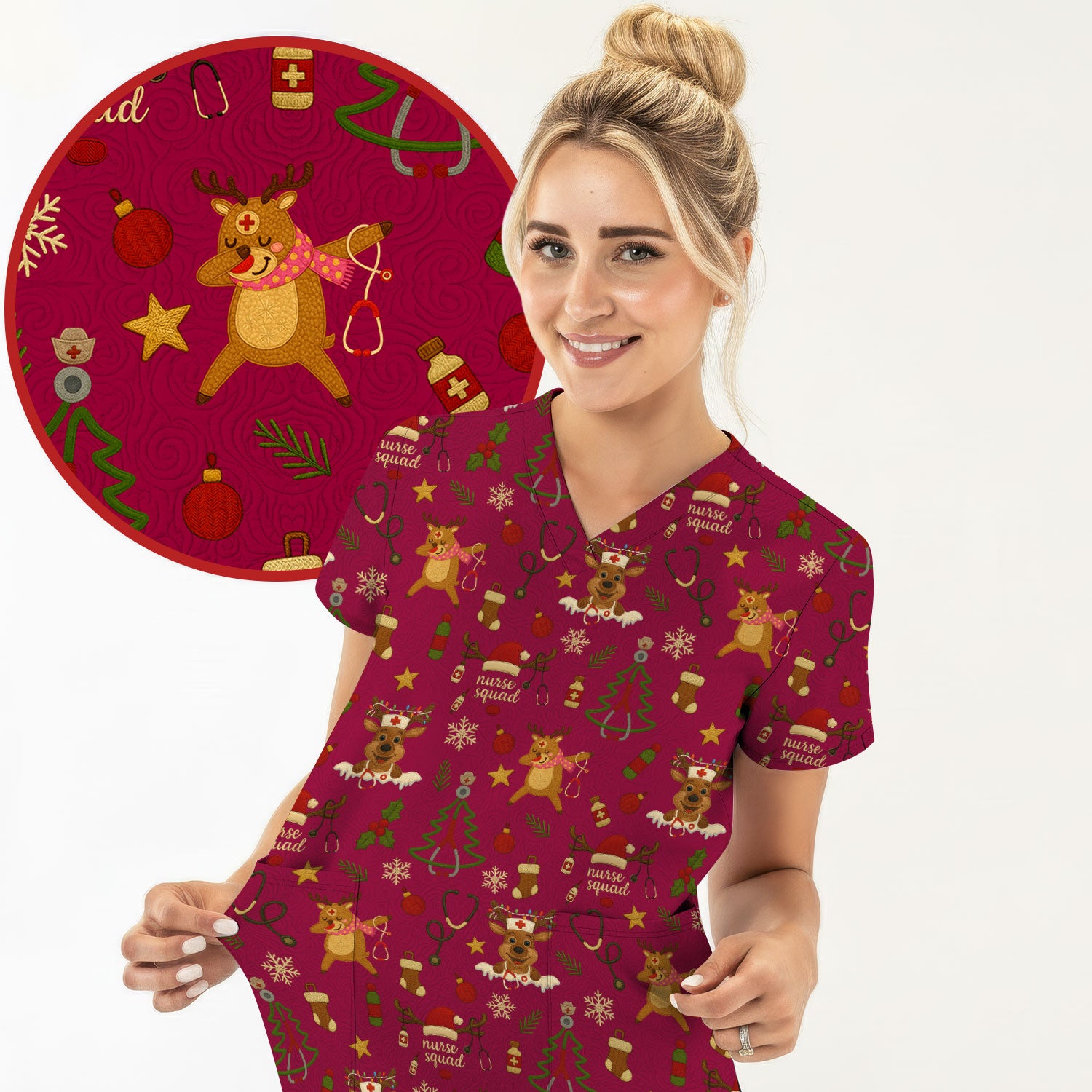Funny Xmas Scrub Shirt - Cute Reindeer Holiday Scrub Top - Christmas Medical Scrubs Gift for Women CNA RN Doctor Nurse Tech Staff Hospital Team