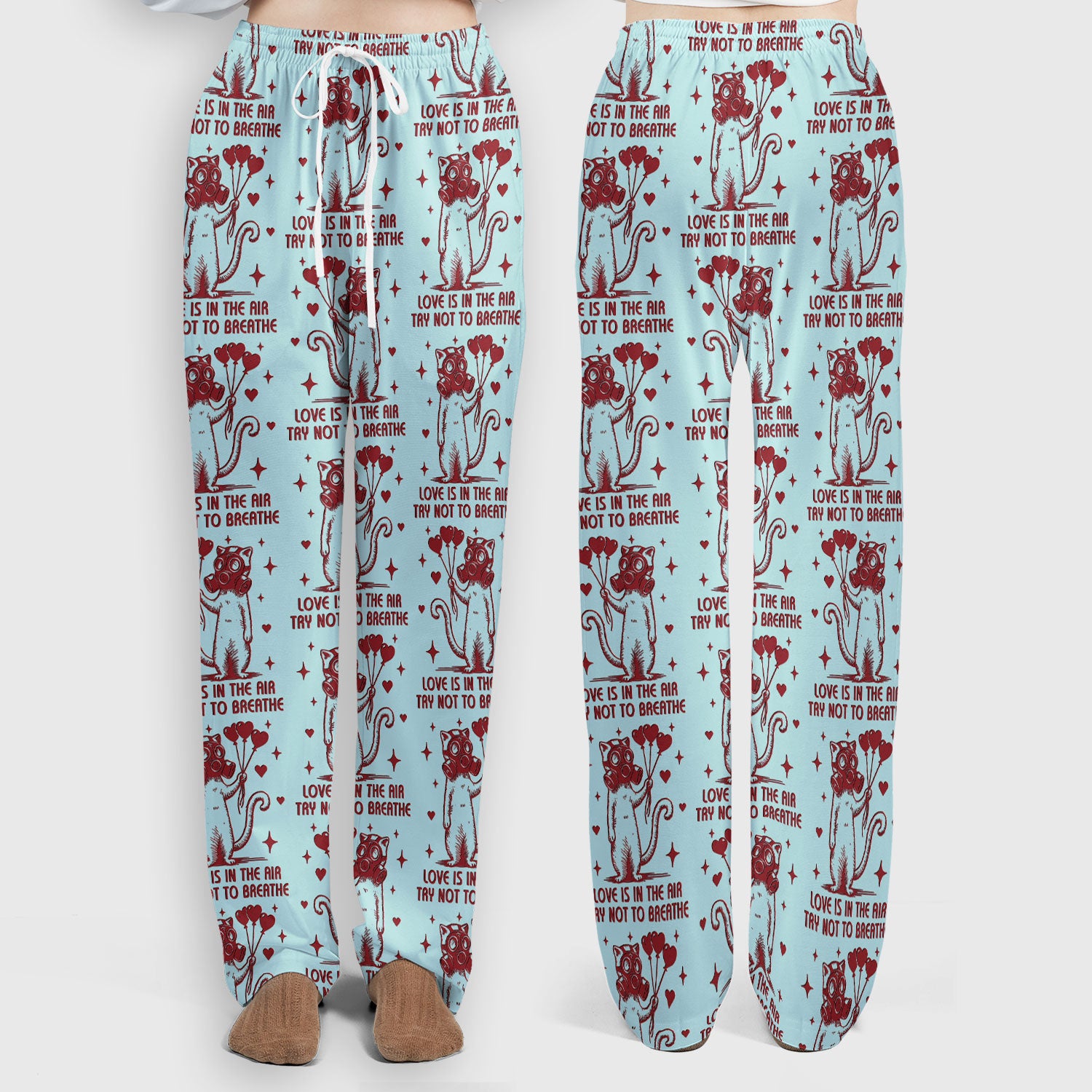 Gas Mask Cat Heart Balloon Valentine Print Scrub Set, Breathable Med Uniform