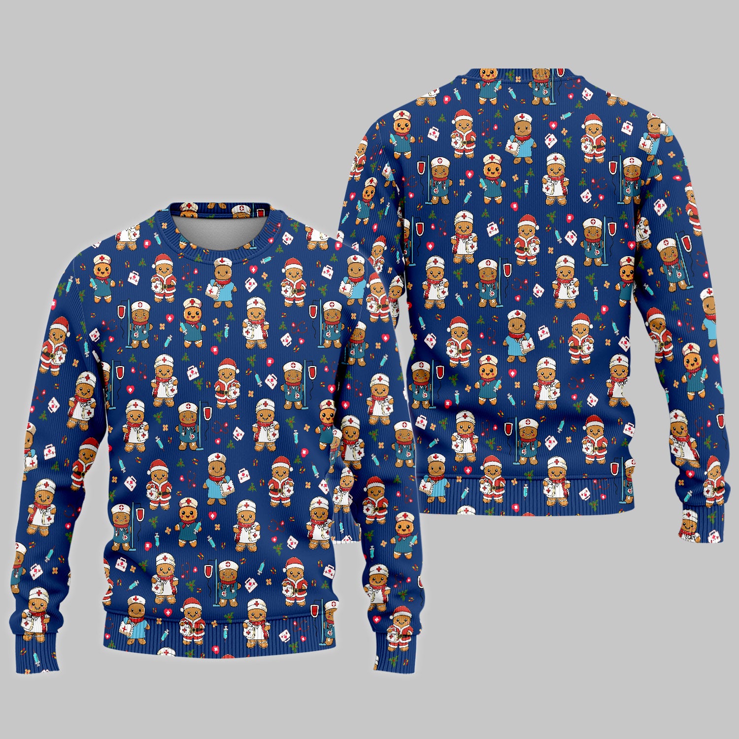 Gingerbread Nurse Scrub Pants - Santa’s Favorite Nurse Holiday Gift - Medical Uniform Set for RN LPN CNA - Funny Xmas Ugly Sweater