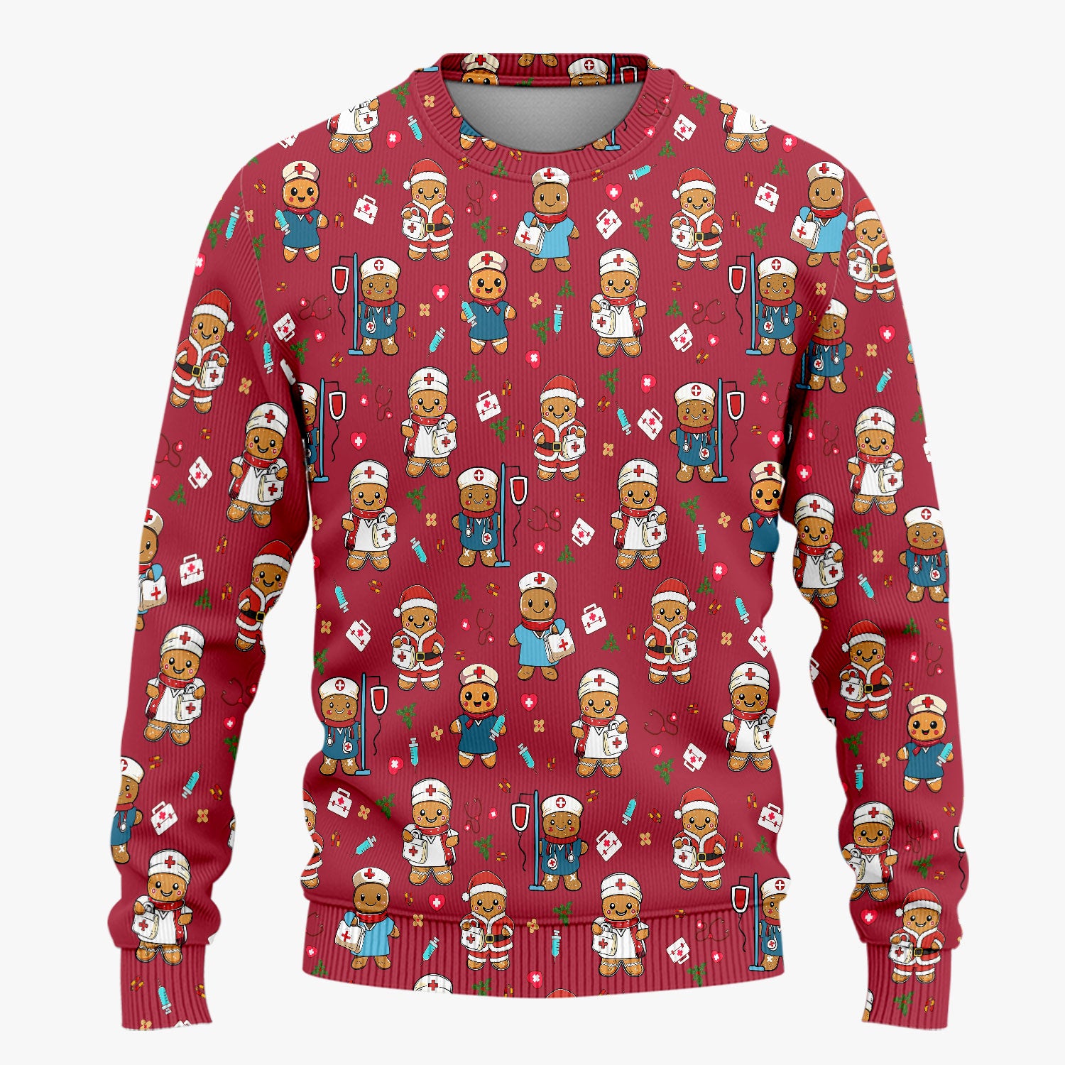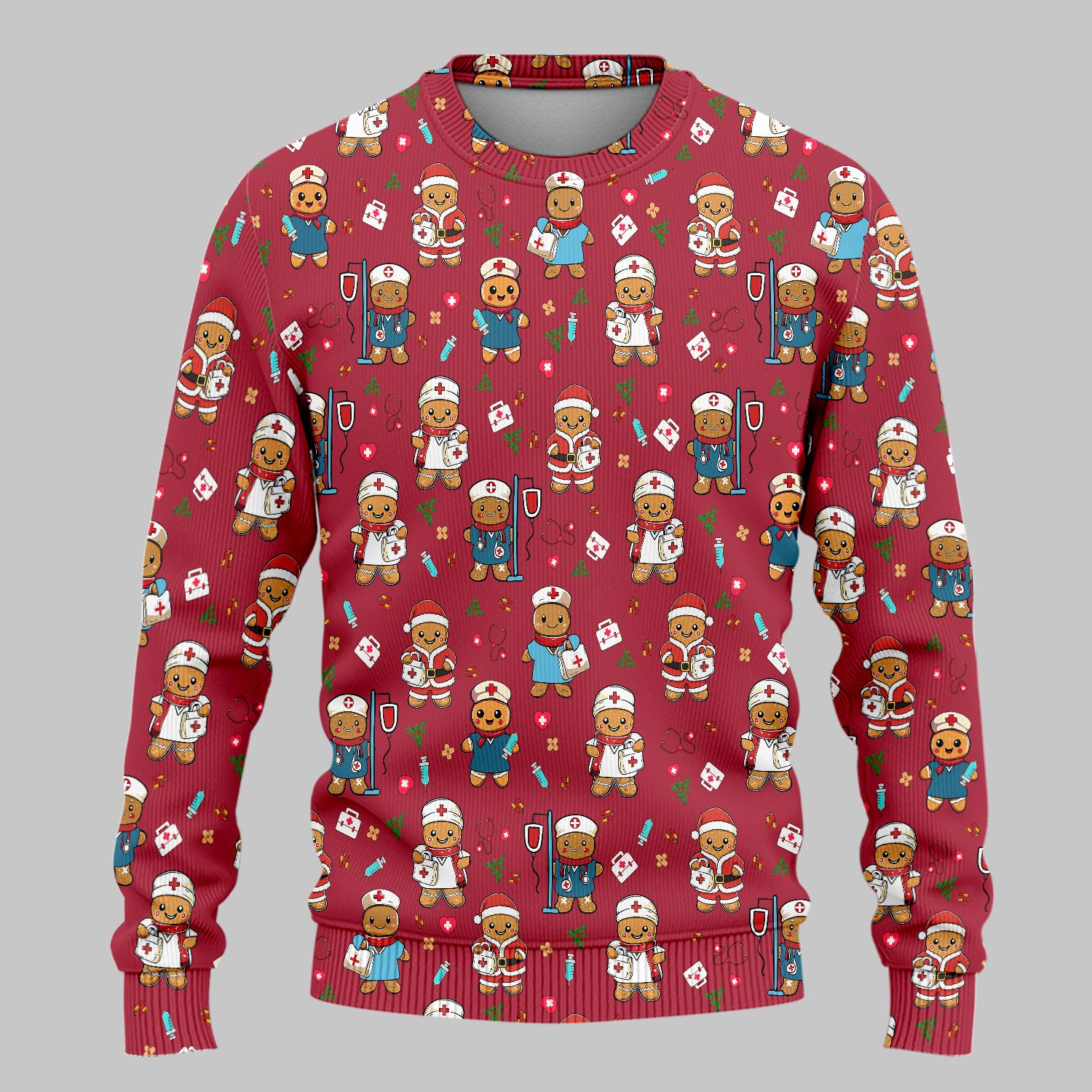Gingerbread with Santa Nurse Scrub Set - Santa’s Favorite Nurse Holiday Gift - Medical Uniform for RN LPN CNA - Funny Xmas Ugly Sweater