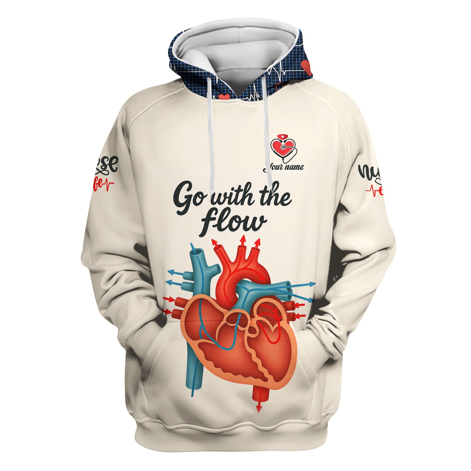 Go With The Flow Nurse Medical Scrub Shirt - Custom Funny Heart Anatomy Design for RN LPN CNA - Gift for Healthcare Workers