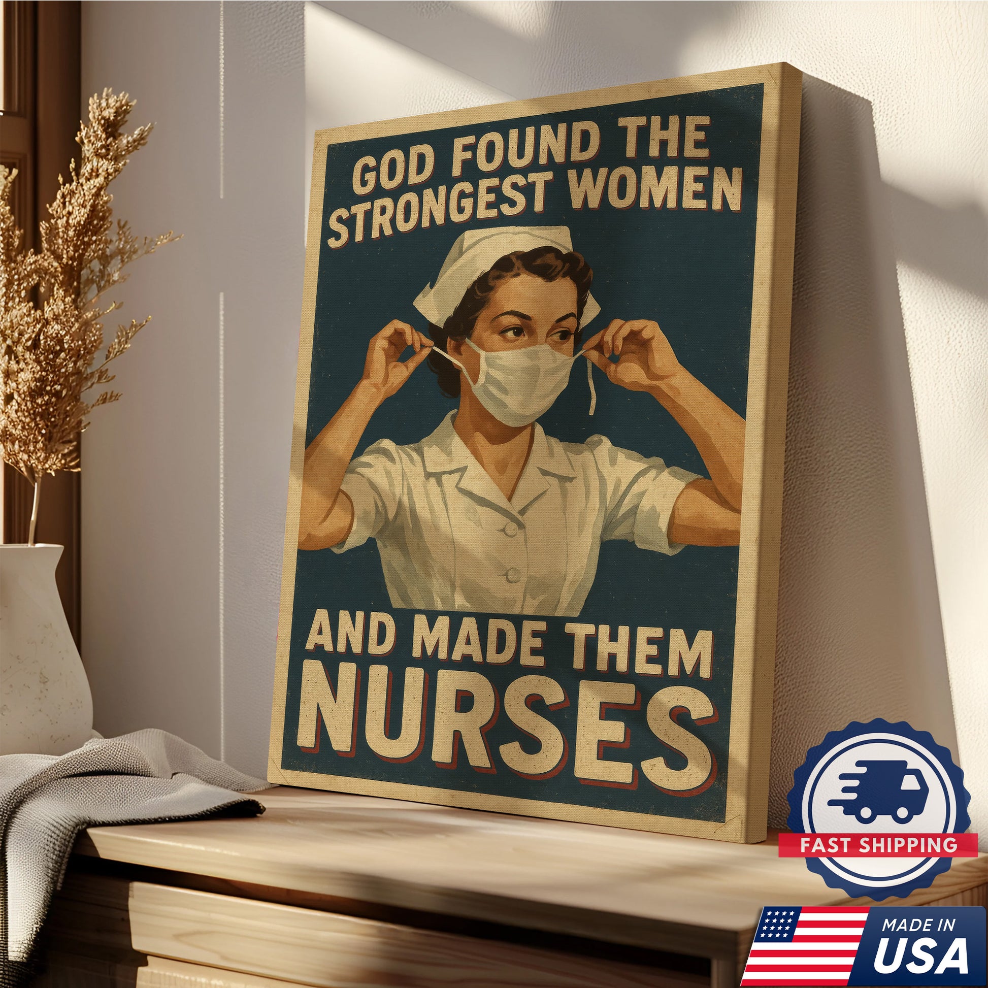 God Found The Strongest Women And Made Them Nurses Canvas, Christian Gift for RN LPN CNA